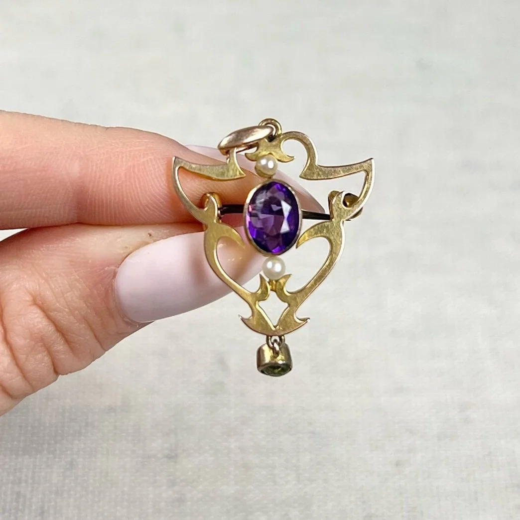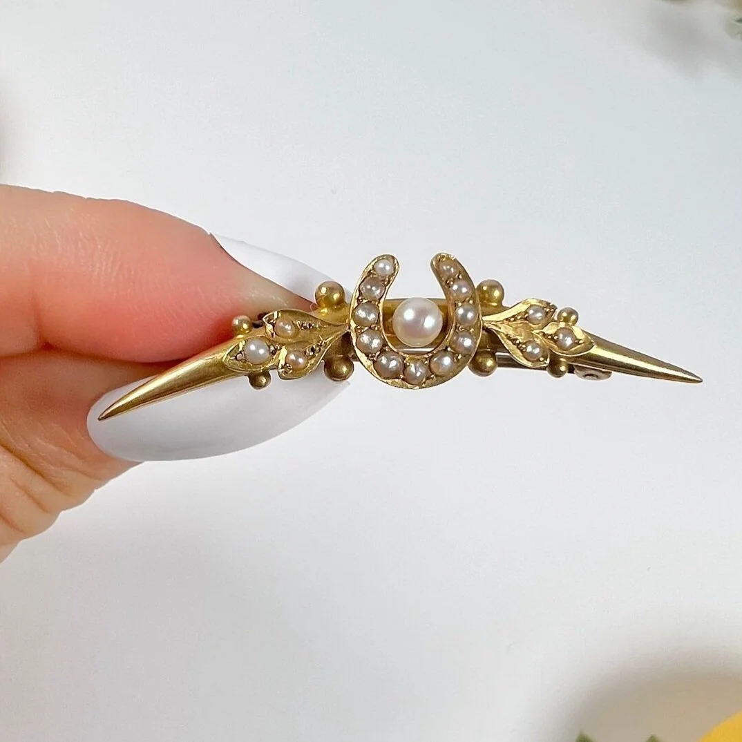 Categories: All Charms Collectables Pendants Necklaces Chains Rings Earrings Brooches Bracelets Lockets Cufflinks Brooches Antique 14ct White Gold, Victorian Ruby, Sapphire, Emerald, Rose Diamond Cockrel Brooch, Circa 1900 £605.00 Antique 18ct Gold & Silver, Victorian Natural Pearl and Diamond Spider Brooch £2,450.00 Antique 18ct Yellow Gold, 1920s Renè Kern 0.75ct Diamond, Ruby and Emerald Bird Brooch £4,500.00 Antique 15ct Yellow Gold, Edwardian Diamond & Seed Pearl Crescent Star Brooch/Pendant £1,320.00 Antique 18ct Yellow Gold, 1920s Diamond & Garnet Tigers Head Brooch £1,650.00 Antique 15ct Yellow Gold, Victorian era Blue Enamel, Diamond & Seed Pearl Brooch, Circa 1880 £1,375.00 Antique 14ct Gold, Edwardian Pearl Heart Pendant & Brooch £950.00 Antique 15ct Yellow Gold, Edwardian Diamond and Pearl Starburst Pendant / Brooch, Circa 1910 £1,095.00 Victorian Hebe & Zeus Shell Large Cameo 9ct Brooch, Circa 1900 £935.00 Vintage 18ct Gold Chalcedony Cat Brooch: Ruby Eyes, Italian Design £1,045.00 Antique 9ct Gold Edwardian Ruby & Pearl Crescent Moon Brooch, Circa 1910 £325.00 Antique 15ct Gold, Victorian Sapphire, Diamond & Seed Pearl Floral Brooch £985.00 Antique 15ct Gold, Victorian Seed Pearl Bird & Heart Brooch, Circa 1900 £740.00 Antique 18ct Gold & Platinum, Edwardian Diamond Heart Brooch, Circa 1910 £440.00 Antique 15ct Yellow Gold, Edwardian Bird Bar Brooch, Circa 1910 £350.00 Antique 15ct Yellow Gold, Edwardian Diamond & Seed Pearl Star Pendant/Brooch £1,200.00 Antique 9ct Rose Gold Tagged, 1920s Three Graces Shell Cameo Portrait Brooch £715.00 Vintage 15ct Yellow Gold, Circa 1900 White and Blue Enamel and Diamond Flower Brooch £900.00 Antique 9ct Gold Victorian Owl Brooch with Green Eyes £600.00 Antique 15ct Yellow Gold, Victorian era Rectangular Shaped Enamel Cherub Brooch £2,110.00 Vintage 18ct Gold French Stamped, 1930s Diamond & Abalone Pearl Bug Brooch, Insect Jewellery, Fly Brooch £7,950.00 Antique 15ct Yellow Gold, Early Victorian Emerald & Ruby Bow Shaped Brooch with Locket Back £1,150.00 Vintage 18ct Yellow Gold & Platinum, 1970s Ruby and Diamond Flower Brooch/Pendant £4,235.00 Vintage 18ct Yellow Gold Italy Stamped, 1960s Cabochon Chalcedony & Ruby Cat Brooch, Animal Jewellery, Cat Jewellery £1,750.00 Antique 14ct Two Colour Gold, Edwardian Ruby, Diamond & Abalone Pearl Swan Brooch £2,800.00 Antique 18ct Gold & Platinum, Edwardian era Belle Epoque Diamond and Pearl Flower Basket Brooch/Pendant £1,650.00 Antique 18ct Yellow Gold, French Stamped Edwardian era Golden Goose Brooch £1,815.00 Antique Early Victorian, Angel Skin Coral, Cherub Trio, Shell Cameo Brooch £1,330.00 Vintage 18ct Yellow Gold, 1940s Cat Brooch with Natural Seed Pearl Ball £840.00 Antique 18ct Gold, Victorian Cherub, Eros and Dolphin Chariot Shell Cameo Portrait Pendant/Brooch £1,200.00 Antique 15ct Stamped Yellow Gold Stamped, Edwardian Stock Pin Brooch £475.00 Antique 15ct Yellow Gold, Edwardian era Red Enamel, Diamond & Seed Pearl Flower Brooch £1,330.00 Vintage 18ct Gold Stamped, 1940s Bow Shaped Brooch with Cushion Cut Diamonds £2,720.00 Vintage 18ct Yellow Gold Stamped, 1960s Large Cat Brooch with Natural Emerald Eyes £4,235.00 Vintage 9ct Yellow Gold, Diamond & Seed Pearl Star Brooch/Pendant, Hallmarked London 1965 £999.00 Vintage 14ct Yellow Gold Stamped, 1960s Cat Brooch with Natural Emerald Eyes £1,325.00 Antique 18ct Yellow Gold, Edwardian Race Horse, Essex Glass & Diamond Stick Pin, Horse Racing Brooch £1,995.00 Antique 18ct Gold French Stamped, Victorian Hardstone Lady Cameo Portrait Brooch with Seed Pearl Frame £2,950.00 Antique 18ct Yellow Gold French Stamped, Victorian era Cherub Miniature Brooch with Mother of Pearl Back by D'aprés Boucher £2,475.00 Antique 15ct Yellow Gold, Early Victorian Floral Garnet & Pearl, Etruscan Locket Back Brooch £2,460.00 Antique 15ct Yellow Gold Stamped, 1920s English Setter Enamel Dog Brooch £1,100.00 Antique 18ct Gold French Stamped, Early Victorian era Rose Cut Diamond, Enamel & Pearl Ornate Brooch/Pendant £3,925.00 Antique 15ct Yellow Gold, Edwardian Baby Chick with Seed Pearl Egg Bar Brooch £730.00 Vintage 18ct Gold, 1960s Cabochon Lapis Lazuli Cat Brooch, Animal Jewellery, Cat Jewellery £1,265.00 Vintage 18ct Gold Stamped, 1960s Enamel Cat Brooch with Natural Diamond Collar £2,395.00 Antique 15ct Gold, Early Victorian Cherub Shell Cameo Portrait Brooch £1,265.00 Antique 15ct Yellow Gold, Edwardian Seed Pearl Star Pendant/Brooch £999.00 Antique 15ct Gold Stamped, Edwardian Almandine Garnet, Opal & Seed Pearl Bug Brooch, Insect Jewellery, Fly Brooch £1,860.00 Antique 15ct Gold & Platinum, Edwardian Two Colour Hunting Horn Seed Pearl Horseshoe Brooch £730.00 Antique 14ct Gold, Early Victorian Enamel, Pearl, Diamond Venus & Cupid Brooch £3,925.00 Antique 15ct Gold, Victorian Seed Pearl & Shell, Cameo Portrait Brooch £1,065.00 Vintage 9ct Gold Stamped, London Hallmarked 1990, Aquamarine & Pearl Bar Brooch £395.00 Antique 18ct Yellow Gold, Edwardian Natural Seed Pearl & Diamond Gun Pistol Brooch £1,085.00 Antique Platinum, 1920s Art Deco 1.00ct Sapphire and Diamond Bow Brooch £5,500.00 Antique 15ct Yellow Gold, Edwardian Aquamarine Bar Brooch £465.00 Antique 18ct Rose Gold & Silver French Stamped, Victorian Era Ruby, Sapphire, Diamond, Pearl Butterfly Brooch £2,595.00 Antique 18ct Gold & Silver, Early Victorian Diamond Flower Pendant/Brooch £5,250.00 Antique 15ct Gold Tagged, Victorian Bow Shaped Brooch with Etruscan Gold Work, Heart & Arrow £730.00 Antique 15ct Yellow Gold, Edwardian Natural Pearl & Enamel Bird Bar Brooch £775.00 Antique 9ct Gold, Edwardian Amethyst, Pearl & Peridot Suffragette Pendant/Brooch £999.00 Antique 9ct Gold Stamped 1960’s Mother of Pearl, Onyx & Diamond Cat Brooch £999.00 Antique 15ct Rose Gold Edwardian Opal & Seed Pearl Flower Pendant/Brooch £990.00 Antique 15ct Gold & Seed Pearl Victorian Horseshoe Crescent Brooch £525.00 Antique 9ct Rose Gold Edwardian Shell 