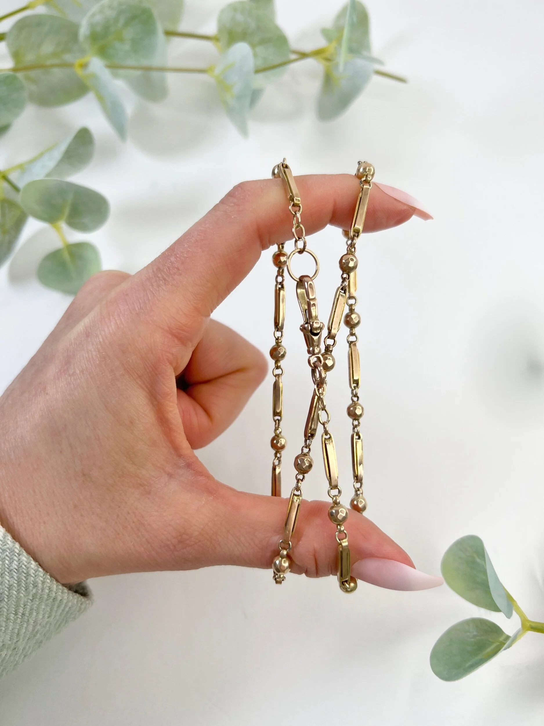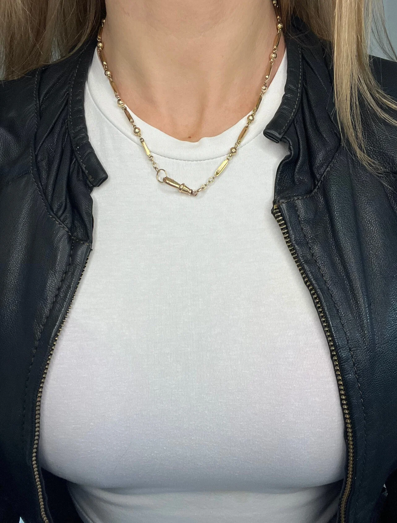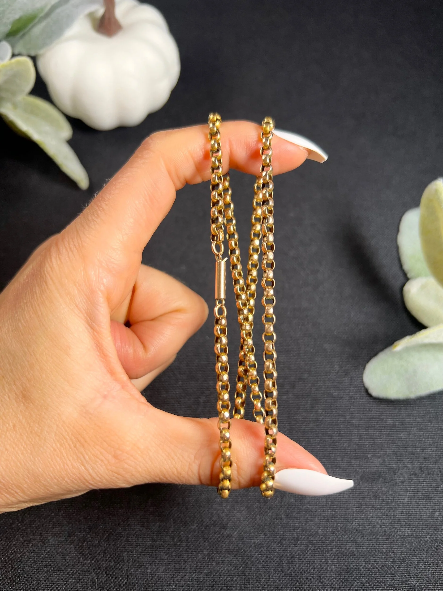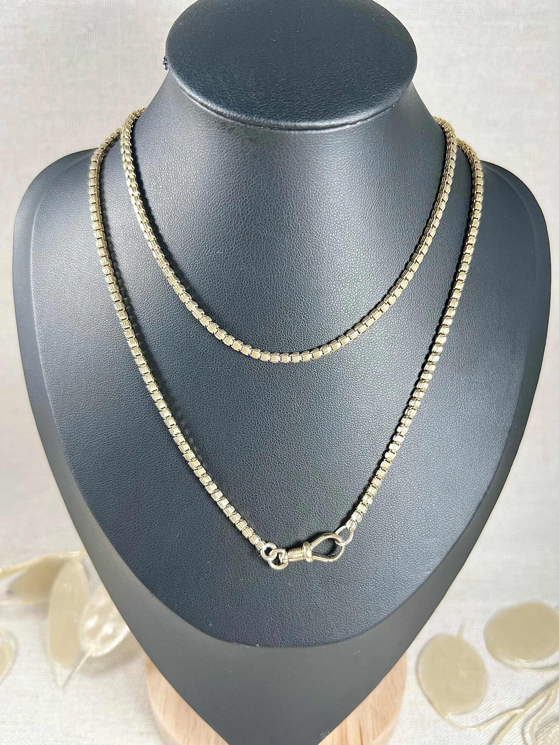 Categories: All Charms Collectables Pendants Necklaces Chains Rings Earrings Brooches Bracelets Lockets Cufflinks Chains Antique 15ct Yellow Gold 16 Inch, Belcher Link Chain, Circa 1900 £858.00 Antique 9ct Rose Gold, 16 Inch Trombone/Fetter Link, Albert Watch Chain, Hallmarked Birmingham 1919 £2,350.00 Sold Out Antique 9ct Yellow Gold, 17 1/4 Inch Trace Link Chain £520.00 Preloved 18ct White Gold Gucci Mariner Link Chain £1,540.00 Antique 9ct Gold Edwardian 17 Inch Trace Link Chain £520.00 Antique 9ct Yellow Gold Belcher Chain - Edwardian Faceted Link Necklace £440.00 Antique 9ct Rose Gold Tagged, Edwardian 17.5 Inch Fancy Double Link Belcher Chain £600.00 Victorian 9ct Rose Gold Fancy Rolo Link Chain Necklace - 17 3/4 Inch £1,500.00 Antique 9ct Rose Gold Faceted Belcher Chain: Edwardian Swivel Clip, 29.5 Inch £1,375.00 Antique 9ct Yellow Gold, Curb Link Chain with Barrel Clasp- Edwardian 18.5 Inch £630.00 Antique 9ct Rose Gold Albert Chain Necklace: Edwardian Fetter Trombone Link £8,250.00 Antique 9ct Rose Gold, Edwardian Trace Link Chain with Fancy Engraved Heart Padlock Clasp £850.00 Antique 9ct Rose Gold Stamped, 20 3/4 Inch Belcher Chain with Heart Padlock Clasp £935.00 Vintage 18ct Yellow Gold, 24 Inch Flat Curb Link Chain with Bolt Ring Clasp £660.00 Antique 18ct Gold, French 1920s 20 1/4 Inch Fancy Filigree Link Chain Necklace £2,750.00 Antique 9ct Rose Gold Stamped, Edwardian 28 Inch Long Tulip Link Chain with Swivel Clasp £1,485.00 Antique 9ct Rose Gold Stamped, Edwardian 20 3/4 Inch Round Faceted Belcher Link Chain Necklace £715.00 Antique 9ct Rose Gold Stamped, Edwardian 22 Inch Long Tulip Link Chain with Heart Padlock Clasp £2,299.00 Antique 9ct Rose Gold Rectangle Belcher Style Link Chain, 16inches Circa 1900 £250.00 Antique 15ct Yellow Gold, 15 Inch, Solid Rope Link Chain with Barrel and Torpedo Clasp, Circa 1900 £480.00 Antique 15ct Yellow Gold, Edwardian 20 Inch Trace Link Chain Necklace £1,150.00 Antique 9ct Gold Victorian Ornate Box Link Chain Extender with Bolt Ring Clasp £1,150.00 Vintage 9ct Yellow Gold, 24 Inch Fancy Twisted Box Link Chain with Swivel Clasp £1,200.00 Antique 15ct Yellow Gold Stamped, Victorian 17 3/4 Inch Star Link Necklace Chain £1,295.00 Sold Out Vintage 9ct Yellow Gold 21 1/2 Inch Curb Link Chain with Lobster Clasp £810.00 Antique 9ct Rose Gold Stamped, Edwardian 21 1/4 Inch Curb Link Albert Chain, Watch Chain T-bar Necklace, Hallmarked Sheffield 1913 £2,585.00 Antique 9ct Rose Gold, Edwardian era 17 1/4 Inch Trombone/Fetter Link, Albert Watch Chain, Hallmarked Chester 1903 £2,850.00 Sold Out Antique 9ct Yellow Gold, Edwardian era 23 Inch, Fine Curb Link Chain with Fancy Clasp £960.00 Antique 9ct Rose Gold, 22 3/4 Inch Oval Faceted Belcher Link Chain with Heart Padlock Clasp, Hallmarked Birmingham 1901 £1,155.00 Antique 15ct Yellow Gold Stamped, Victorian 16 1/2 Inch Solid Rope Link Chain with Barrel and Torpedo Clasp £1,330.00 Antique 15ct Yellow Gold, Edwardian 20 Inch Fine Curb Link Chain with Barrel Clasp £940.00 Antique 9ct Gold Stamped, Edwardian 21 Inch Fancy Twist Link Belcher Chain with Heart Padlock £1,045.00 Antique 9ct Rose Gold Stamped, 23 1/2 Inch Edwardian Faceted Round Belcher Link Chain with Bolt Ring Clasp £750.00 Antique 9ct Yellow Gold Tagged, 28 Inch Edwardian Faceted Oval Belcher Link Chain with Bolt Ring Clasp £1,270.00 Vintage 9ct Rose Gold Italian Stamped, 1980s Giovanni Balestra, 27 1/2 Inch Box Link Chain with Bolt Ring Clasp £475.00 Antique 9ct Rose Gold Stamped, Victorian 25 Inch Long Rolo Link Chain with Swivel Clasp £1,075.00 Sold Out Vintage 9ct Yellow Gold, 1980s Italy Hallmarked Snake-Link Chain, Knot Necklace £925.00 Antique Platinum Stamped, 1920s Spectacle Set Diamond Half Guard Trace Link & Lovers Knot Link Chain with Bolt Ring Clasp £2,595.00 Modern 22 Inch Platinum Stamped, Trace Link Chain with Bolt Ring Clasp £660.00 Antique 9ct Rose Gold Stamped, Edwardian era Marseille Gold Ball Necklace £1,170.00 Vintage 9ct Yellow Gold, Trace Link Chain, Hallmarked Birmingham 1977 £275.00 Vintage 9ct Yellow Gold, 1970s Italian Unoaerre 17 1/2 Inch Fine Belcher Link Chain £175.00 Sold Out Antique Sterling Silver, Victorian Book Chain Necklace, Hallmarked London 1879, Vintage Silver Locket Chain £825.00 Sold Out Antique 9ct Yellow Gold Stamped, 1920s 22 1/4 Inch Fine Curb Link Albert Chain, Watch Chain Necklace £1,375.00 Antique 9ct Rose Gold, 17 Inch Fancy Trombone Fetter Link Albert Chain, Watch Chain Necklace, Hallmarked Chester 1913 £2,800.00 Sold Out Antique 9ct Yellow Gold, Edwardian 18 1/4 Inch Fancy Trace & Figure of Eight Link Chain with Barrel Clasp £430.00 Antique 15ct Yellow Gold Stamped, 1920s 15 Inch Solid Rope Link Chain with Bolt Ring Clasp £635.00 Antique 9ct Rose Gold Tagged, Edwardian 20 1/4 Fancy Tulip Link Chain with Bolt Ring Clasp £575.00 Antique 9ct Rose Gold Stamped & Tagged, Edwardian 26 1/2 Inch Long Faceted Oval Belcher Link Chain with Swivel Dog Clip £750.00 Sold Out Antique 9ct Rose Gold Stamped, Edwardian 30 Inch Faceted Round Belcher Link Chain with Swivel Dog Clip £1,390.00 Antique 15ct Yellow Gold, Victorian Fine Curb Link 19 1/4 Inch Chain with Bolt Ring Clasp £900.00 Antique 9ct Rose Gold Stamped, 25 1/4 Inch Edwardian Round Belcher Link Chain with Bolt Ring Clasp £600.00 Antique 9ct Yellow Gold Stamped, Victorian 20 1/2 Inch Rolo Link Albert Chain £995.00 Sold Out Antique 9ct Rose Gold, Edwardian 20 1/4 Inch Faceted Belcher Link Chain with Toggle Clasp £785.00 Antique 15ct Yellow Gold Stamped, 1920s 22 1/4 Inch Long Fetter Link Chain, Vintage Gold Necklace with Swivel Clip and T-bar £1,815.00 Antique 15ct Yellow Gold, 1920s 32 Inch Trace & Twist Link Chain, Fancy Long Gold Necklace £795.00 Antique 18ct Gold, 1920s 23 Inch Fancy Oval & Round Link Belcher Chain with Filigree Clasp £1,390.00 Antique 9ct Rose Gold Stamped, 16 1/4 Inch Curb Link Albert Chain, Birmingham Hallmarked 1920, Watch Chain Necklace £2,420.00 Antique 9ct R