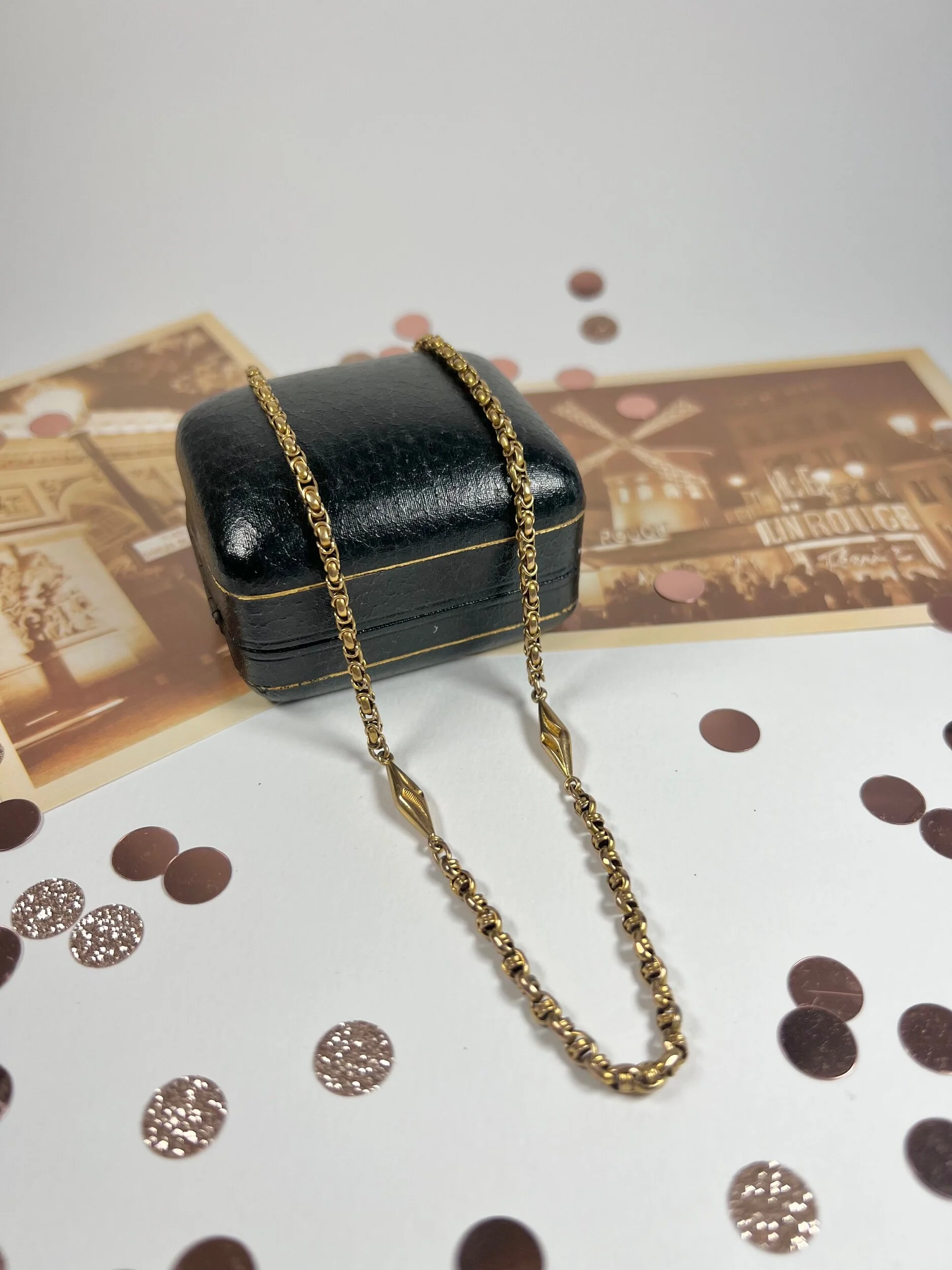Categories: All Charms Collectables Pendants Necklaces Chains Rings Earrings Brooches Bracelets Lockets Cufflinks Necklaces Antique 9ct Gold Victorian, Sapphire & Diamond, Lucky Horseshoe Pendant Necklace, Circa 1880 £1,210.00 Antique 9ct Rose Gold, 16 Inch Trombone/Fetter Link, Albert Watch Chain, Hallmarked Birmingham 1919 £2,350.00 Sold Out Antique 9ct Yellow Gold, 17 1/4 Inch Trace Link Chain £520.00 Preloved 18ct White Gold Gucci Mariner Link Chain £1,540.00 Antique 9ct Gold Edwardian 17 Inch Trace Link Chain £520.00 Antique 9ct Yellow Gold Belcher Chain - Edwardian Faceted Link Necklace £440.00 Antique 9ct Rose Gold Tagged, Edwardian 17.5 Inch Fancy Double Link Belcher Chain £600.00 Victorian 9ct Rose Gold Fancy Rolo Link Chain Necklace - 17 3/4 Inch £1,500.00 Antique 9ct Rose Gold Faceted Belcher Chain: Edwardian Swivel Clip, 29.5 Inch £1,375.00 Antique 9ct Yellow Gold, Curb Link Chain with Barrel Clasp- Edwardian 18.5 Inch £630.00 Antique Sterling Silver, Victorian Book Chain Necklace with Silver & Gold Inlaid Butterfly Locket £1,200.00 Antique 9ct Rose Gold Albert Chain Necklace: Edwardian Fetter Trombone Link £8,250.00 Antique 9ct Gold Stamped, Authentic Edwardian-era Suffragette Pendant Necklace with Amethyst, Peridot & Seed Pearls £1,375.00 Antique 9ct Rose Gold, Edwardian Trace Link Chain with Fancy Engraved Heart Padlock Clasp £850.00 Antique 18ct Gold Stamped, French 1920s 22 3/4 Inch Fancy Filigree Oval Link Chain Necklace £4,950.00 Antique 9ct Rose Gold Stamped, 20 3/4 Inch Belcher Chain with Heart Padlock Clasp £935.00 Vintage 18ct White Gold, 1920s 0.47 Carat Diamond Pendant Necklace with Platinum Figaro Link Chain £1,485.00 Antique 18ct Gold & Silver, Victorian Diamond and Ruby Floral Pendant, Circa 1900 £2,145.00 Vintage 18ct Yellow Gold, 24 Inch Flat Curb Link Chain with Bolt Ring Clasp £660.00 Antique 18ct Gold, French 1920s 20 1/4 Inch Fancy Filigree Link Chain Necklace £2,750.00 Antique 9ct Rose Gold Stamped, Edwardian 28 Inch Long Tulip Link Chain with Swivel Clasp £1,485.00 Antique 9ct Rose Gold Stamped, Edwardian 20 3/4 Inch Round Faceted Belcher Link Chain Necklace £715.00 Antique 9ct Rose Gold Stamped, Edwardian 22 Inch Long Tulip Link Chain with Heart Padlock Clasp £2,299.00 Antique 9ct Yellow Gold, 23 1/4 Inch Star Box Link Chain Necklace with Heart Padlock Clasp £895.00 Sold Out Vintage 9ct Yellow Gold, Tubogas Collar Necklace, Hallmarked London 1947 £2,695.00 Antique 9ct Gold, Victorian Old Cut Diamond Flower Pendant Necklace £1,650.00 Antique 9ct Rose Gold Rectangle Belcher Style Link Chain, 16inches Circa 1900 £250.00 Vintage 9ct Yellow Gold Stamped, 1990s Snake-Link Chain Lovers Knot Chain Necklace, Hallmarked Birmingham £1,080.00 Antique 9ct Rose Gold, Edwardian era 25 Inch Trace Link Chain with Bolt Ring Clasp £545.00 Antique 9ct Gold, Edwardian Amethyst, Pearl & Rose Diamond Drop Pendant Circa 1910 £960.00 Antique 9ct Rose Gold, Edwardian, 20 inch Paper Clip Albert Chain Necklace £4,345.00 Antique 9ct Rose Gold, Edwardian era 17 1/2 Inch Trombone/Fetter Link, Albert Watch Chain, Hallmarked Birmingham 1901 £2,750.00 Sold Out Antique 15ct Yellow Gold, Victorian 20 Inch Thick Trace Link Chain Necklace £1,330.00 Antique 15ct Yellow Gold, Edwardian 20 Inch Trace Link Chain Necklace £1,150.00 Antique 18ct Gold Stamed, 1920s 22 1/4 Inch Fancy Filigree Oval Link Chain Necklace £4,780.00 Vintage 9ct Yellow Gold Stamped, 1980s 16 1/4 Inch Figaro Link Chain Necklace £240.00 Vintage 18ct White Gold Stamped, Diamond Set Trace Link Chain with Lobster Clasp £1,250.00 Vintage 10k Gold Stamped, Multi Gem Set Necklace £965.00 Antique 15ct Yellow Gold Stamped, Victorian 17 3/4 Inch Star Link Necklace Chain £1,295.00 Sold Out Antique Platinum Stamped, Edwardian era Seed Pearl Trace Link Necklace £1,025.00 Antique 9ct Rose Gold Stamped, Edwardian 21 1/4 Inch Curb Link Albert Chain, Watch Chain T-bar Necklace, Hallmarked Sheffield 1913 £2,585.00 Vintage 18ct Yellow Gold, Gucci/Mariner Link Gemstone Harlequin Necklace with Barrel Clasp £1,630.00 Antique 9ct Gold Victorian Ornate Box Link Chain Extender with Swivel Clasp £810.00 Antique 9ct Rose Gold, Edwardian era 17 1/4 Inch Trombone/Fetter Link, Albert Watch Chain, Hallmarked Chester 1903 £2,850.00 Sold Out Antique 15ct Gold, Edwardian Garnet, Diamond, Seed Pearl & Enamel Teardrop Pendant Necklace £1,500.00 Antique 9ct Yellow Gold, Edwardian era 23 Inch, Fine Curb Link Chain with Fancy Clasp £960.00 Antique 9ct Rose Gold, 22 3/4 Inch Oval Faceted Belcher Link Chain with Heart Padlock Clasp, Hallmarked Birmingham 1901 £1,155.00 Antique 9ct Yellow Gold Stamped, Edwardian Amethyst, Peridot & Seed Pearl Suffragette Pendant Necklace £1,200.00 Antique 14ct Gold, 1920s Enamel, Pearl & Diamond Floral Pendant Necklace £1,995.00 Antique 15ct Yellow Gold French Stamped, Early Victorian Emerald, Diamond & Seed Pearl Cannetille Tassel Pendant Necklace £1,750.00 Antique 15ct Yellow Gold Stamped, Victorian 16 1/2 Inch Solid Rope Link Chain with Barrel and Torpedo Clasp £1,330.00 Vintage platinum, 1920s Aquamarine & Diamond Pendant Necklace £2,235.00 Antique 9ct Rose Gold, Edwardian 15 3/4 Inch Curb Link Albert Chain, Vintage Watch Chain Necklace, Hallmarked Birmingham 1900 £2,720.00 Antique 9ct Rose Gold Stamped, Edwardian 25 Inch Solid Rope Link Chain with Swivel Clip £1,150.00 Sold Out Antique 9ct Rose Gold Stamped, Edwardian 28 Inch Faceted Round Belcher Link Chain with Swivel Dog Clip £1,200.00 Antique 9ct Rose Gold Stamped, Edwardian 17 1/2 Inch Curb Link Albert Chain, Vintage Watch Chain Necklace £2,420.00 Antique 15ct Rose Gold Belcher Chain: Victorian Link Necklace £925.00 Antique 9ct Yellow Gold Stamped, 1920s 22 Inch Trace Link Albert Chain, Watch Chain Necklace £999.00 Antique 9ct Rose Gold, Edwardian era Amethyst, Peridot & Seed Pearl, Suffragette Pendant Necklace £1,100.00 Sold Out Antique 9ct Rose Gold Stamped, Edwardian 18 1/2 Inch Oval Faceted Belcher Link Cha