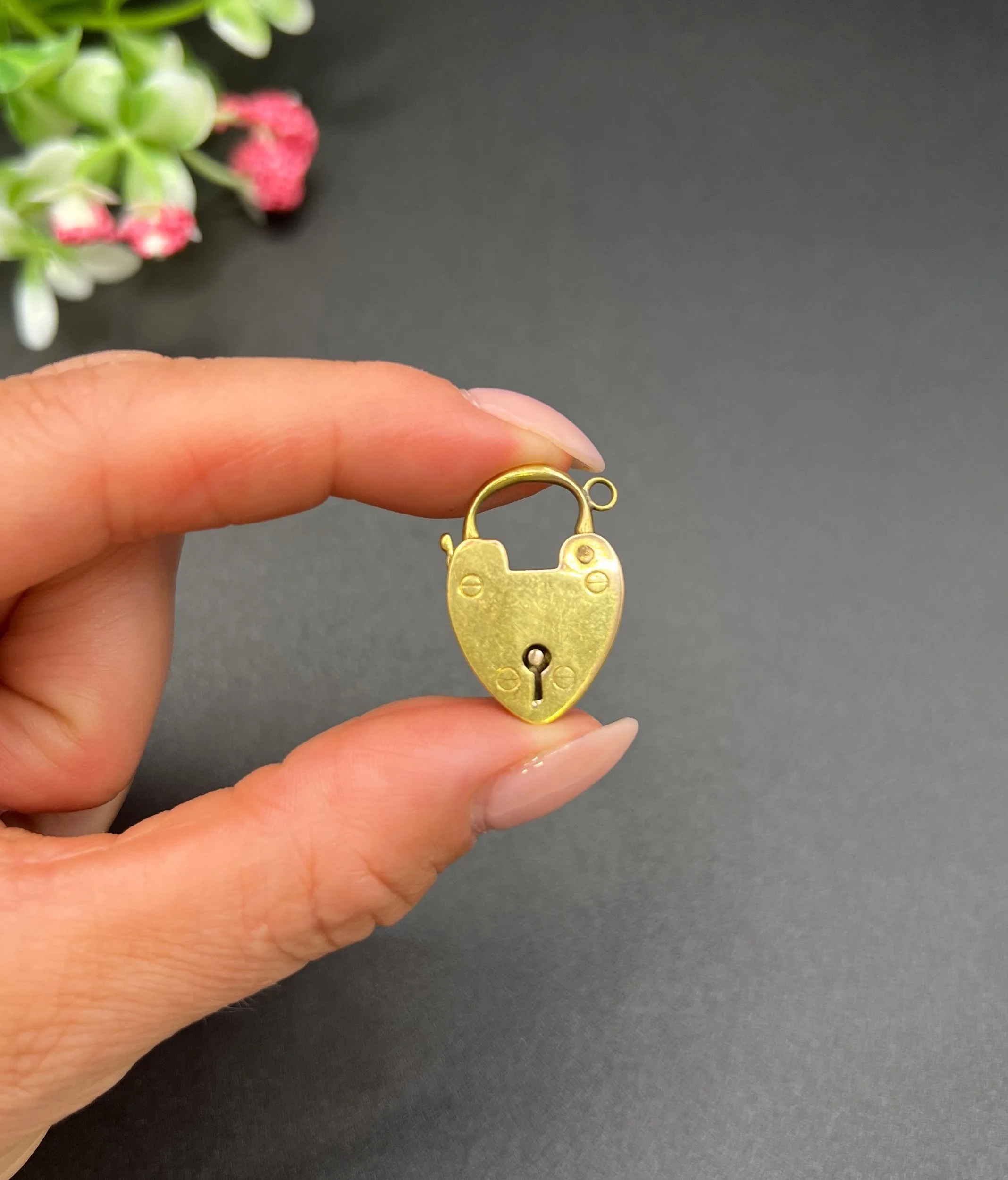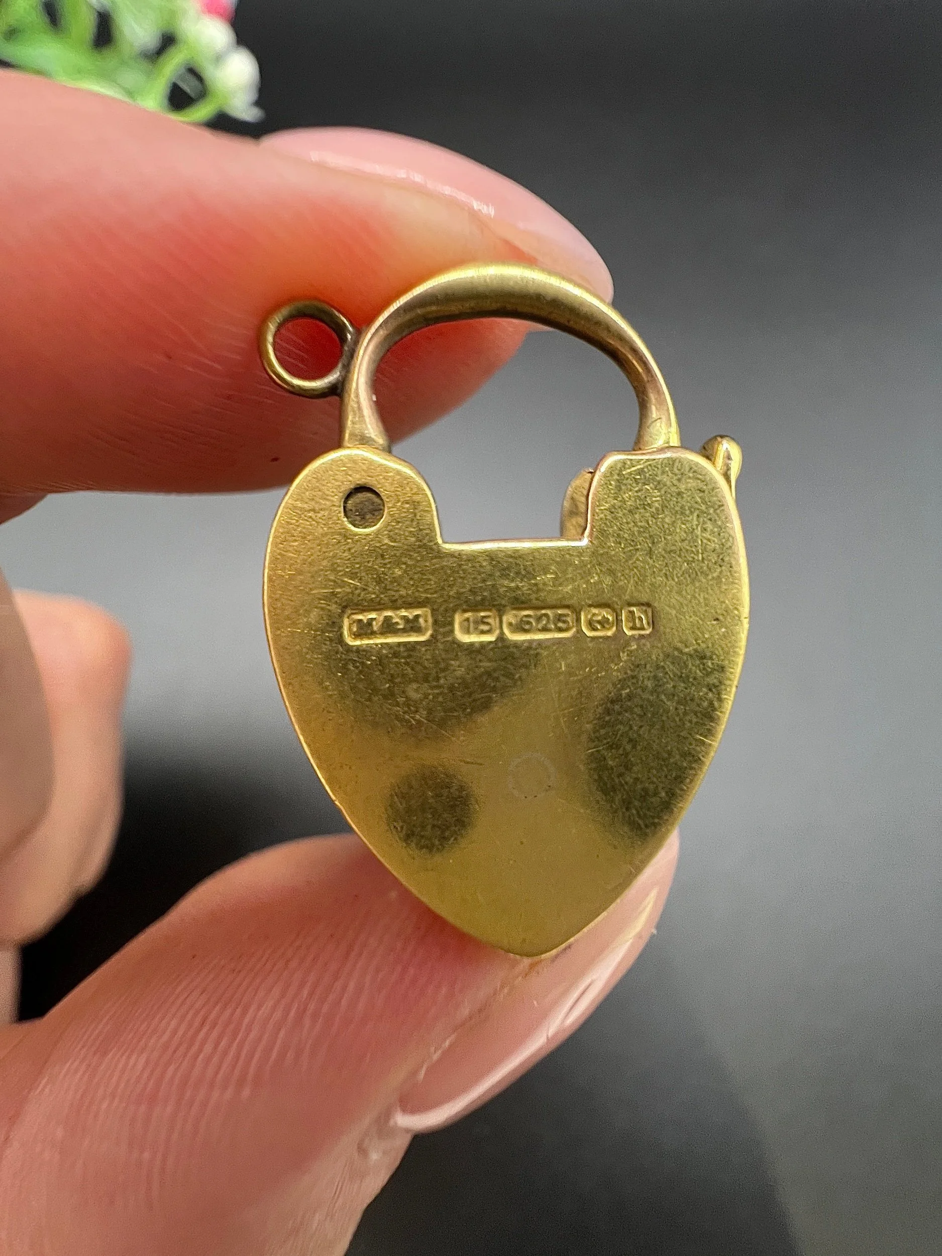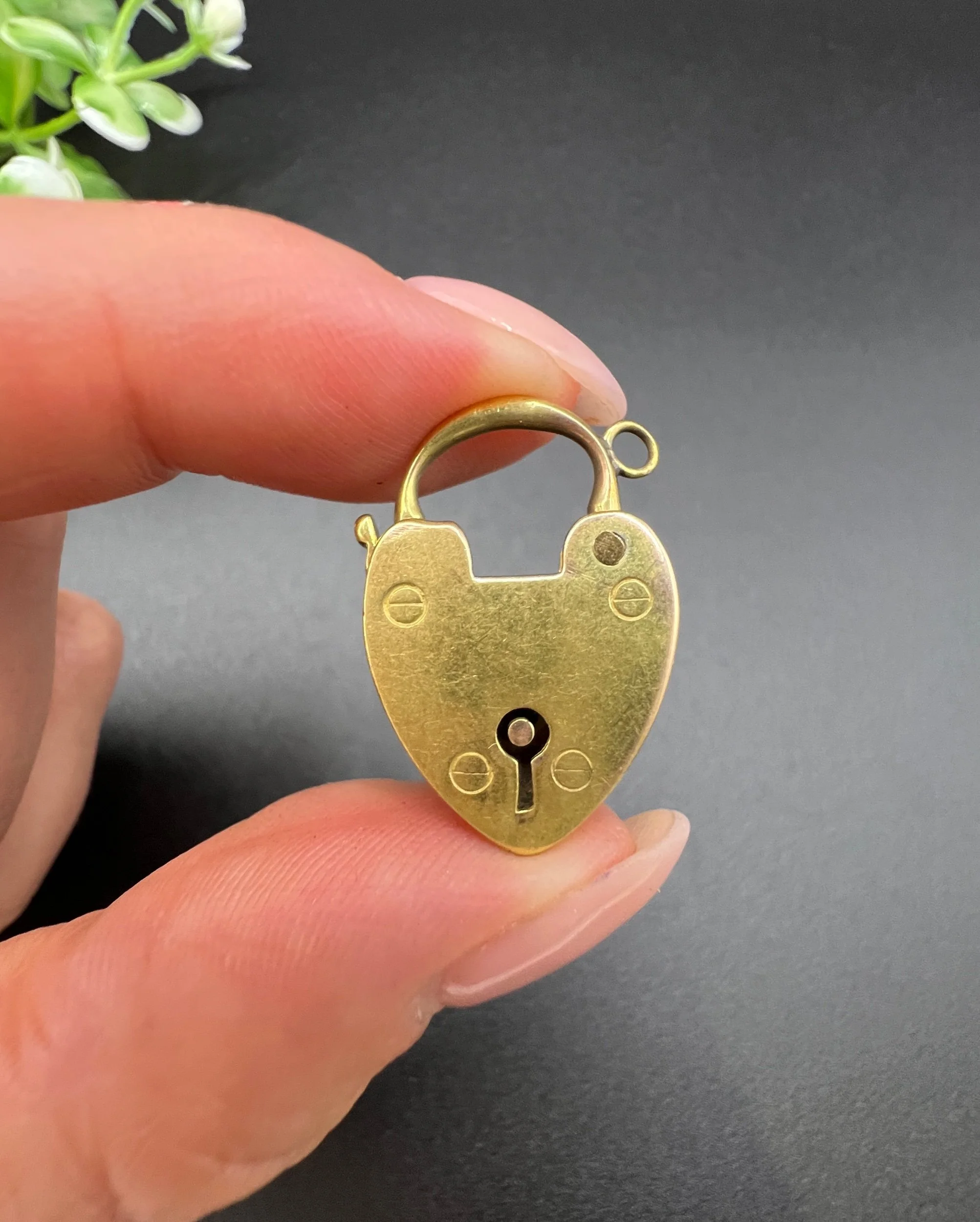 Antique 15ct Yellow Gold, Edwardian Heart Padlock Pendant, Bracelet Charm Clasp, Hallmarked Birmingham 1907