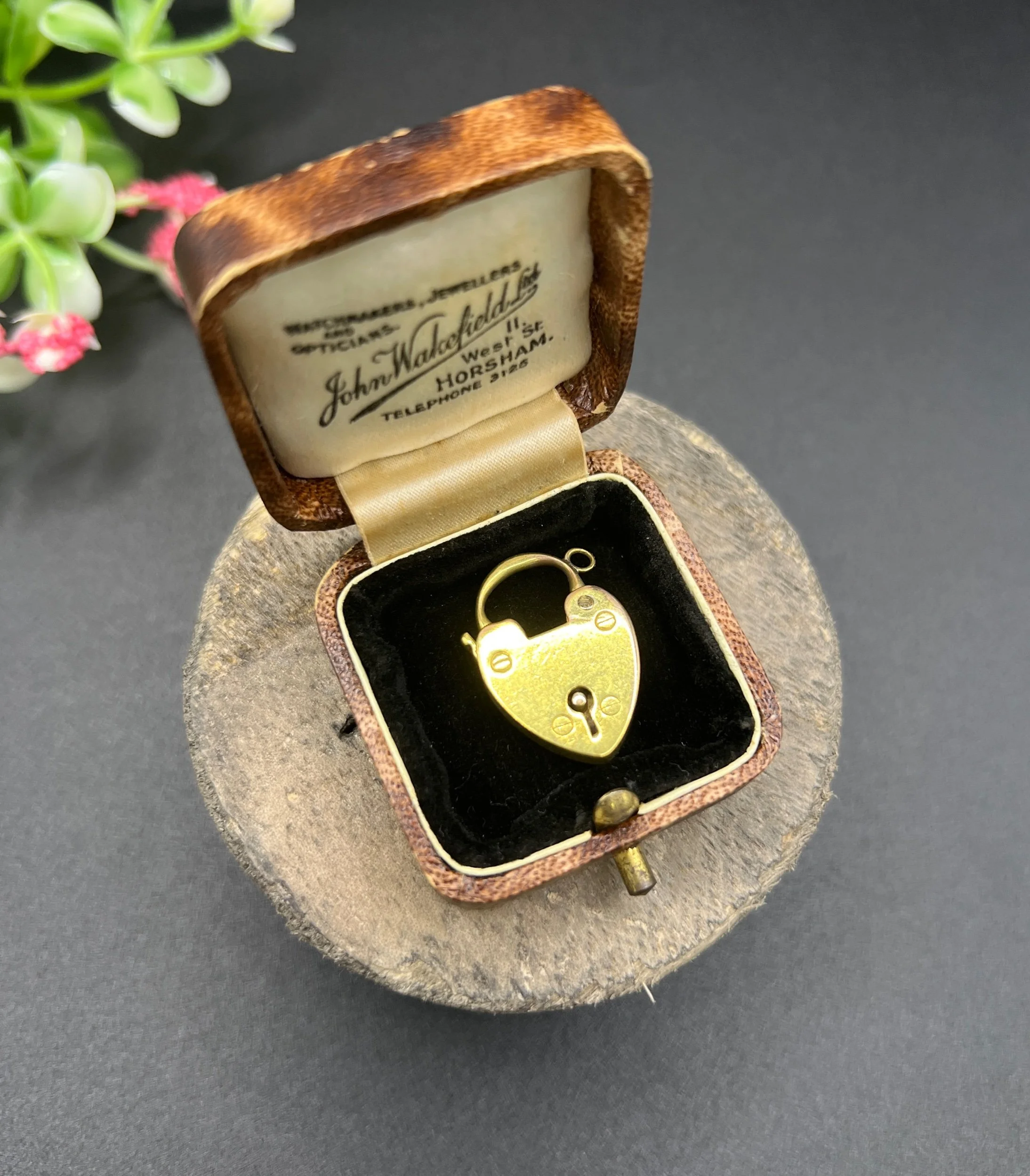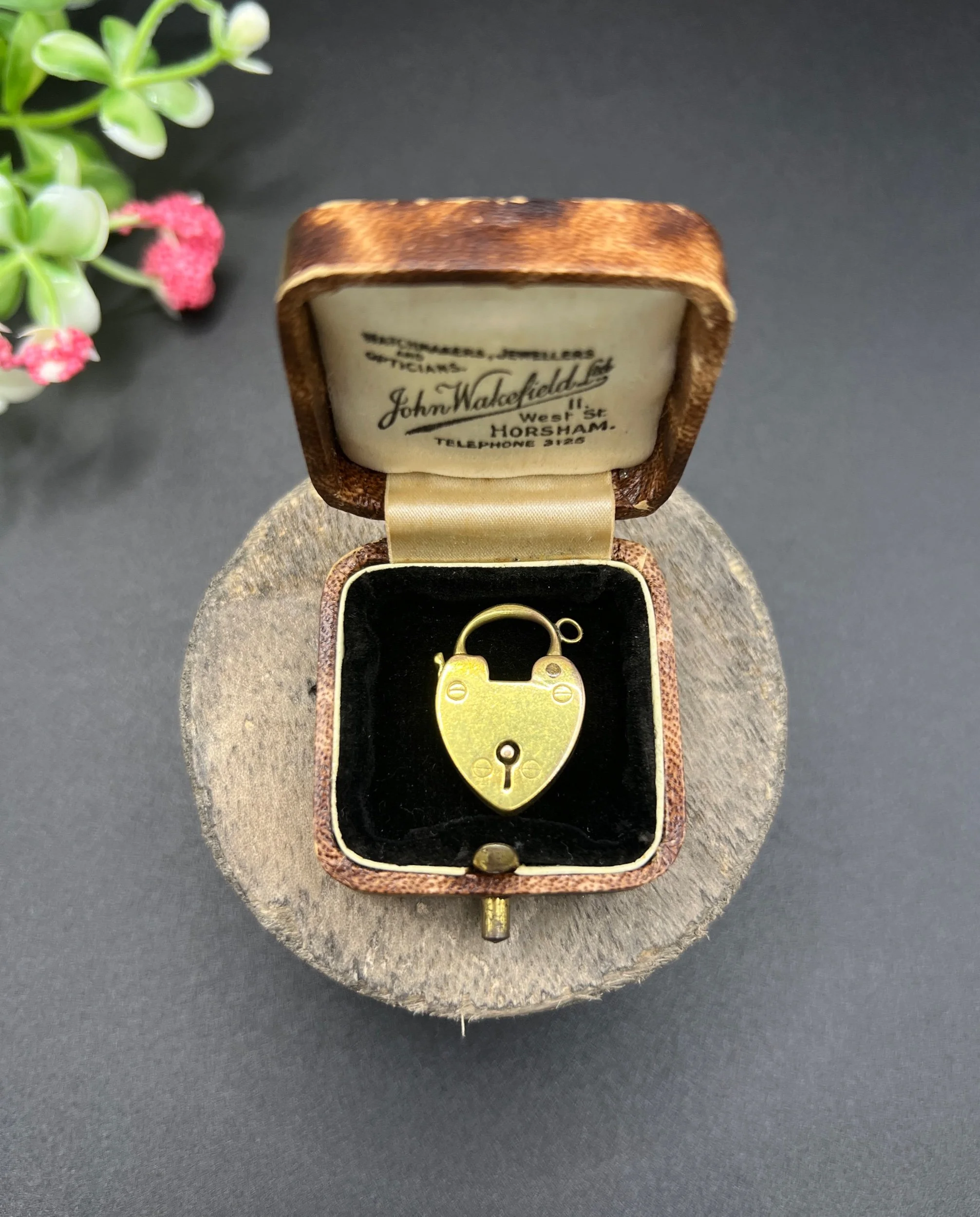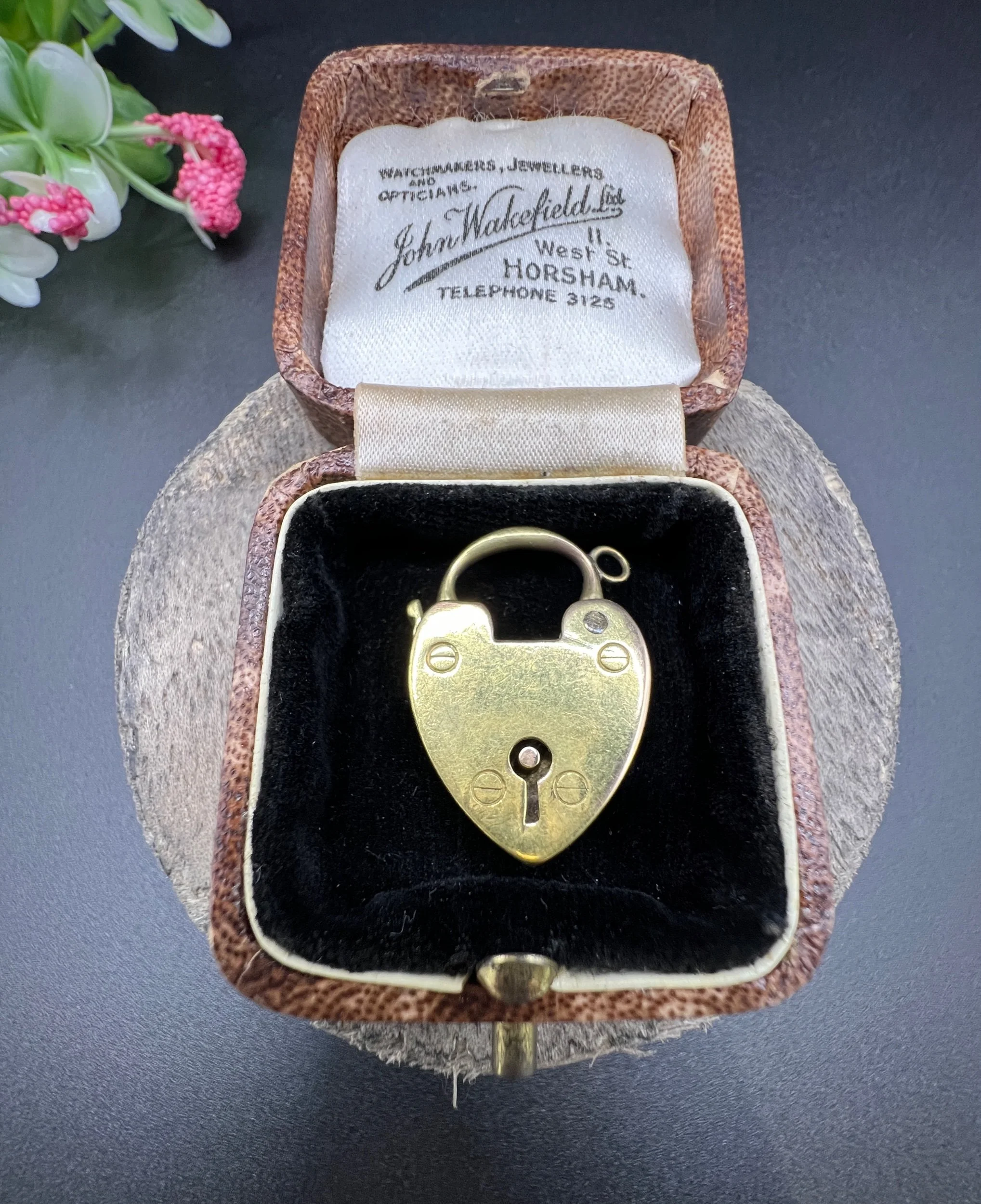 Antique 15ct Yellow Gold, Edwardian Heart Padlock Pendant, Bracelet Charm Clasp, Hallmarked Birmingham 1907