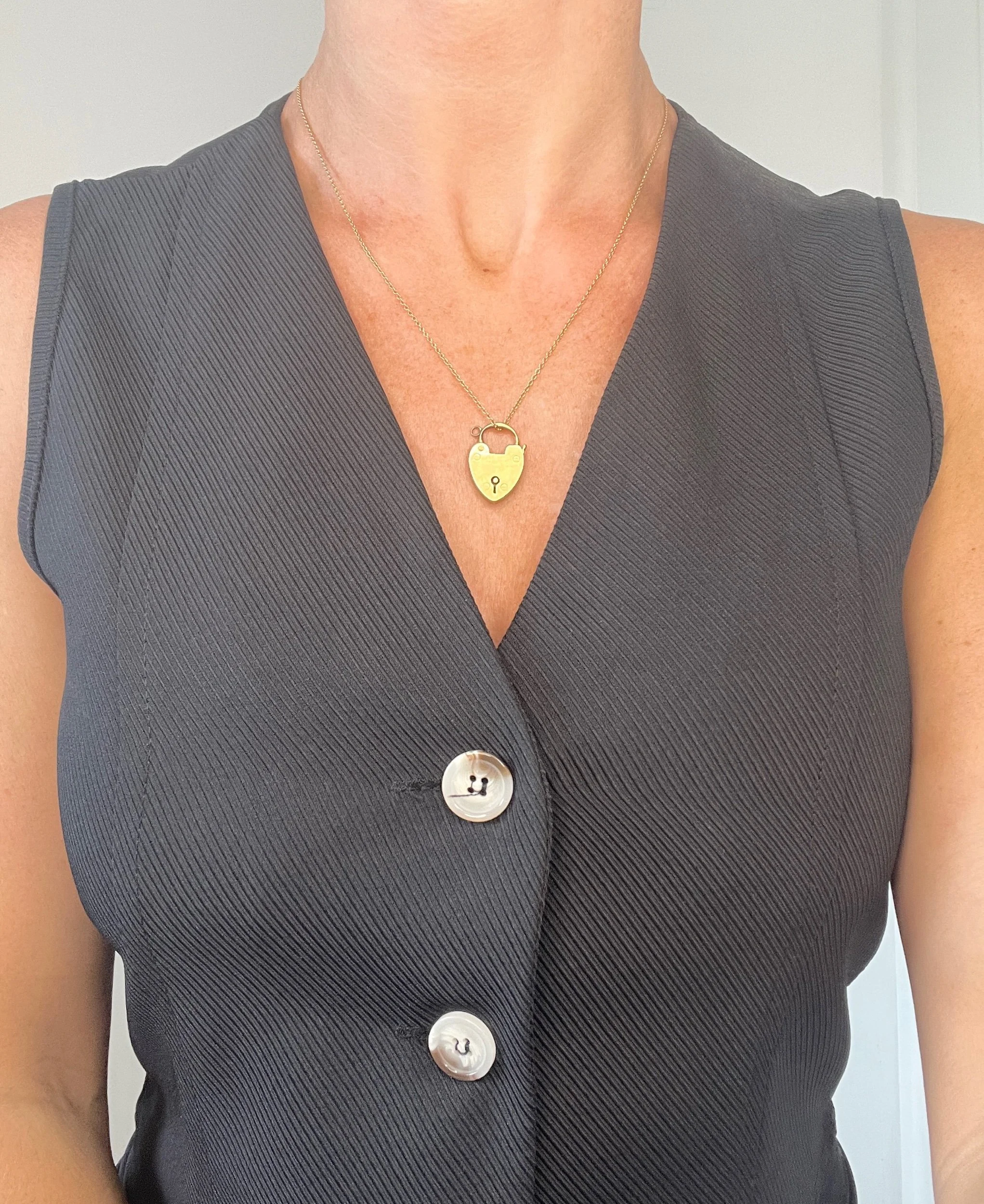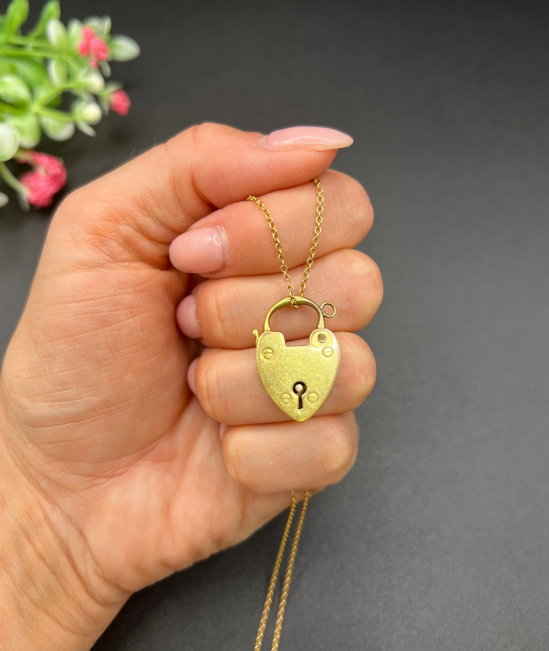 This stunning antique heart padlock is crafted from 15ct yellow gold. The back of the padlock is fully hallmarked for authenticity, ensuring its high-quality craftsmanship. This versatile piece can be worn as a pendant or used as a clasp, making it the perfect addition to any jewellery collection. Its unique design and timeless elegance make it a must-have for any fashion-forward individual.