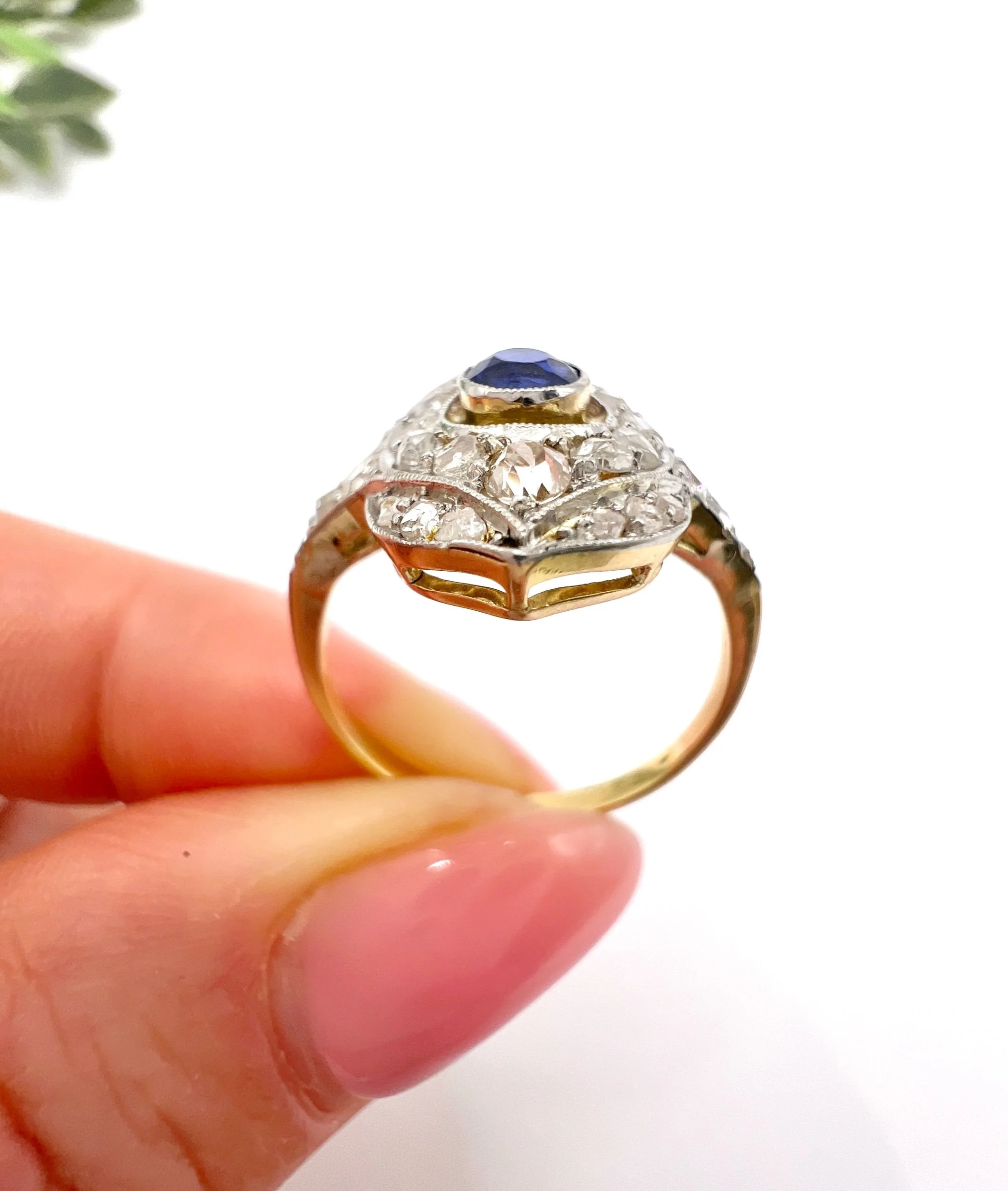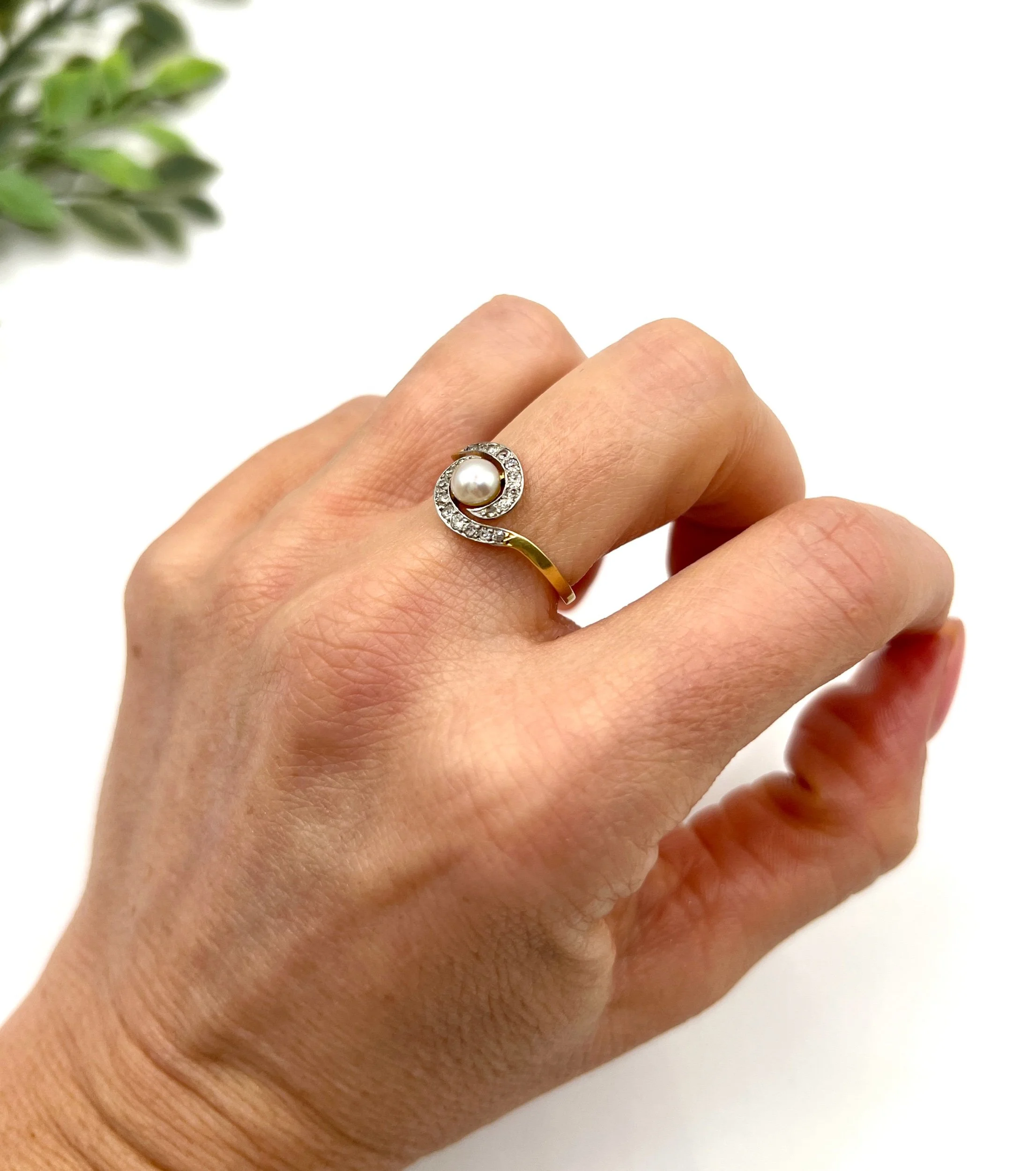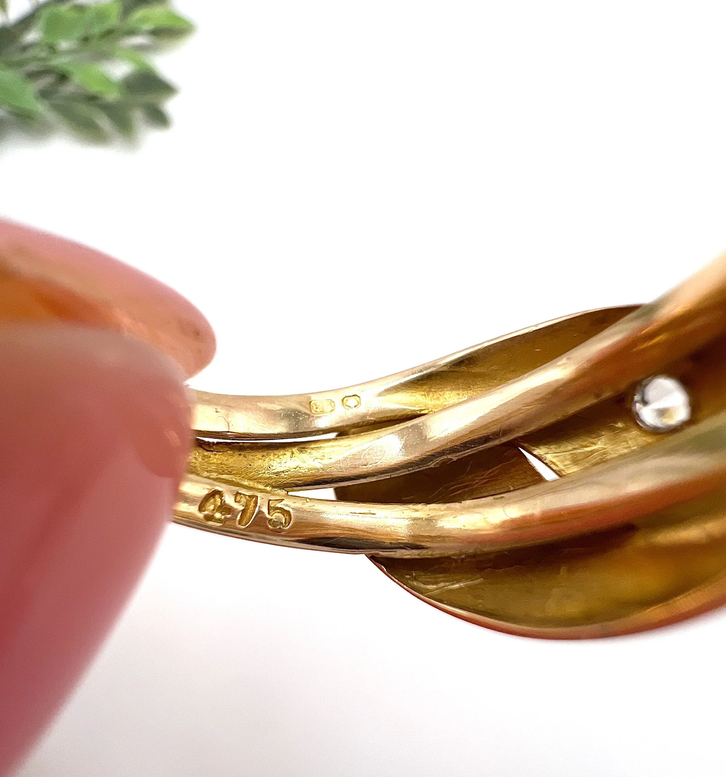 The intricate setting is fashioned in silver, which contrasts beautifully with the warm hues of the gold mount. Enhanced by both the French hallmark and the distinctive owl and swan hallmarks, this ring stands as a testament to its authentic heritage and artisanal quality.