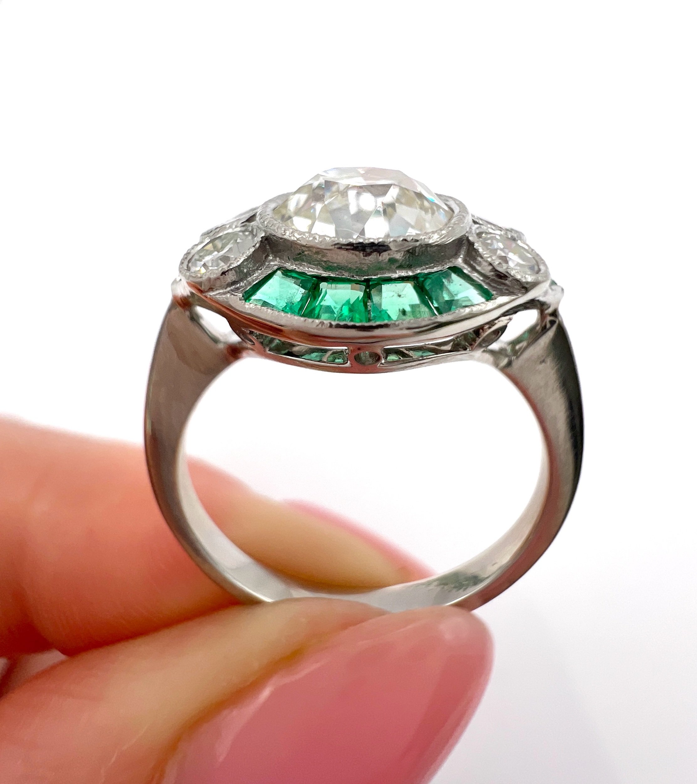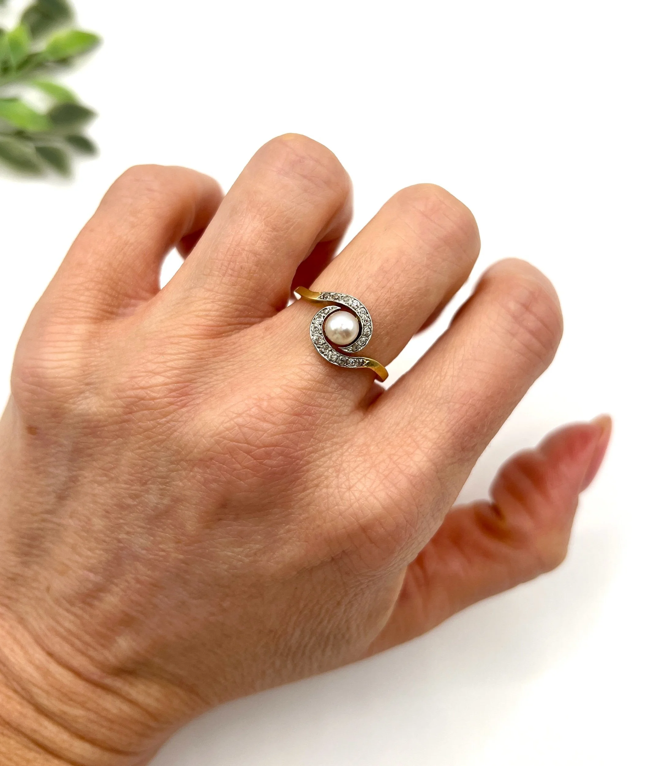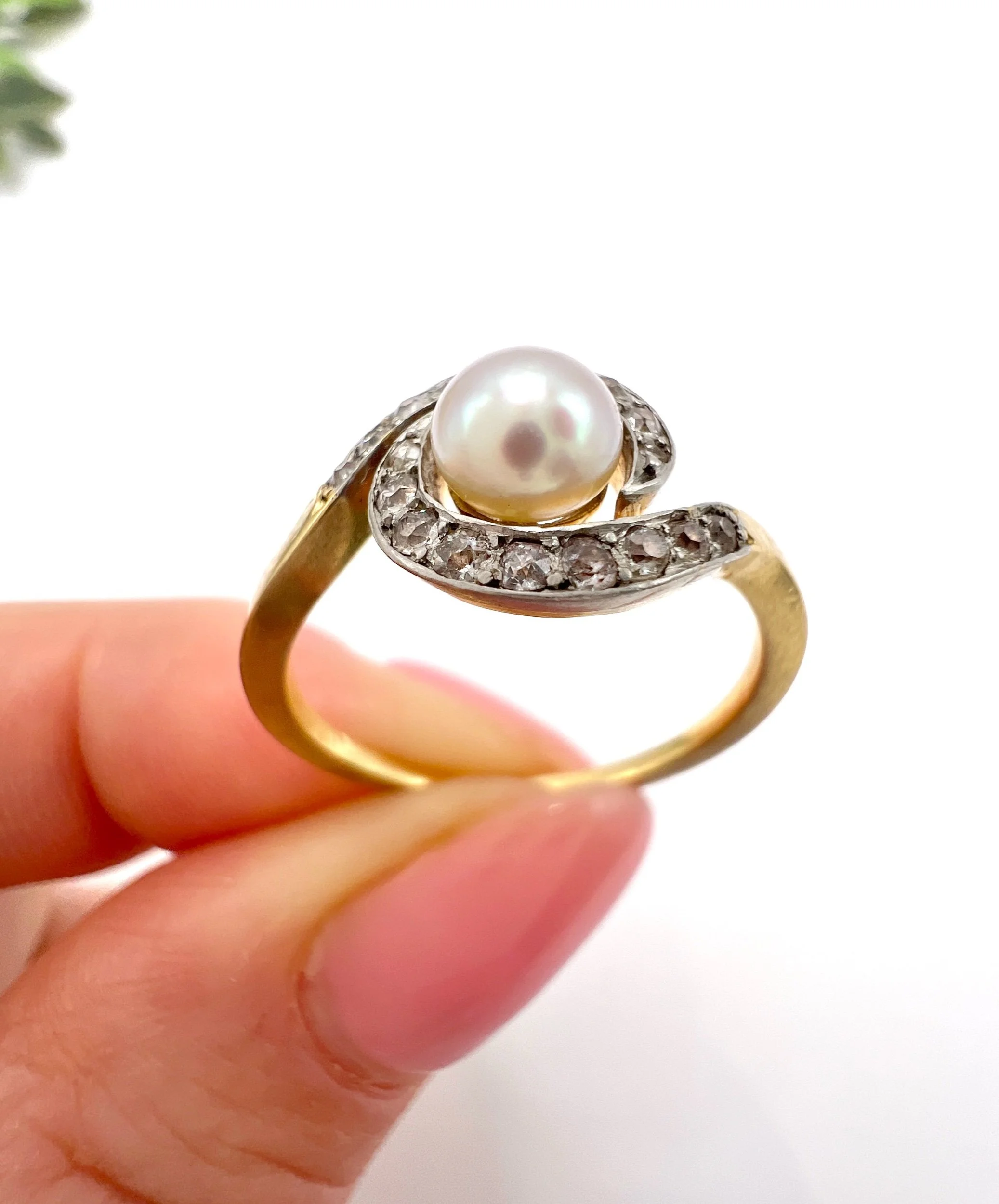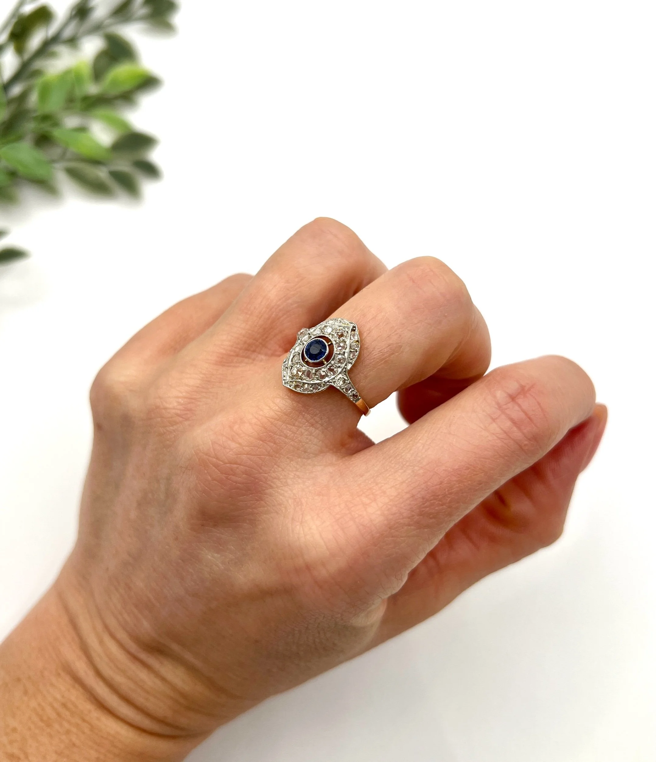 The intricate setting is fashioned in silver, which contrasts beautifully with the warm hues of the gold mount. Enhanced by both the French hallmark and the distinctive owl and swan hallmarks, this ring stands as a testament to its authentic heritage and artisanal quality.