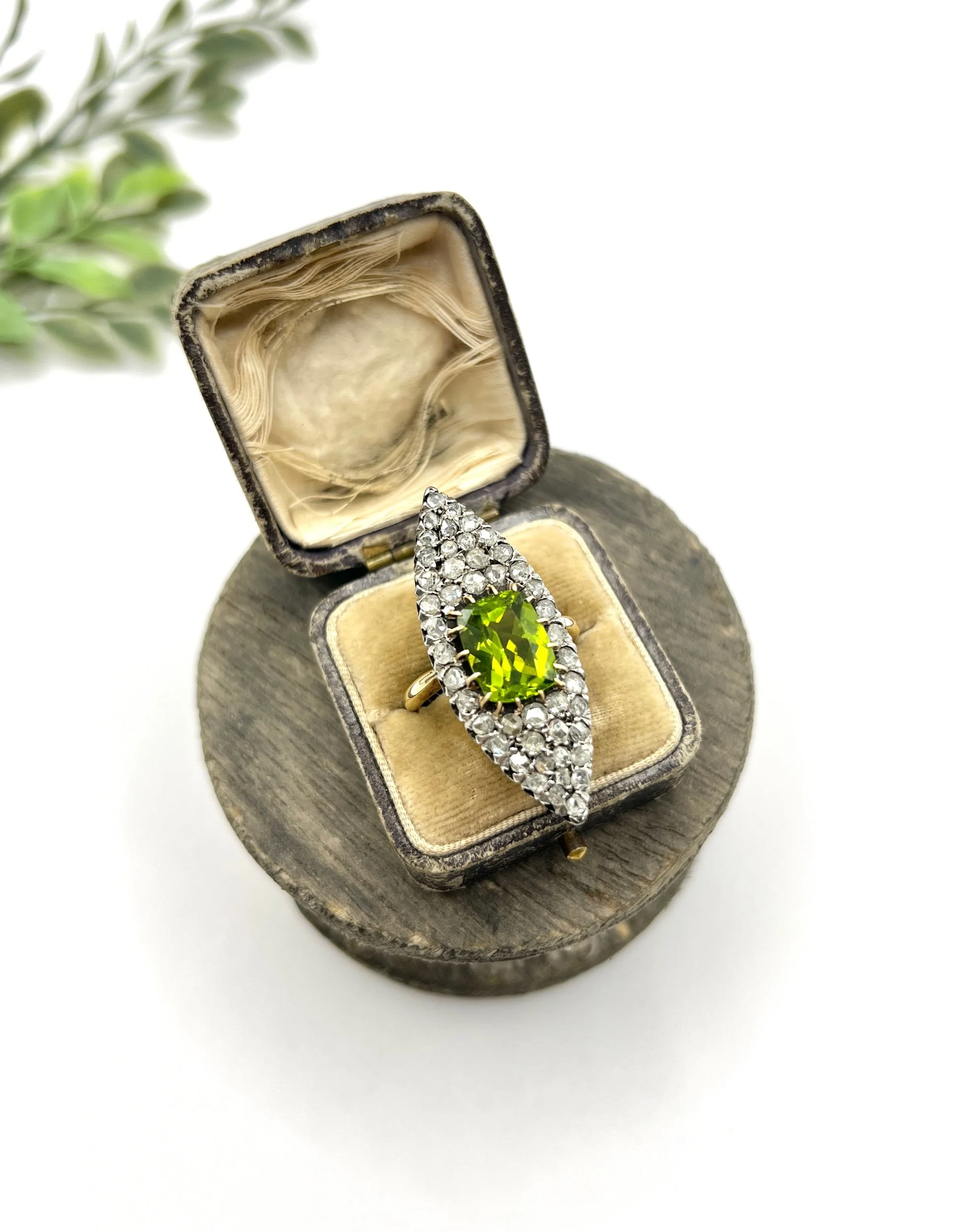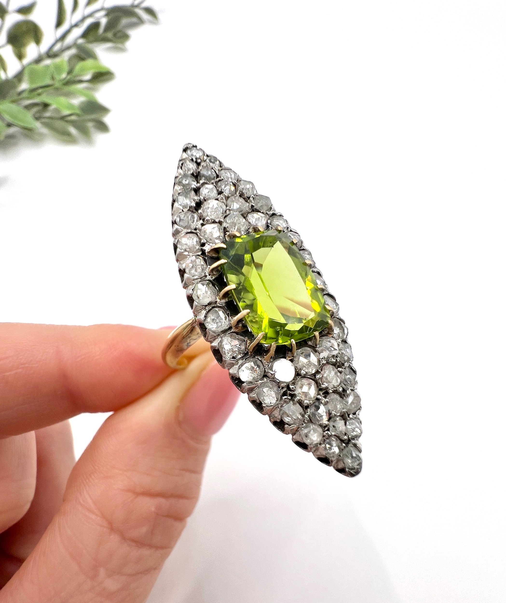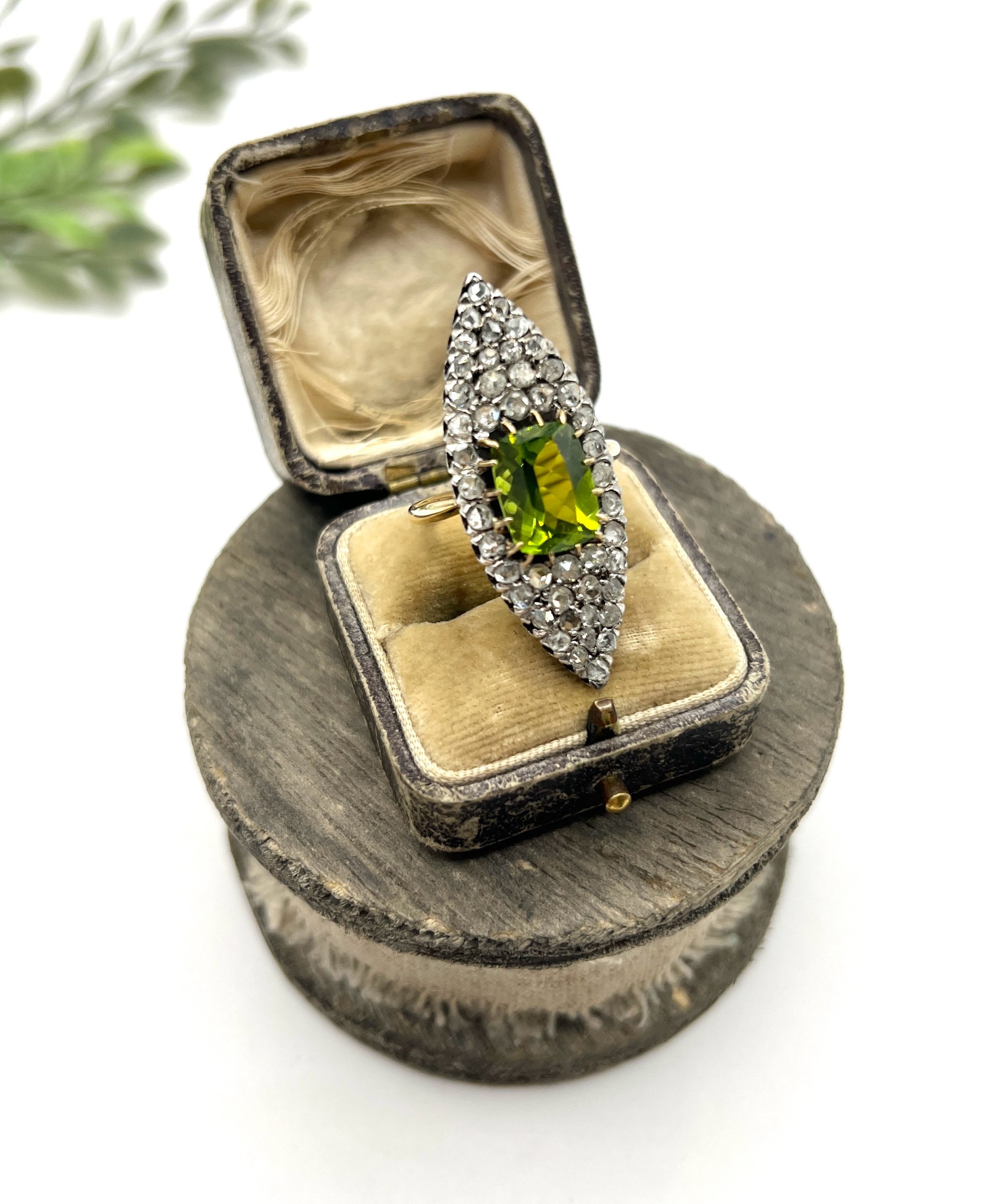 Antique 18ct Yellow Gold French Stamped, Victorian Peridot & Diamond Marquise Ring