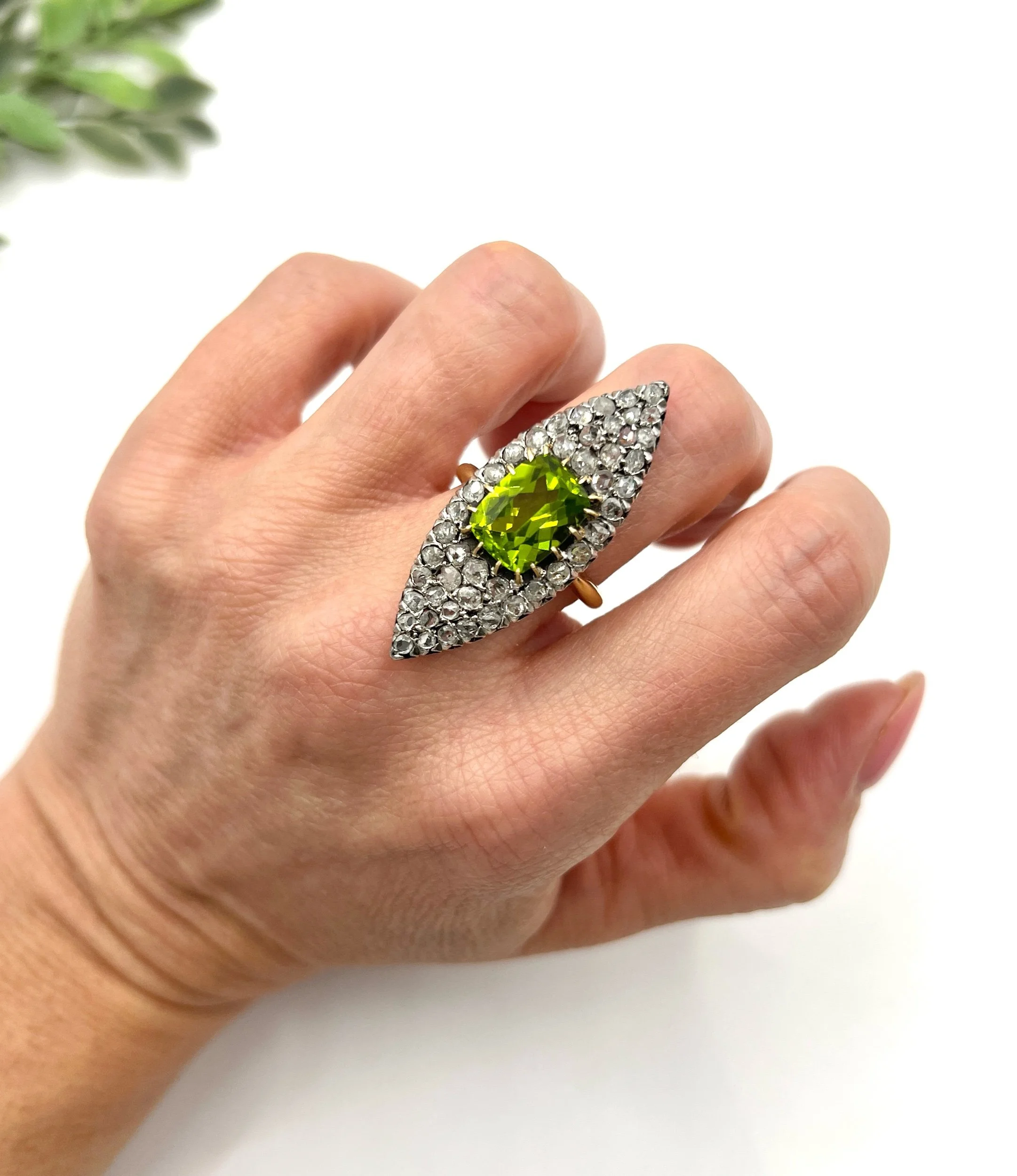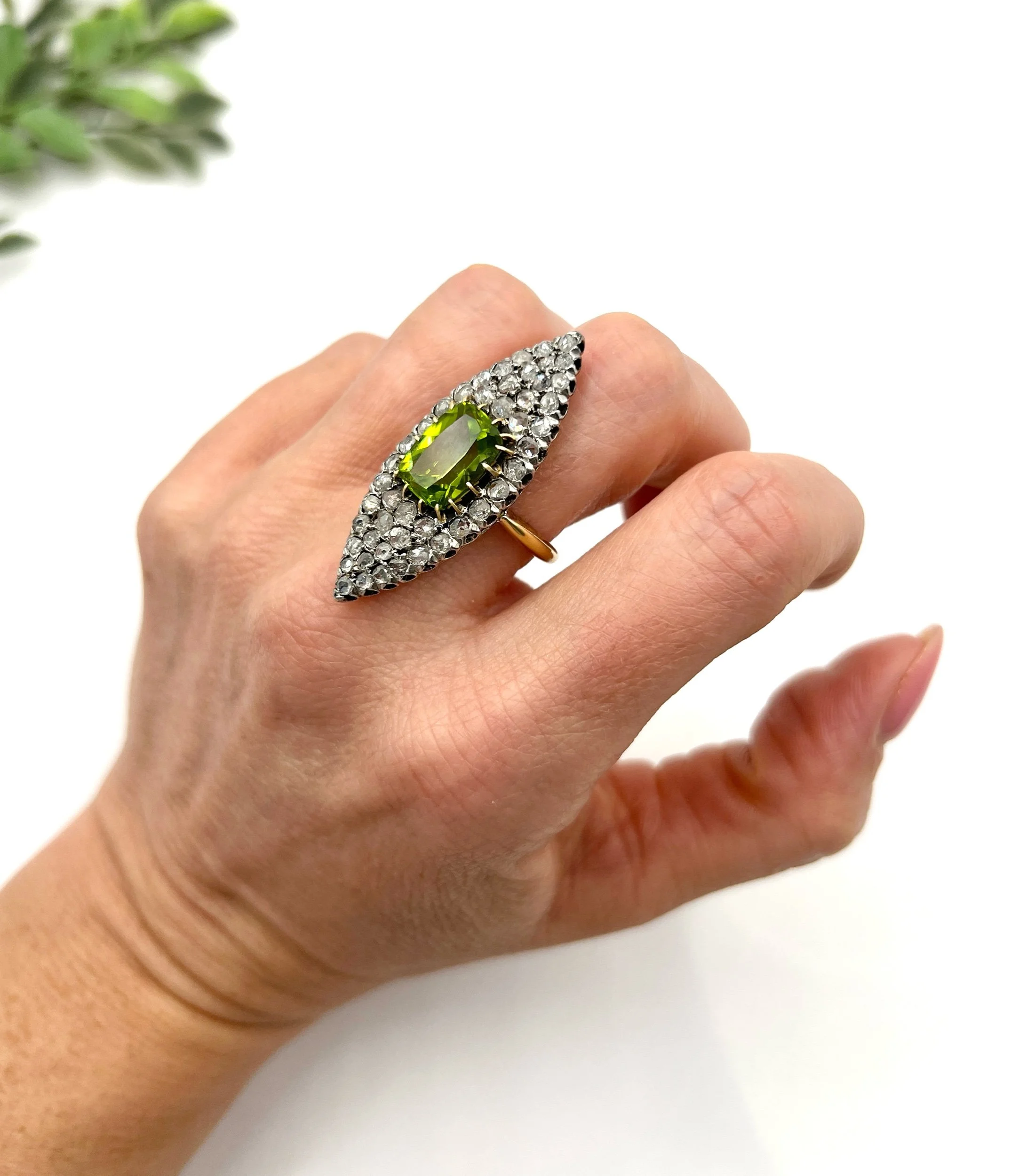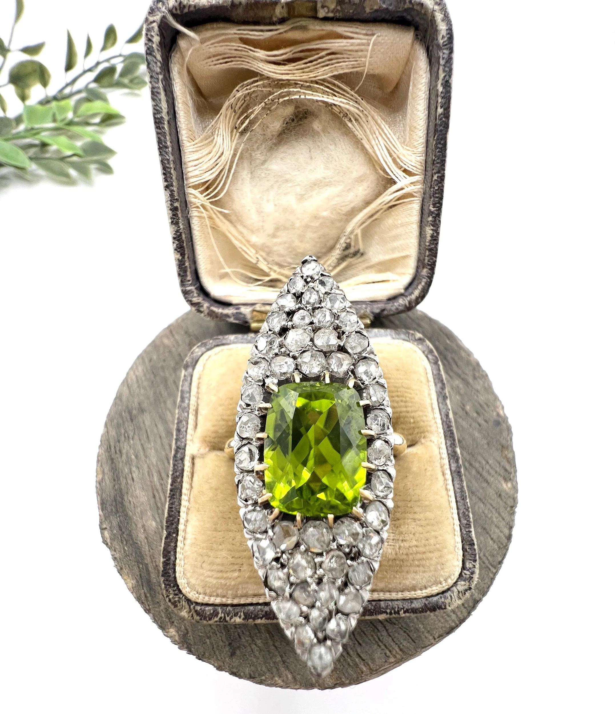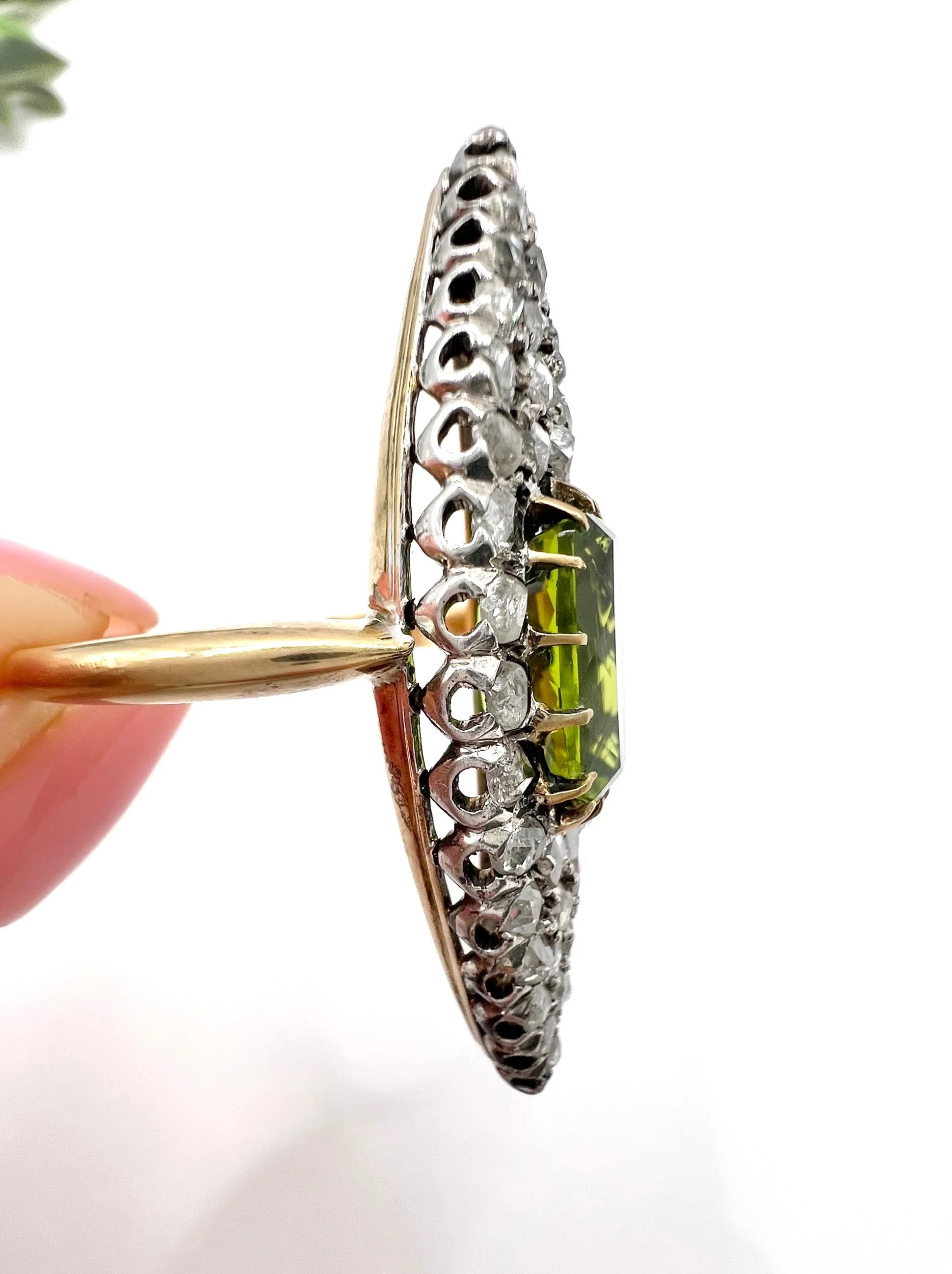 Antique 18ct Yellow Gold French Stamped, Victorian Peridot & Diamond Marquise Ring