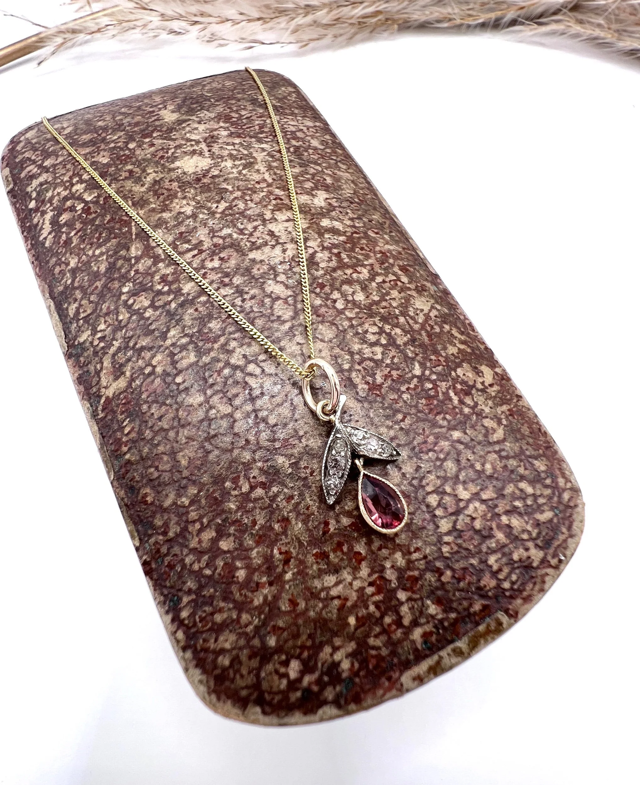 Antique 18ct Gold & Platinum, Edwardian Pink Tourmaline and Diamond Flower Pendant Necklace