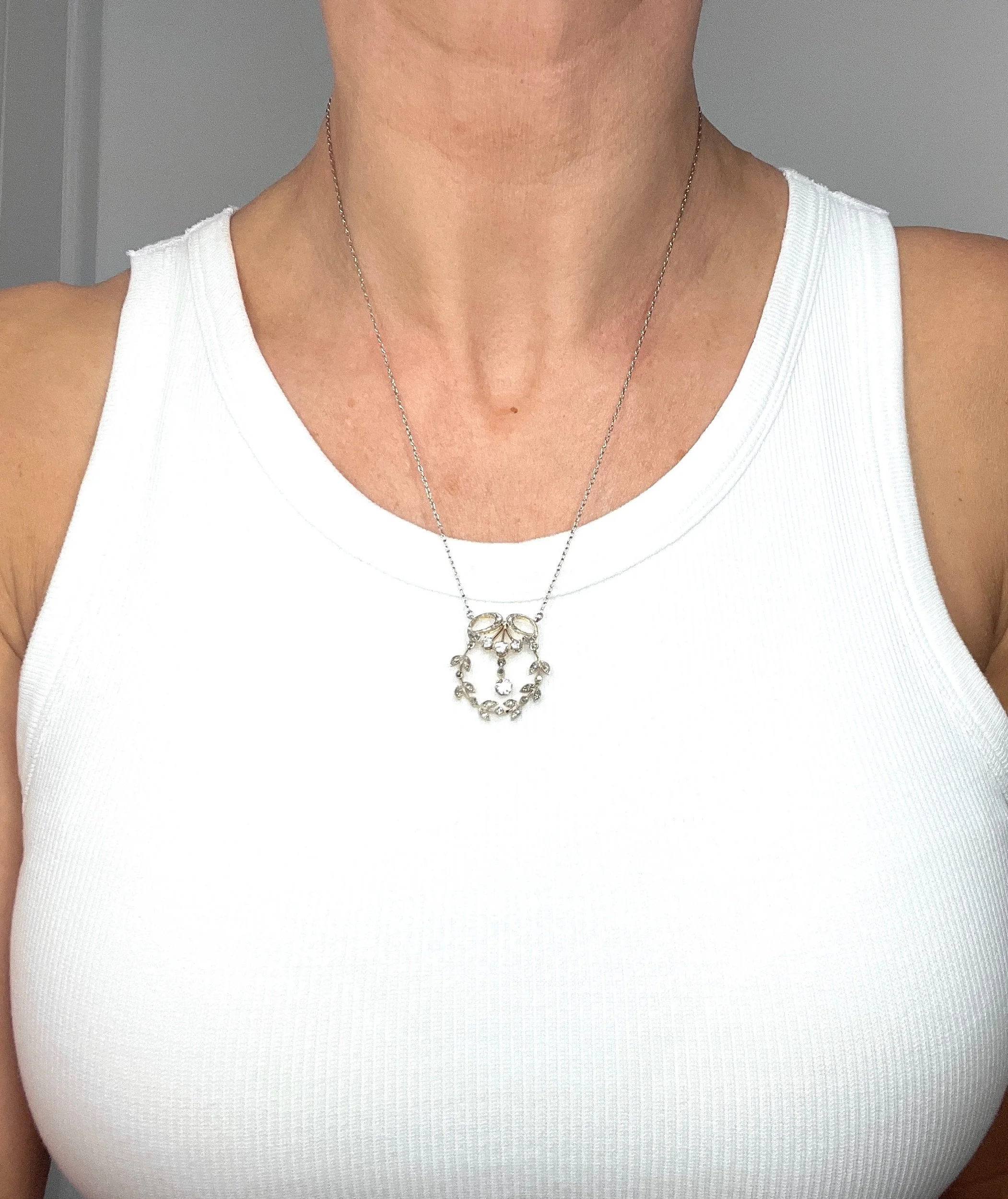 Indulge in the delicate elegance of the Edwardian era with this exquisite, authentic 18ct gold and platinum flower pendant. This piece is a masterclass in Belle Époque design, featuring a graceful foliate motif that perfectly captures the romanticism of the early 20th century.