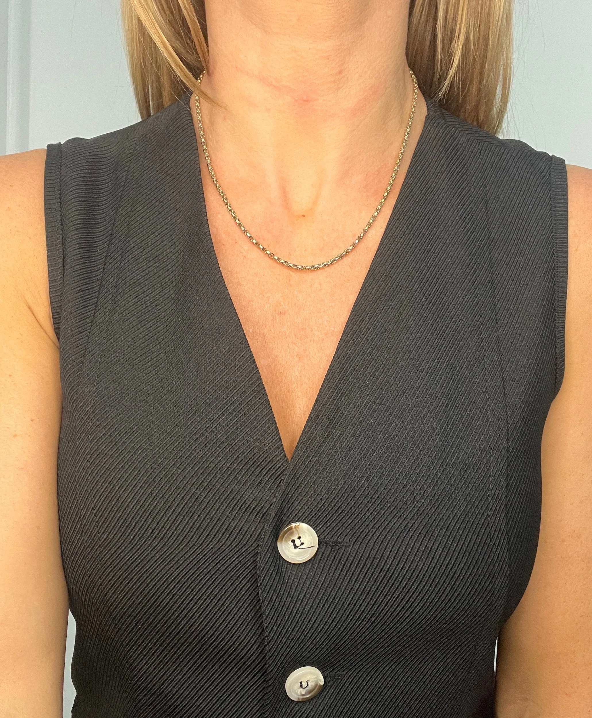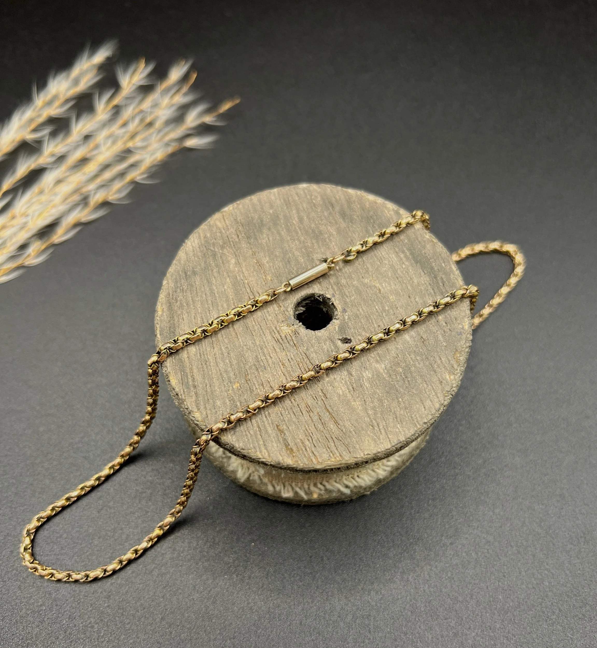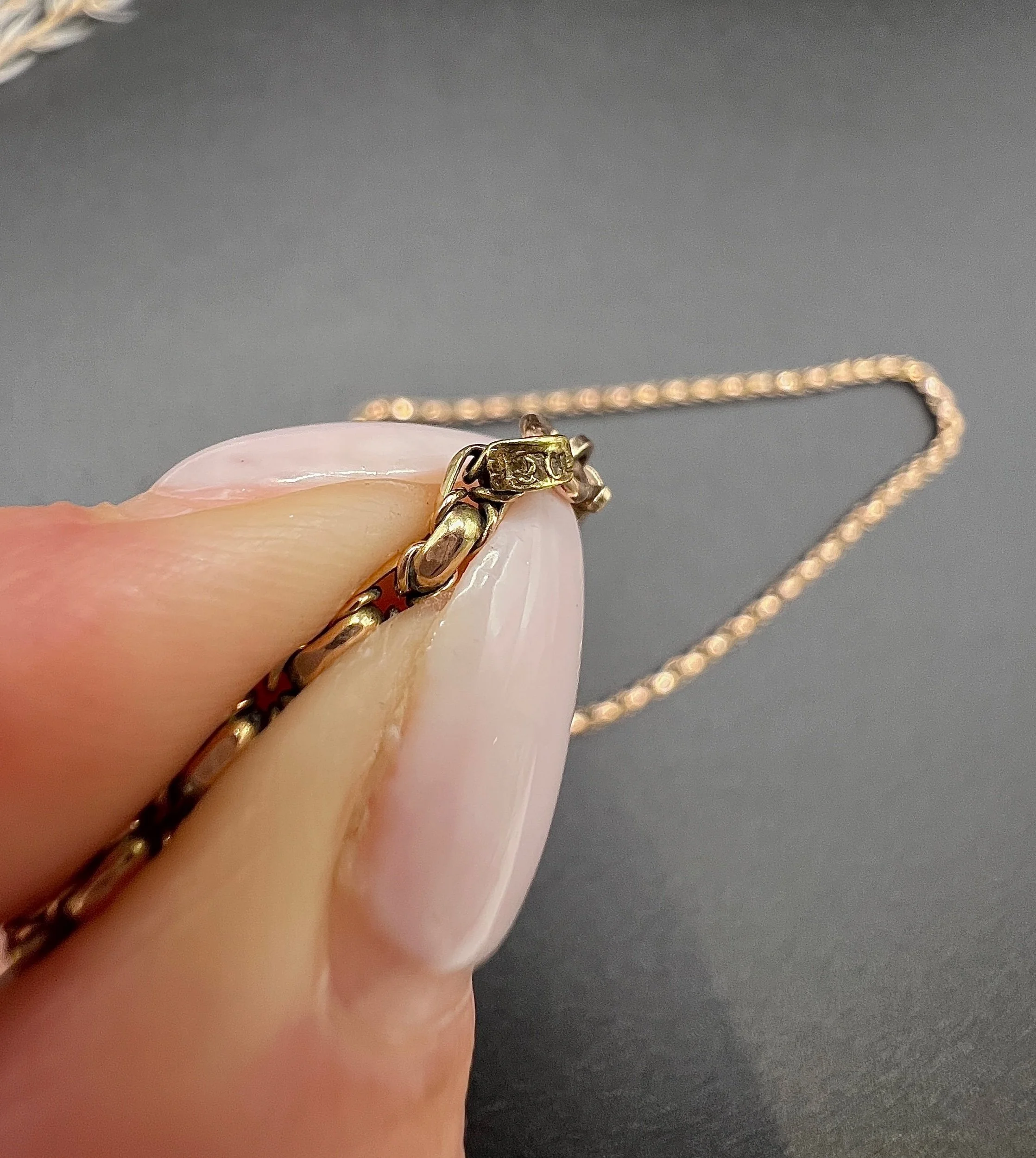 Measuring approximately 17 1/2 inches in length, the chain is perfectly suited for both casual and formal wear. The unique barrel and torpedo clasp adds an extra touch of authenticity and charm. Accompanying the clasp is a delicate 9ct gold tag, further emphasising the quality of this exquisite piece.