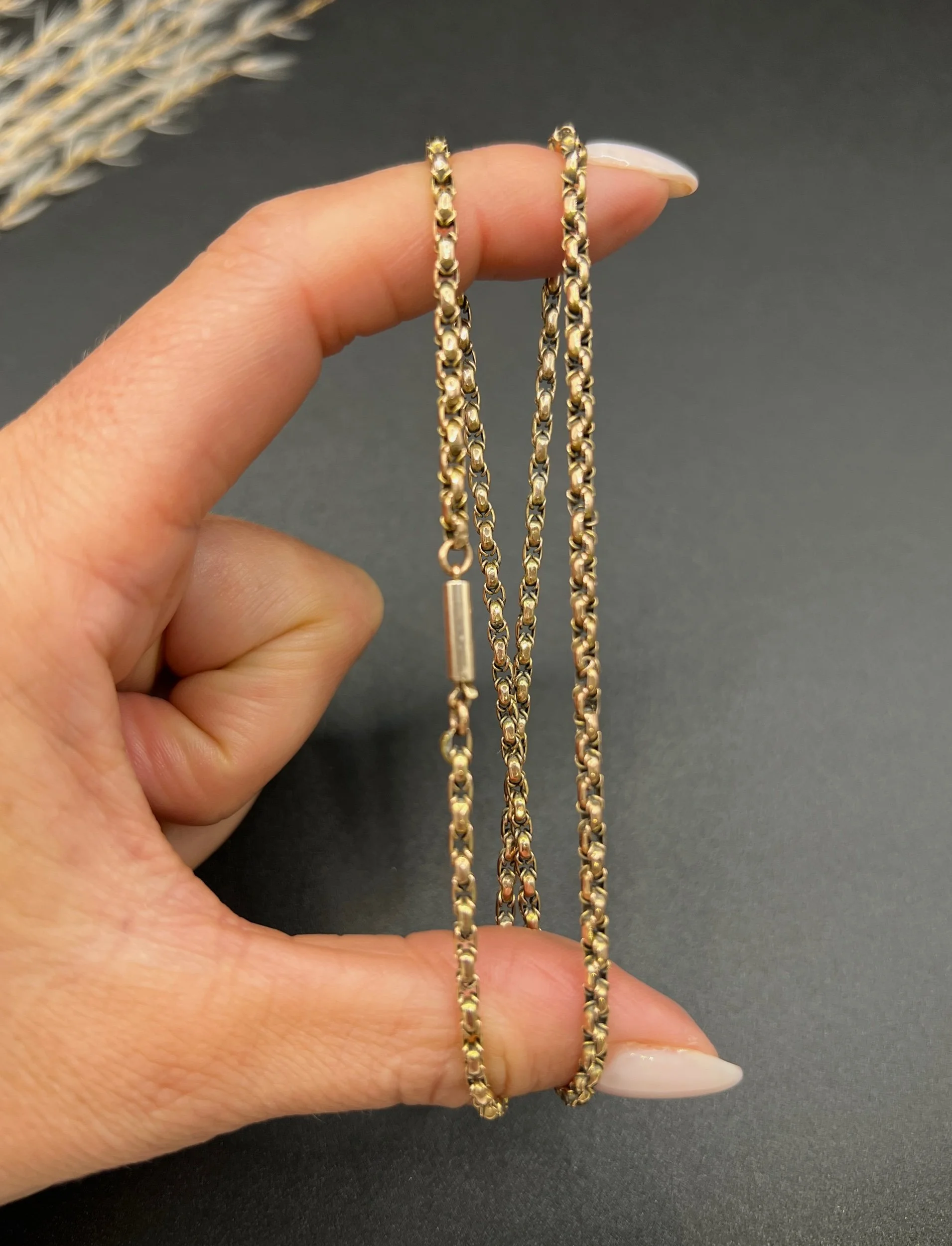 Antique 9ct Rose Gold Tagged, Edwardian 17.5 Inch Fancy Double Link Belcher Chain
