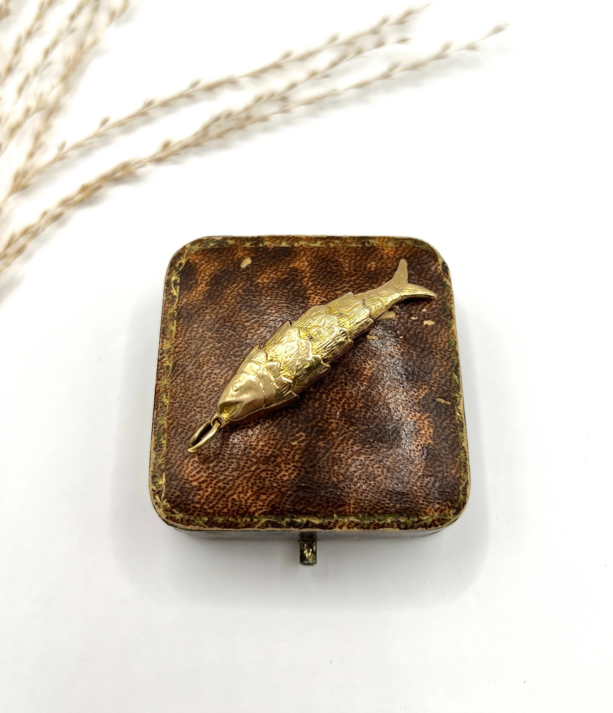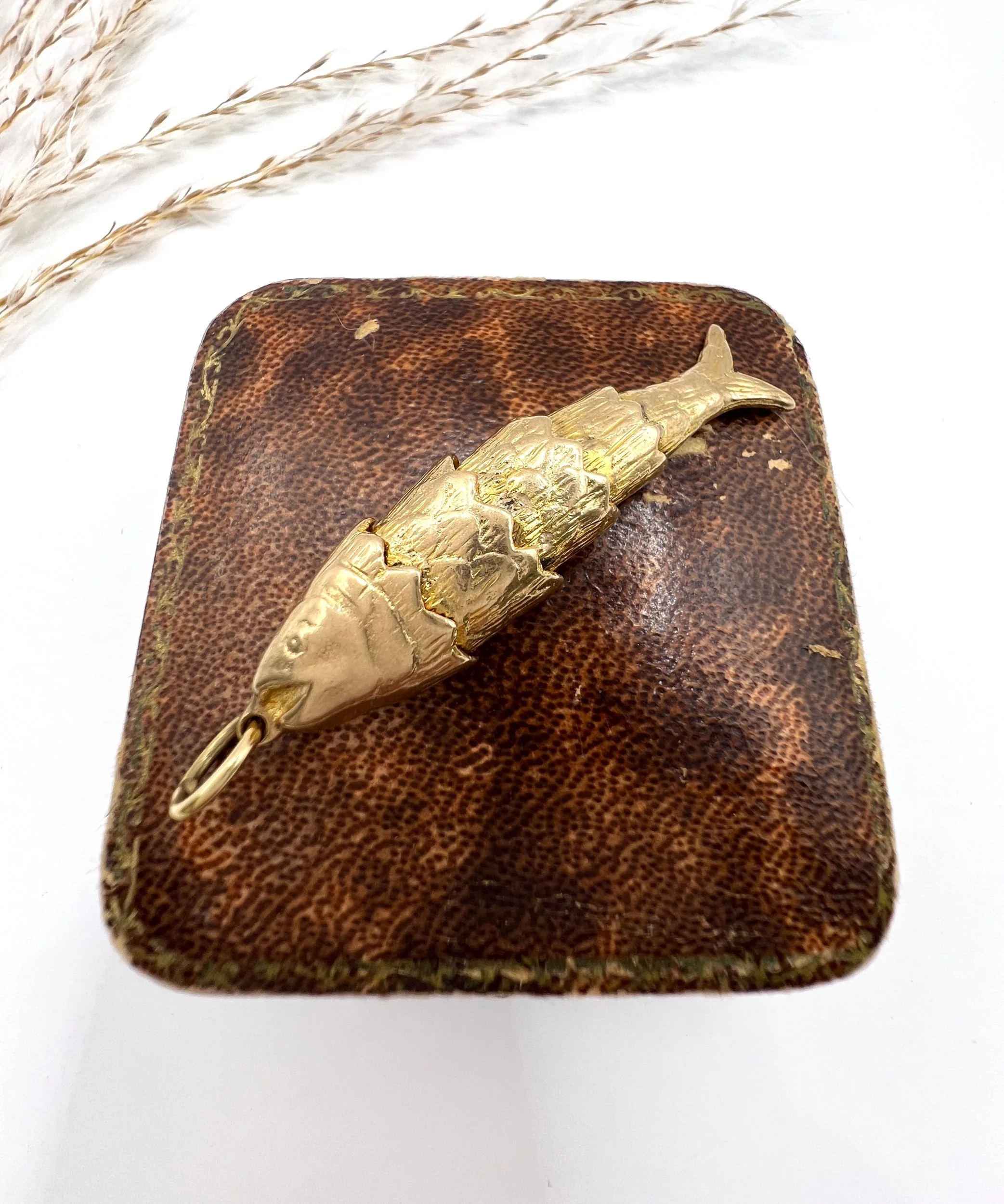 Vintage 9ct Gold Stamped, 1970s Articulated Lucky Fish Pendant Charm