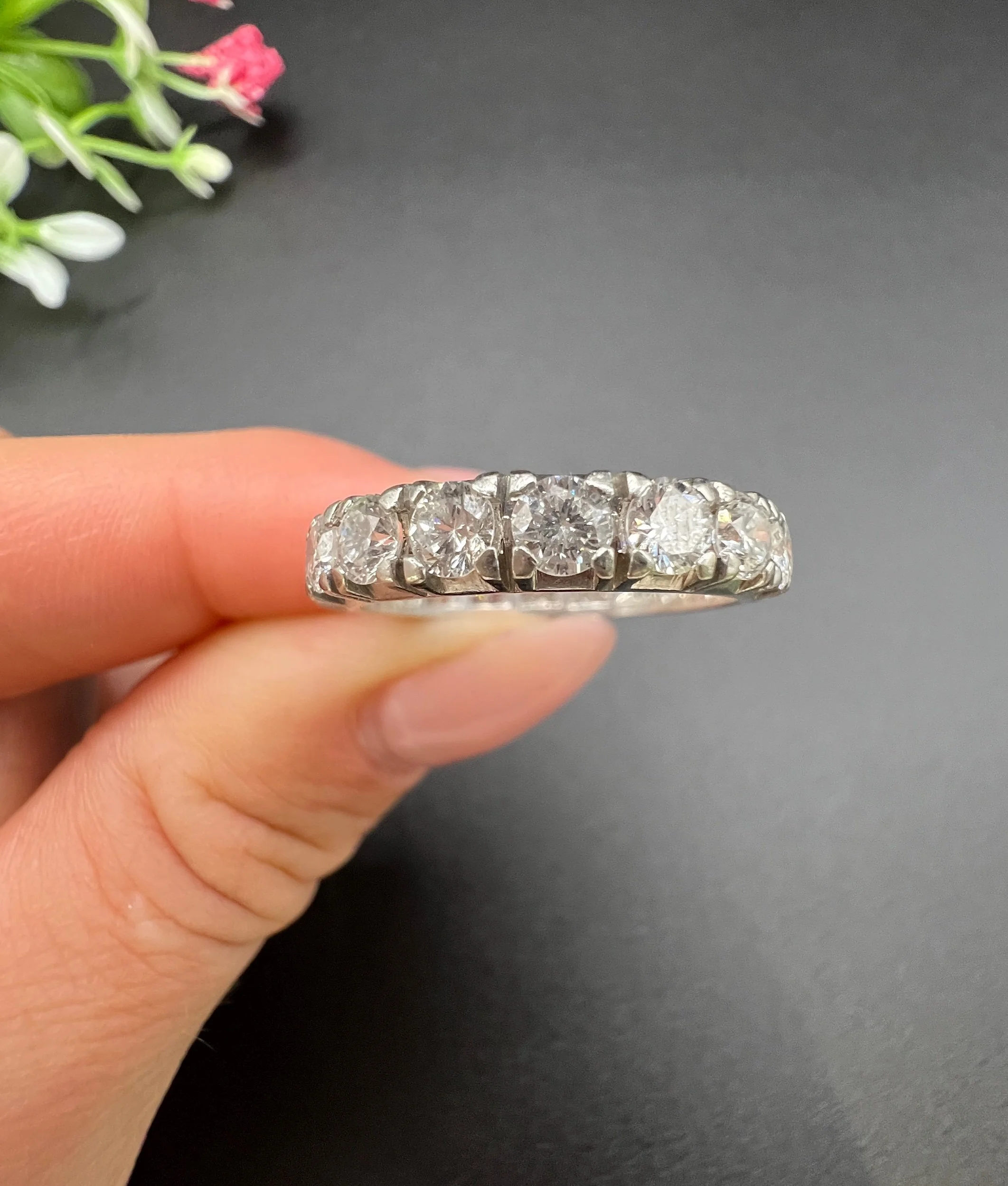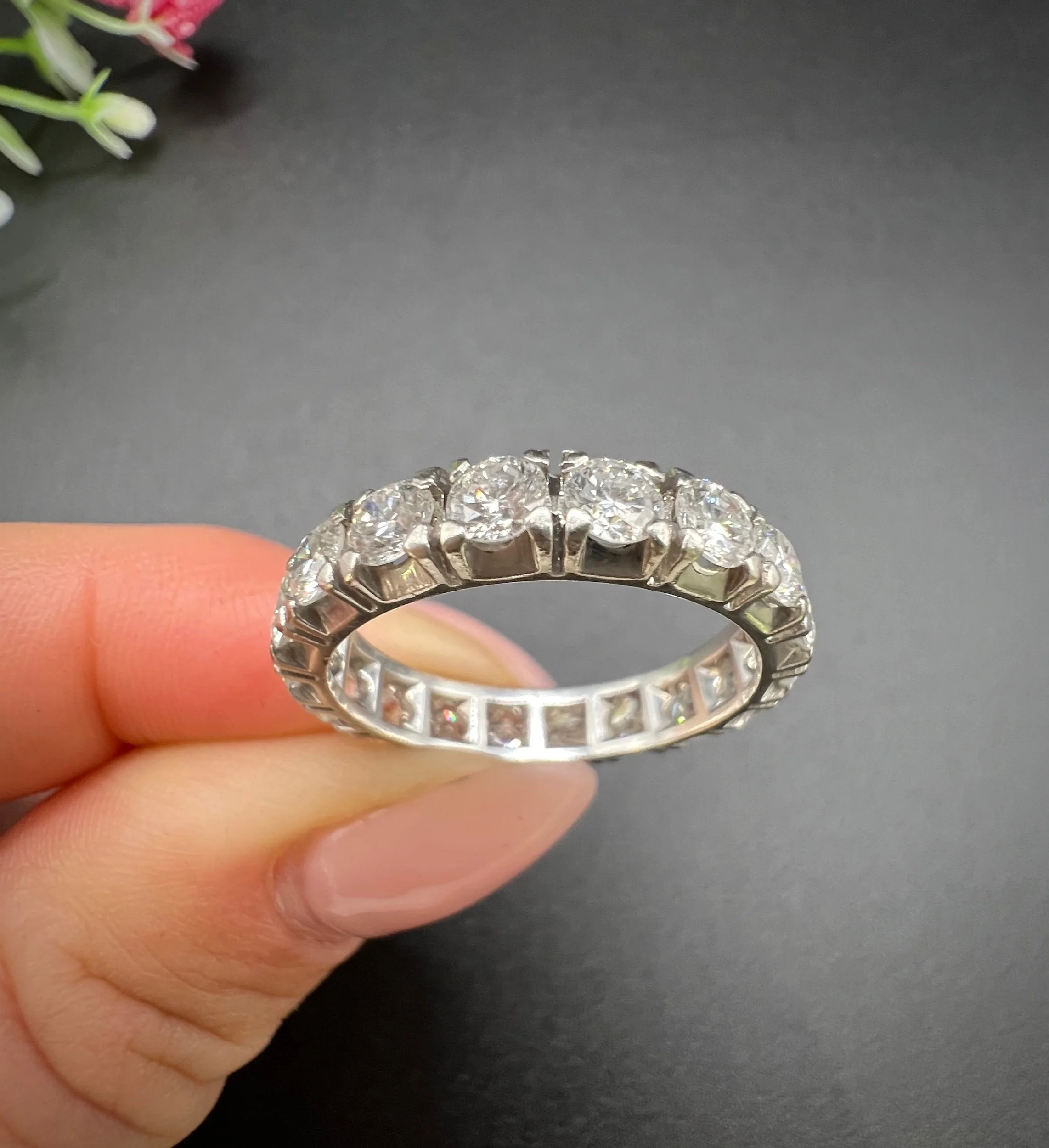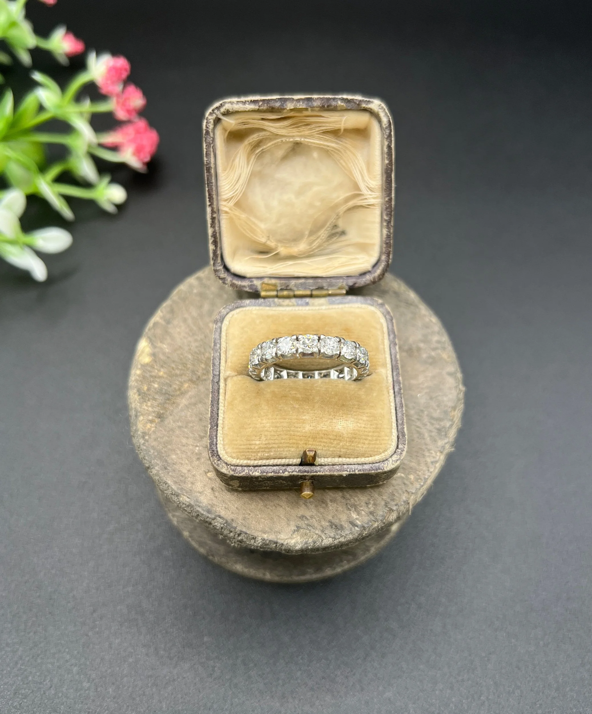 Vintage 1940s Platinum, 2.70 Carat Full Diamond Eternity Band Ring, Wedding Ring, Anniversary Jewellery