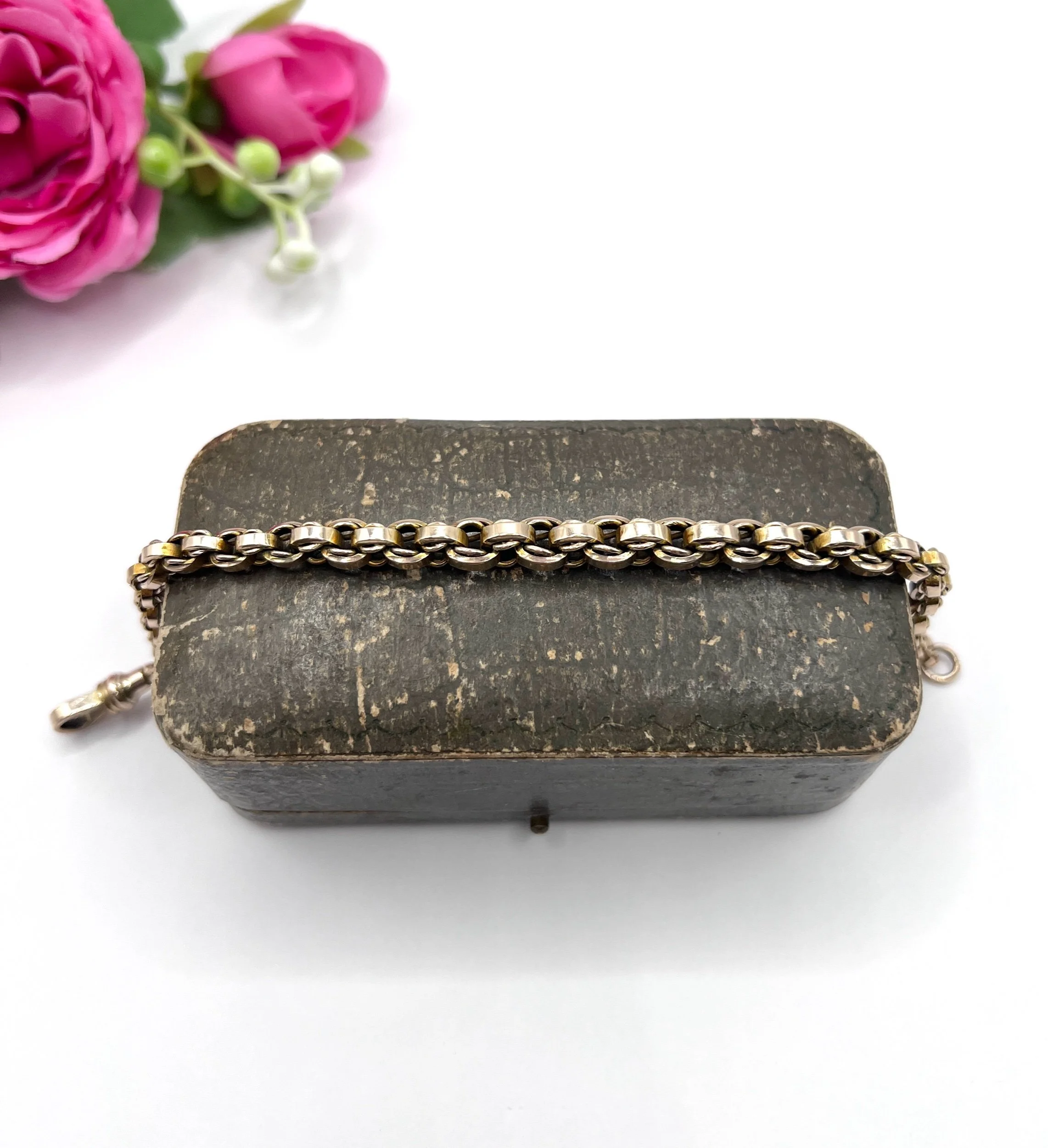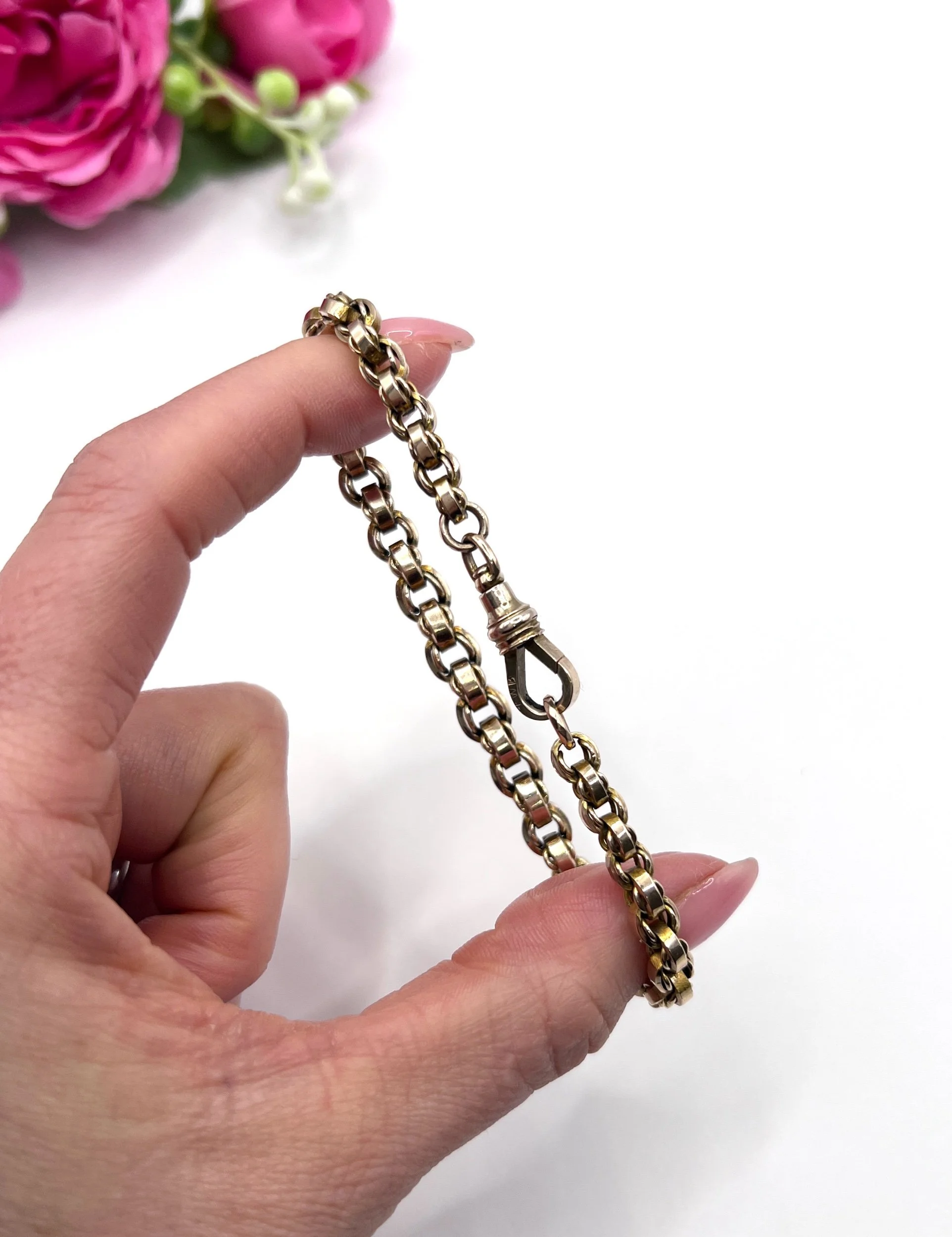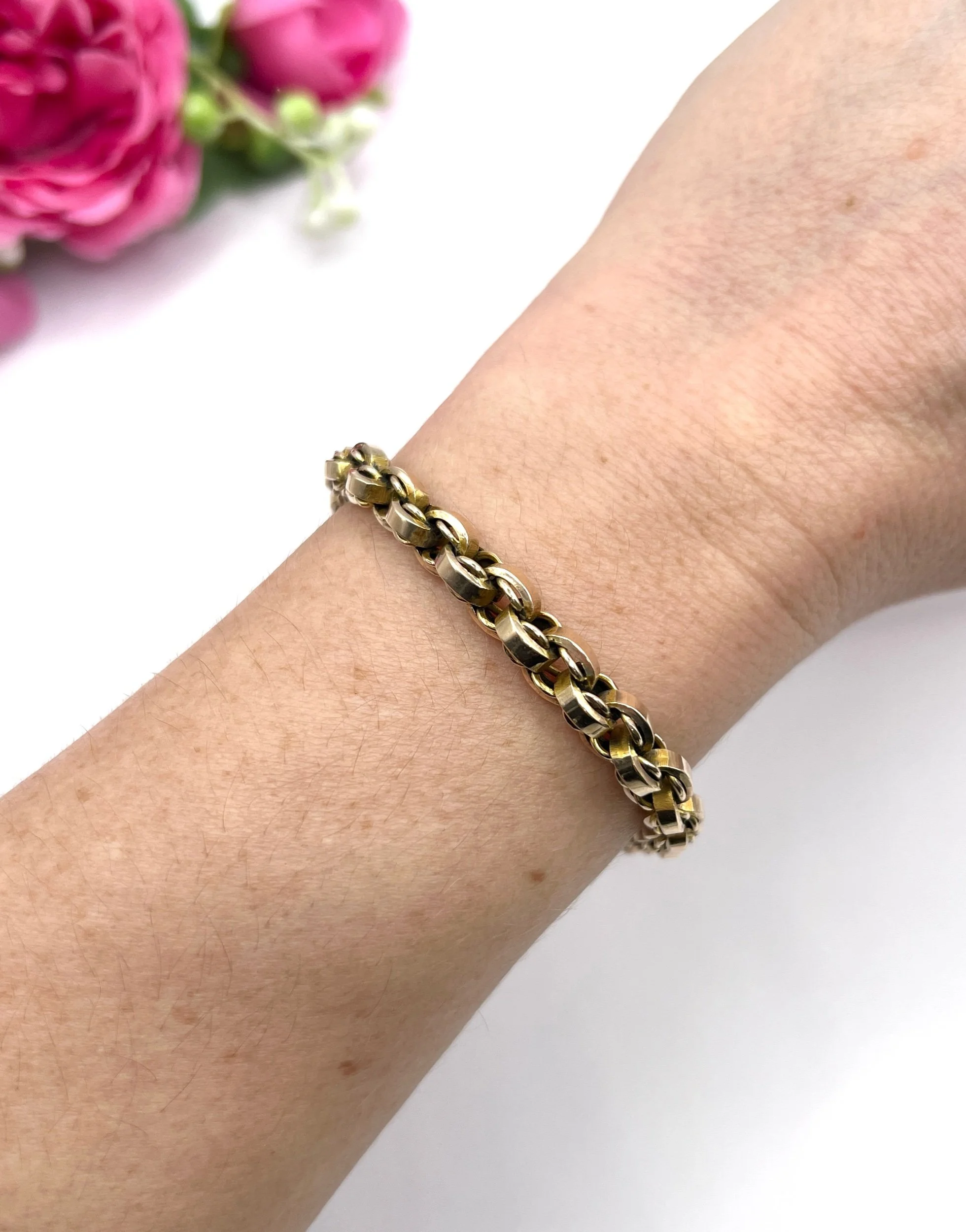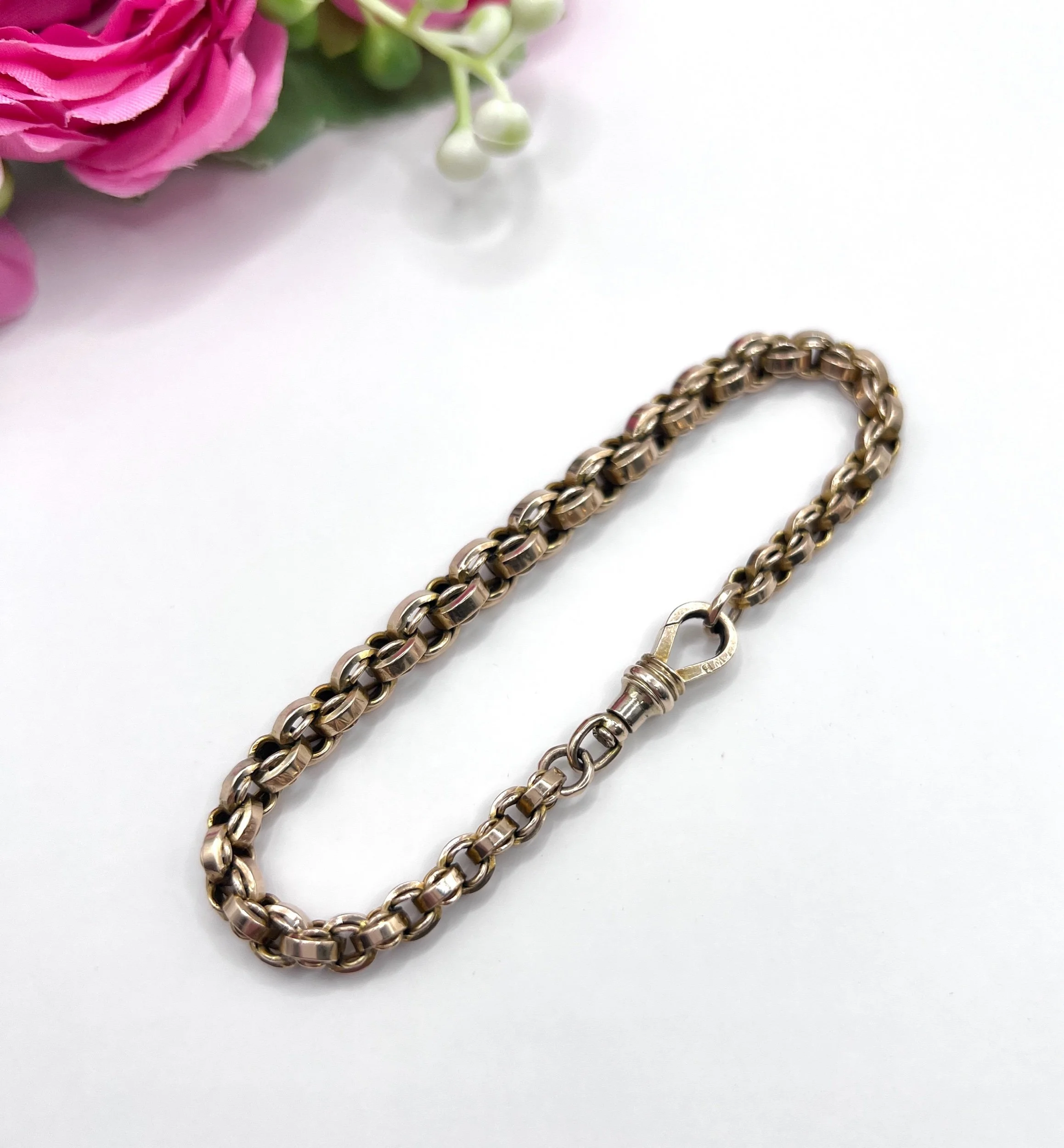 Step back in time with this exquisite Edwardian bracelet, showcasing a stunning fancy rolo-link design. Crafted from luxurious 9ct gold, this piece embodies the elegance of the early 20th century. The graduated links are perfectly interwoven with smaller inner links, creating a captivating visual texture that catches the light beautifully. The bracelet features a reliable swivel clasp for secure wear, ensuring both style and practicality. In our opinion, the colour is a slightly paler rose gold.