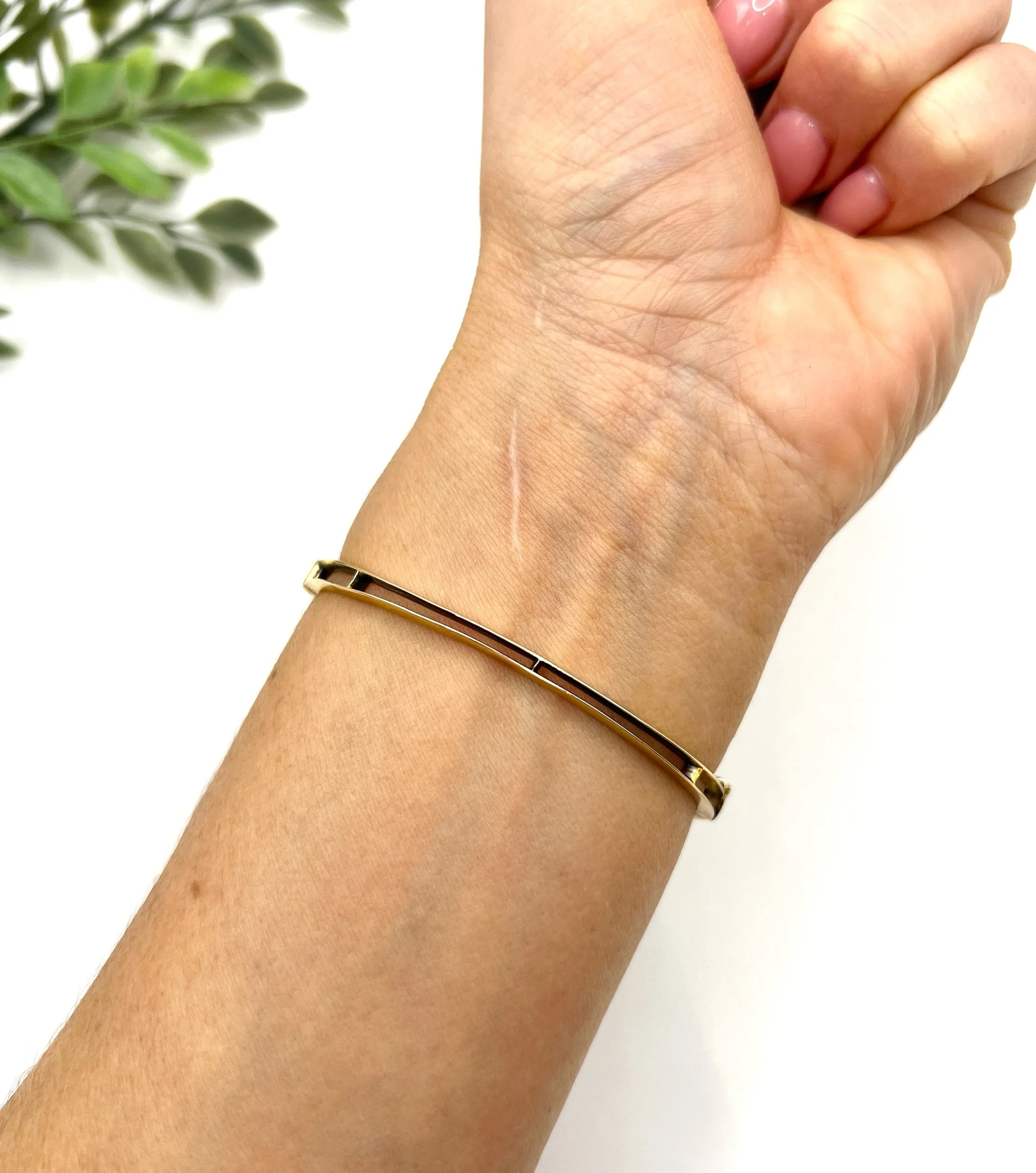 The bracelet measures approximately 7 1/2 inches in length and 4mm in width.