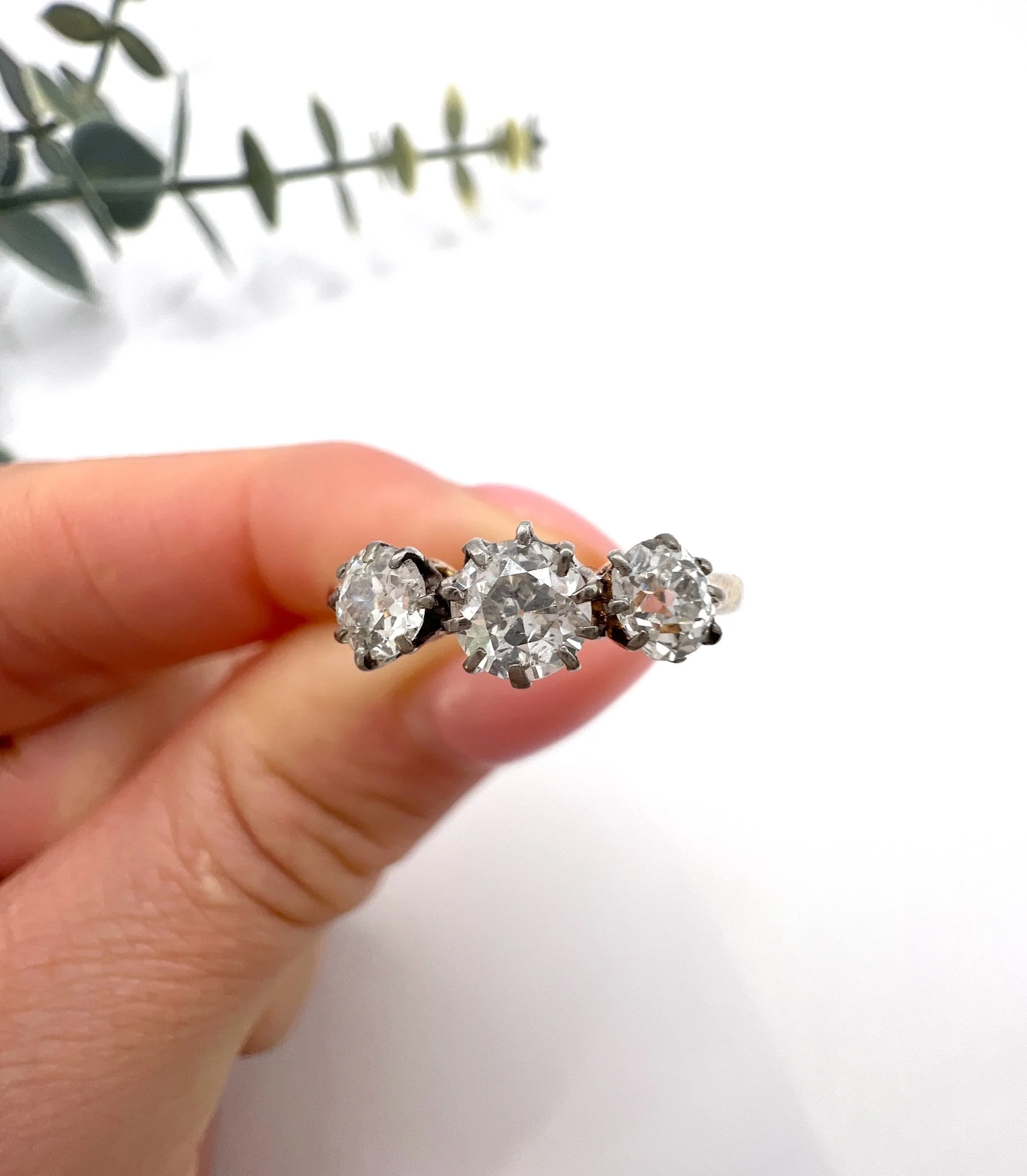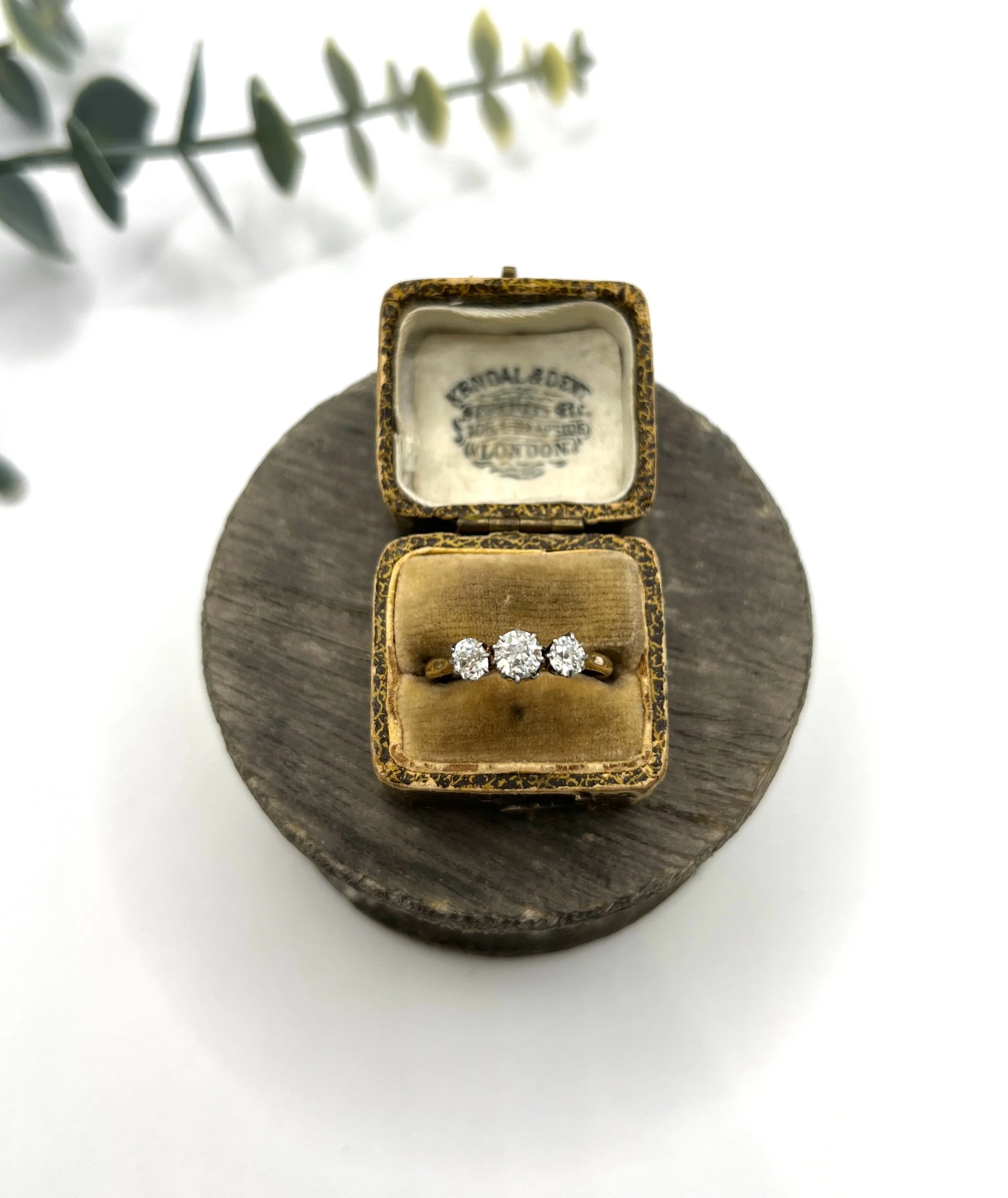 Antique 18ct Yellow Gold, 1920s 0.85 Carat Diamond Three Stone Trilogy Ring