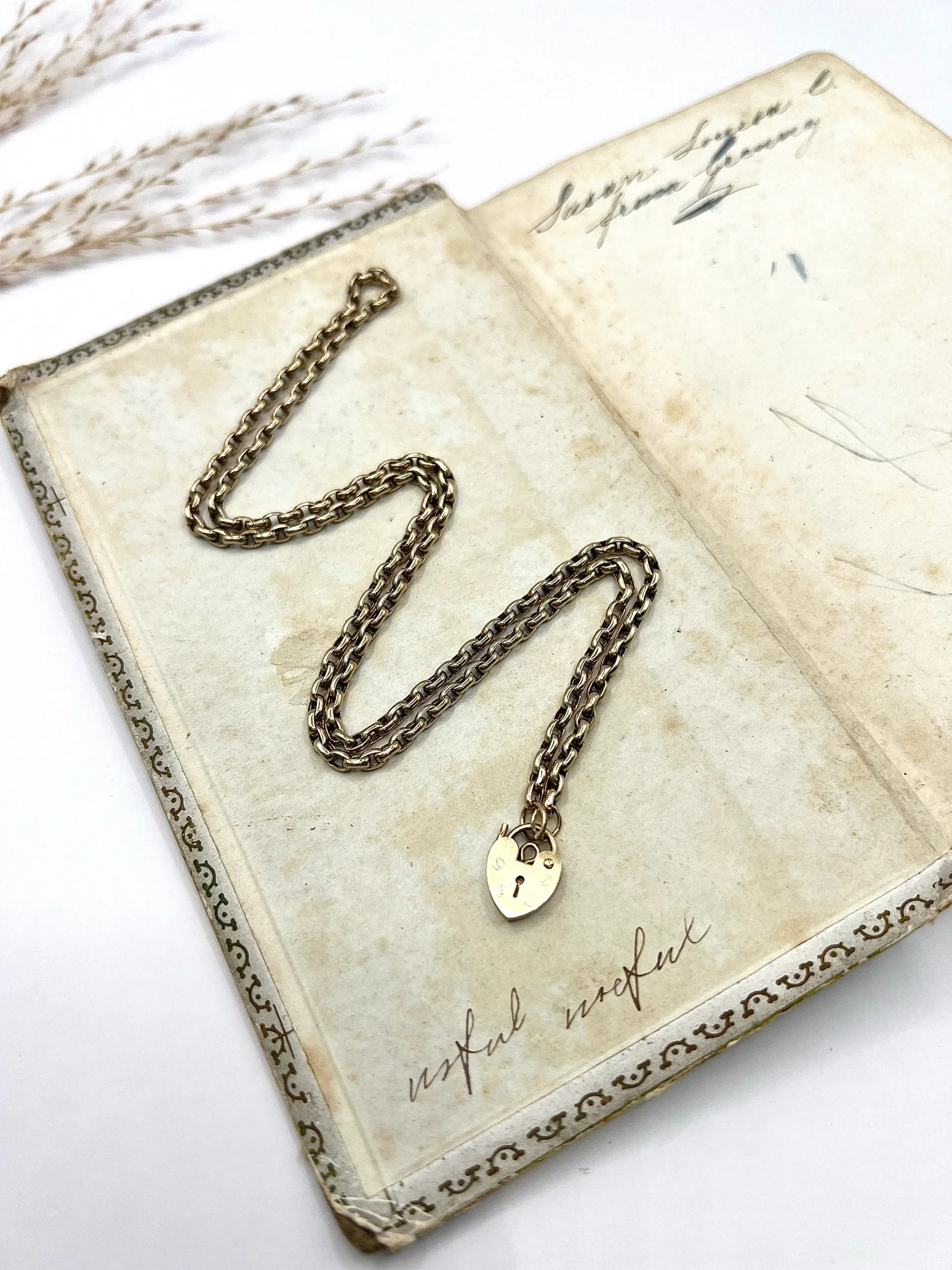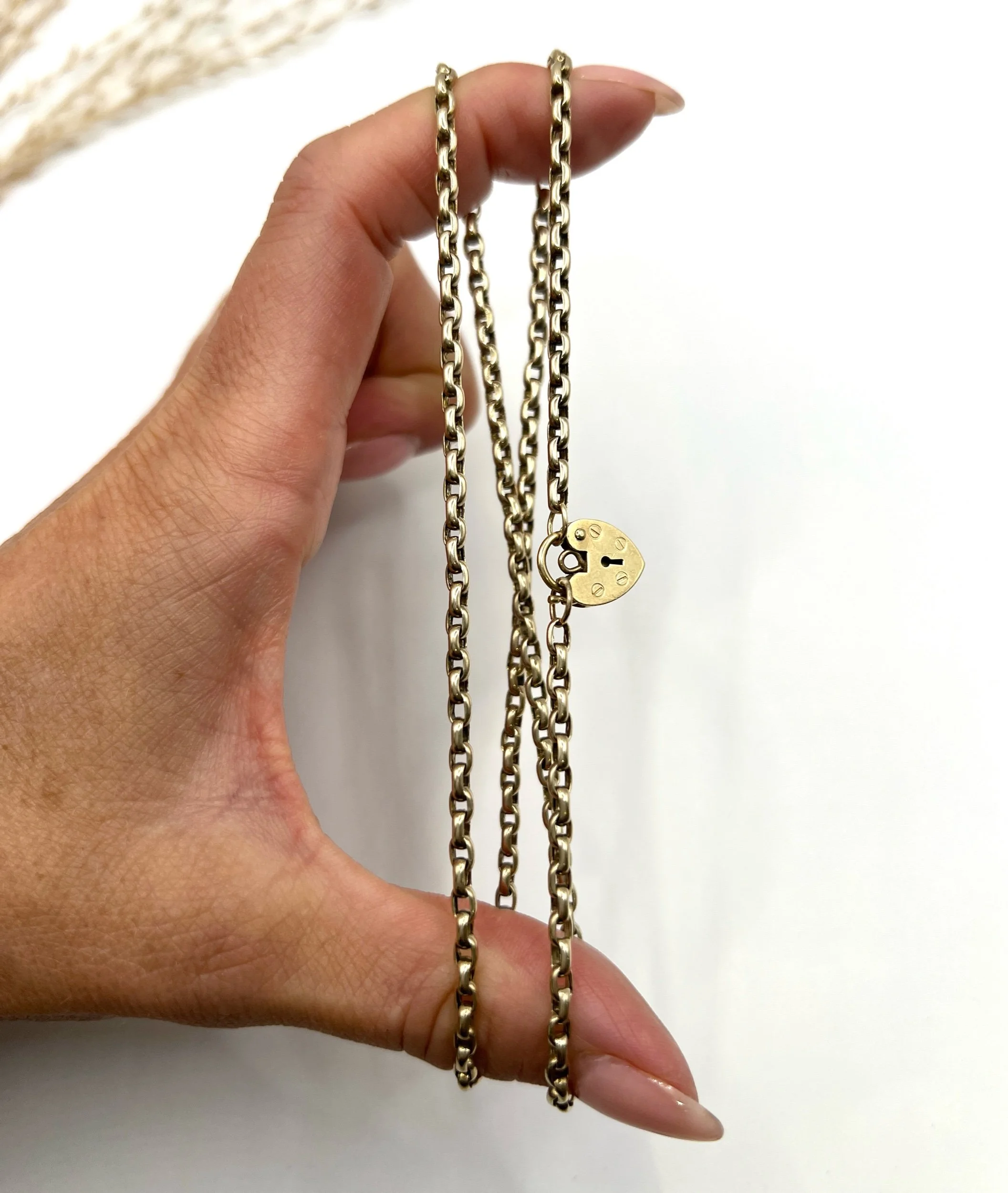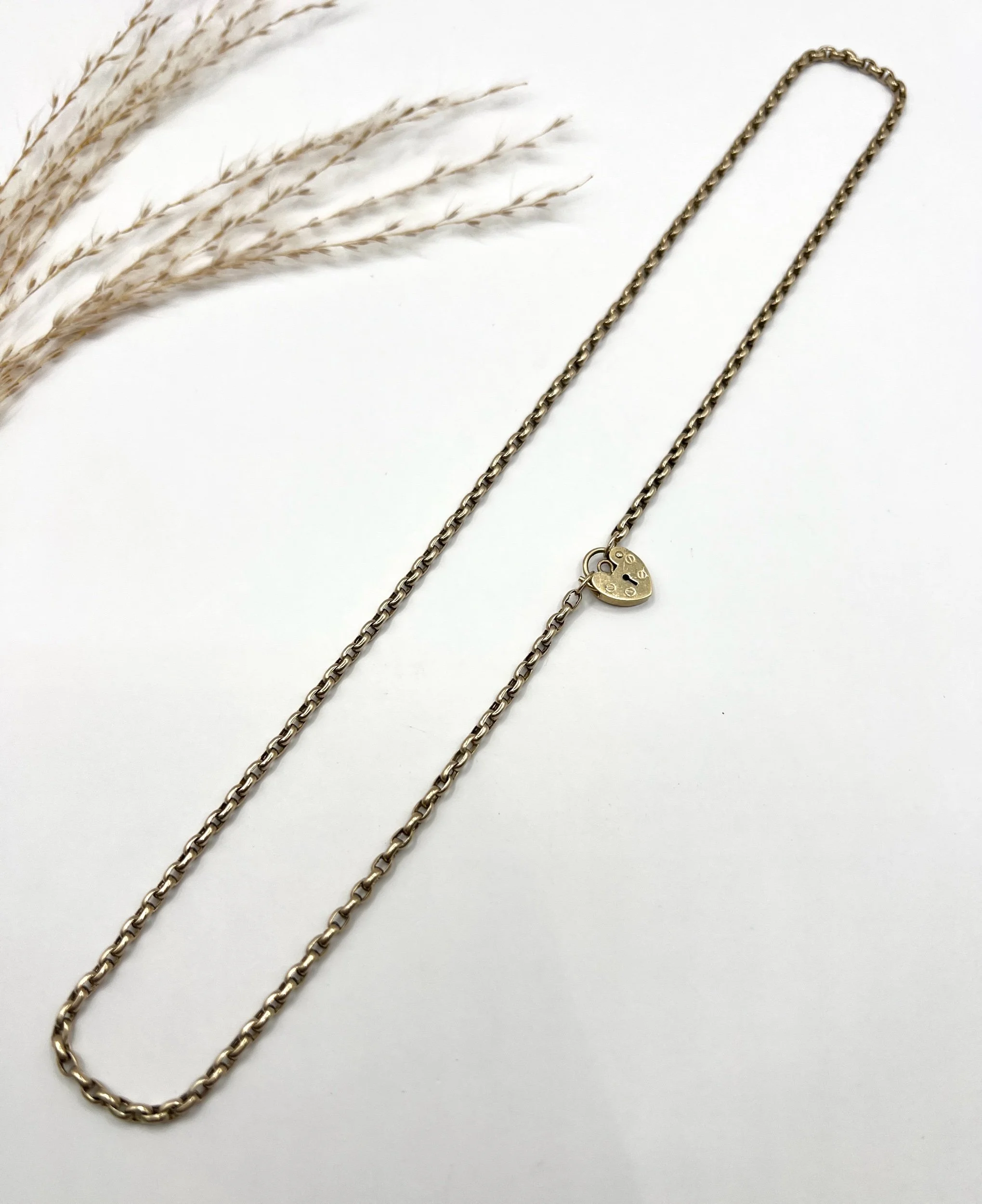 Antique 9ct Rose Gold Stamped, 20 3/4 Inch Belcher Chain with Heart Padlock Clasp