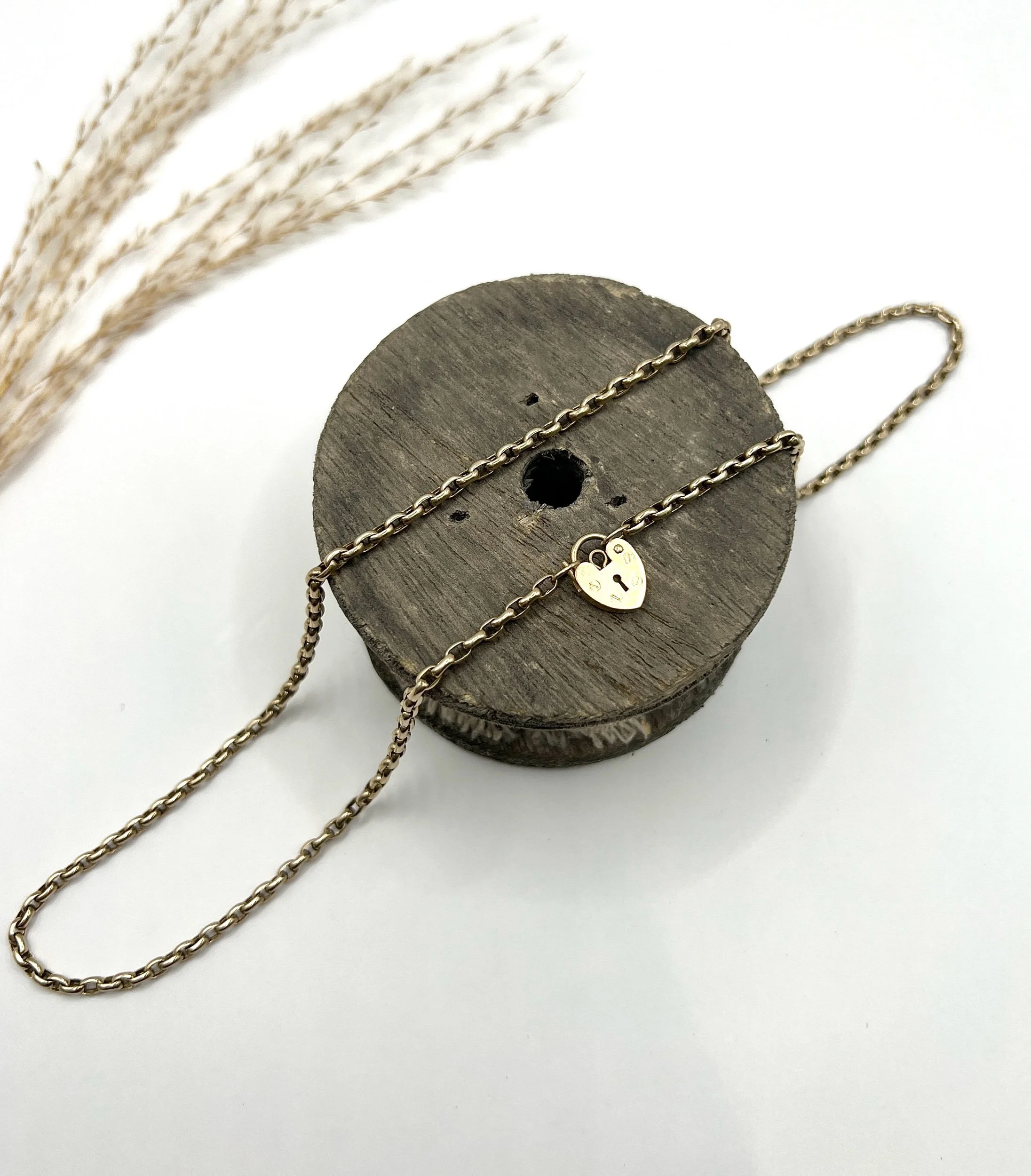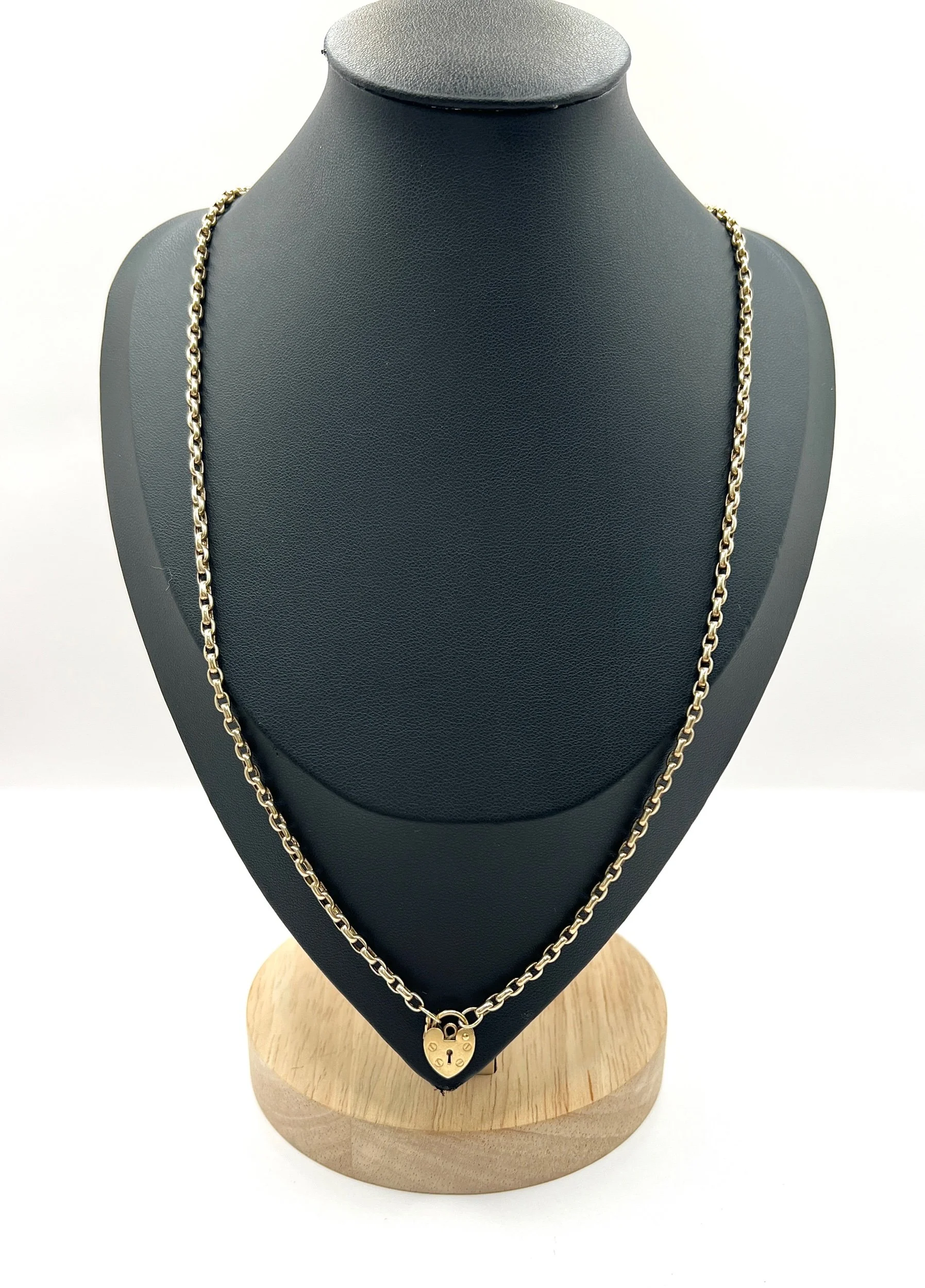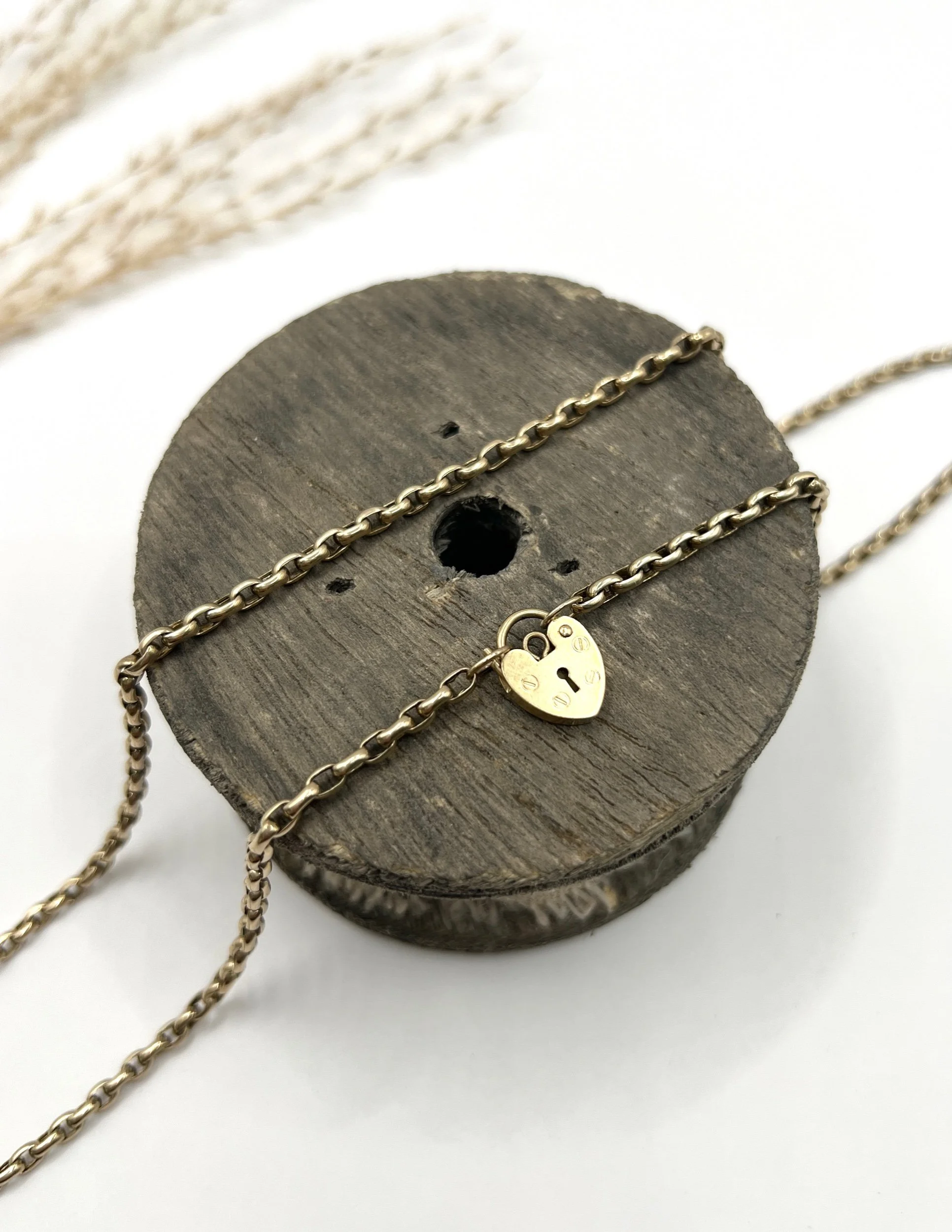 Antique 9ct Rose Gold Stamped, 20 3/4 Inch Belcher Chain with Heart Padlock Clasp