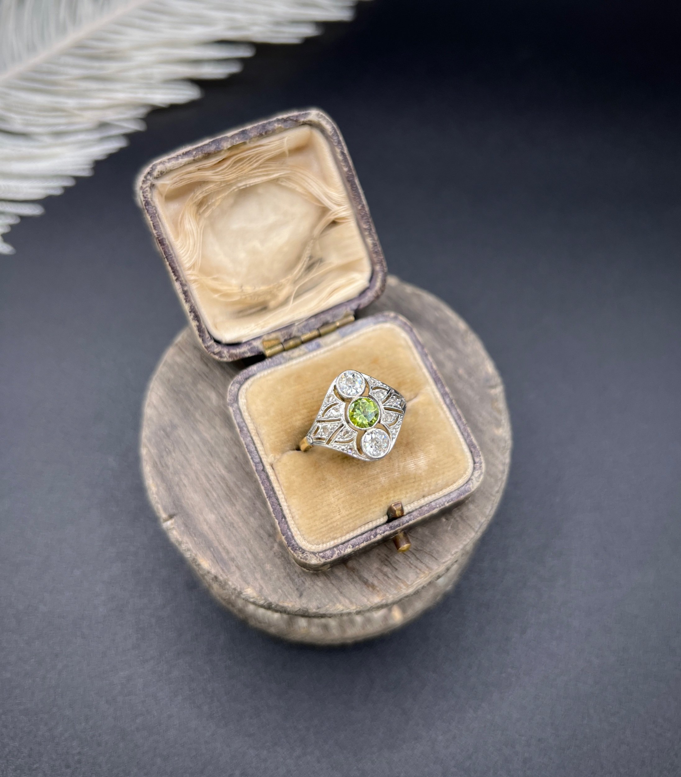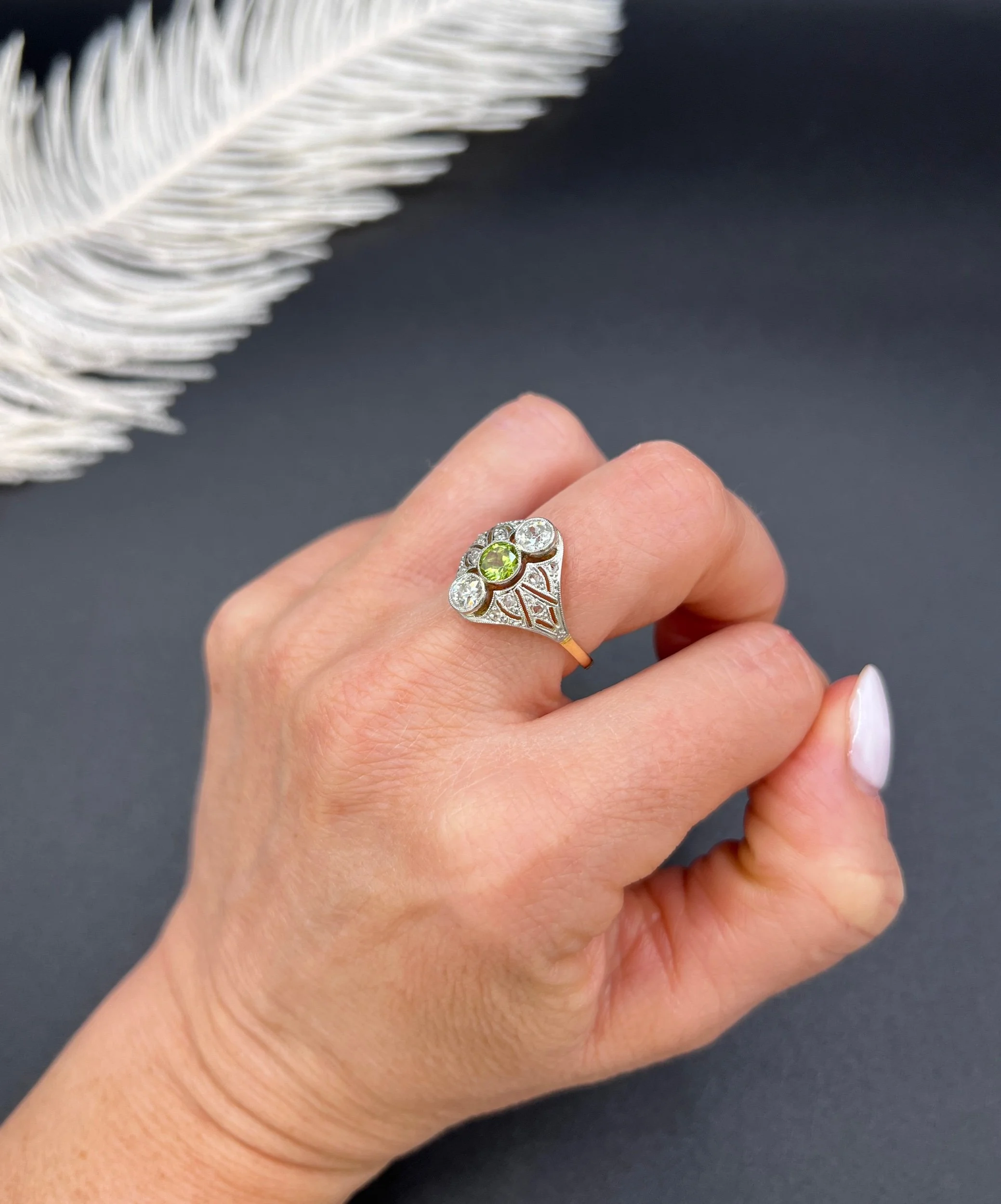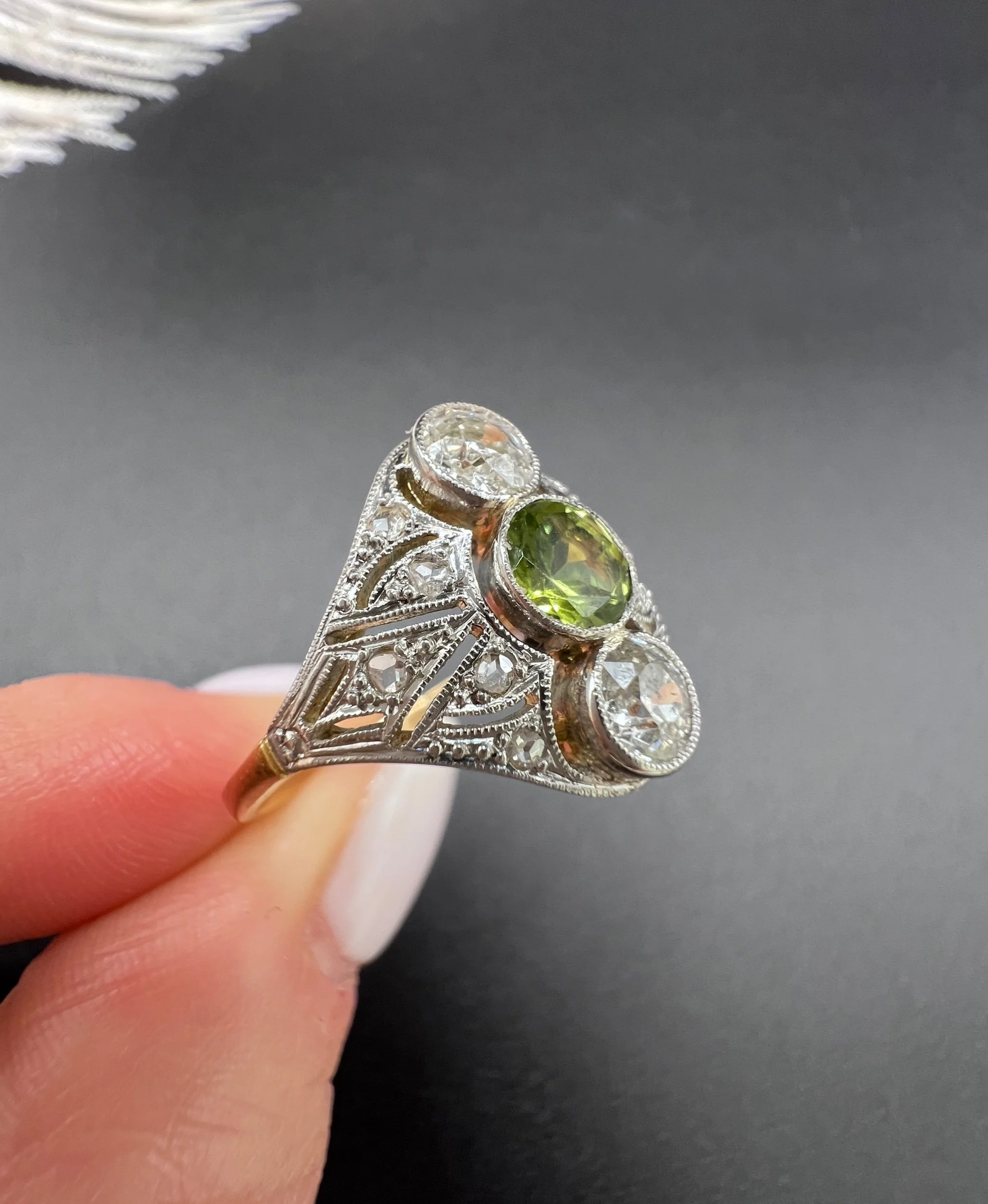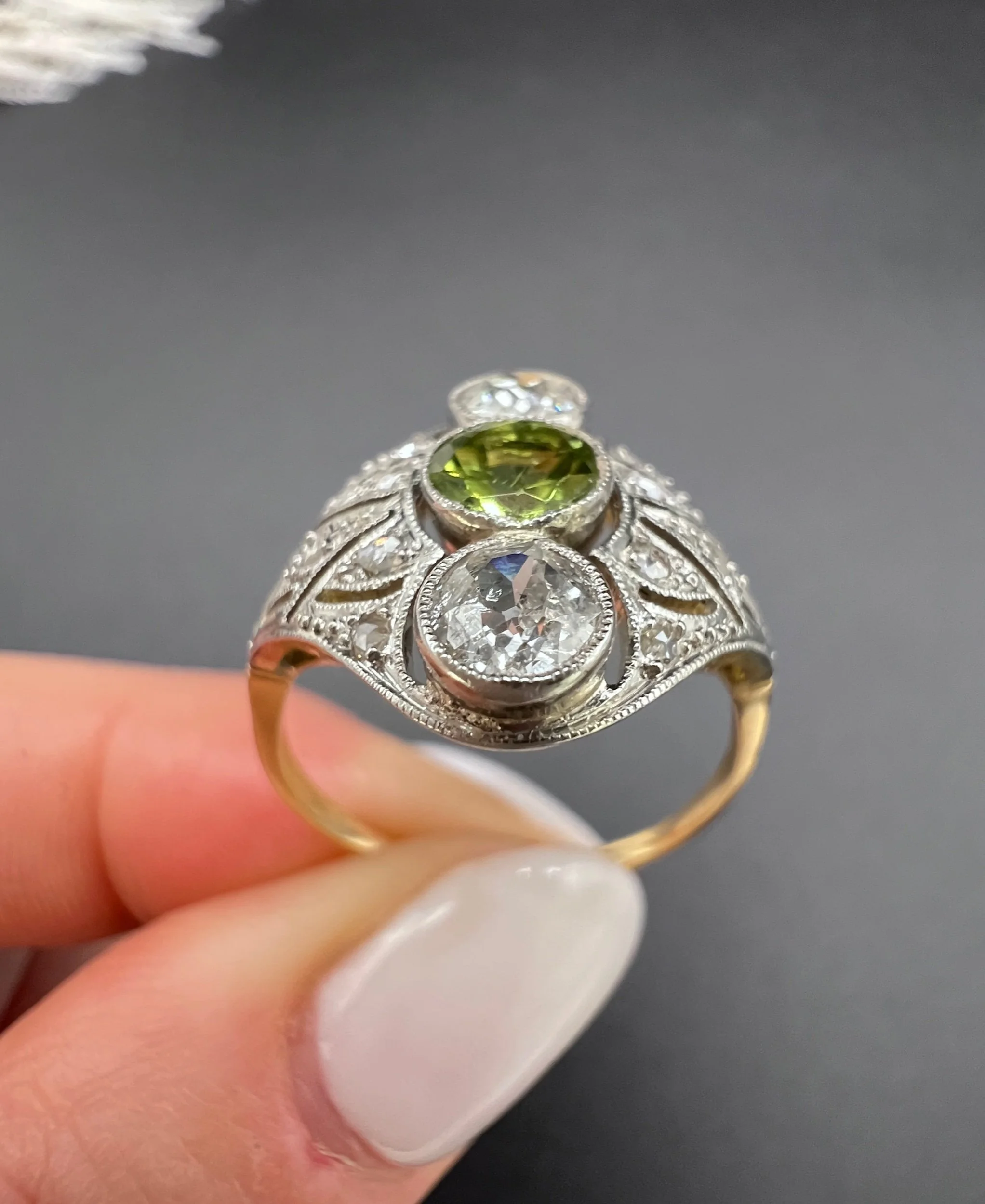 Antique 18ct Yellow Gold & Platinum, Edwardian Peridot and Diamond Ring