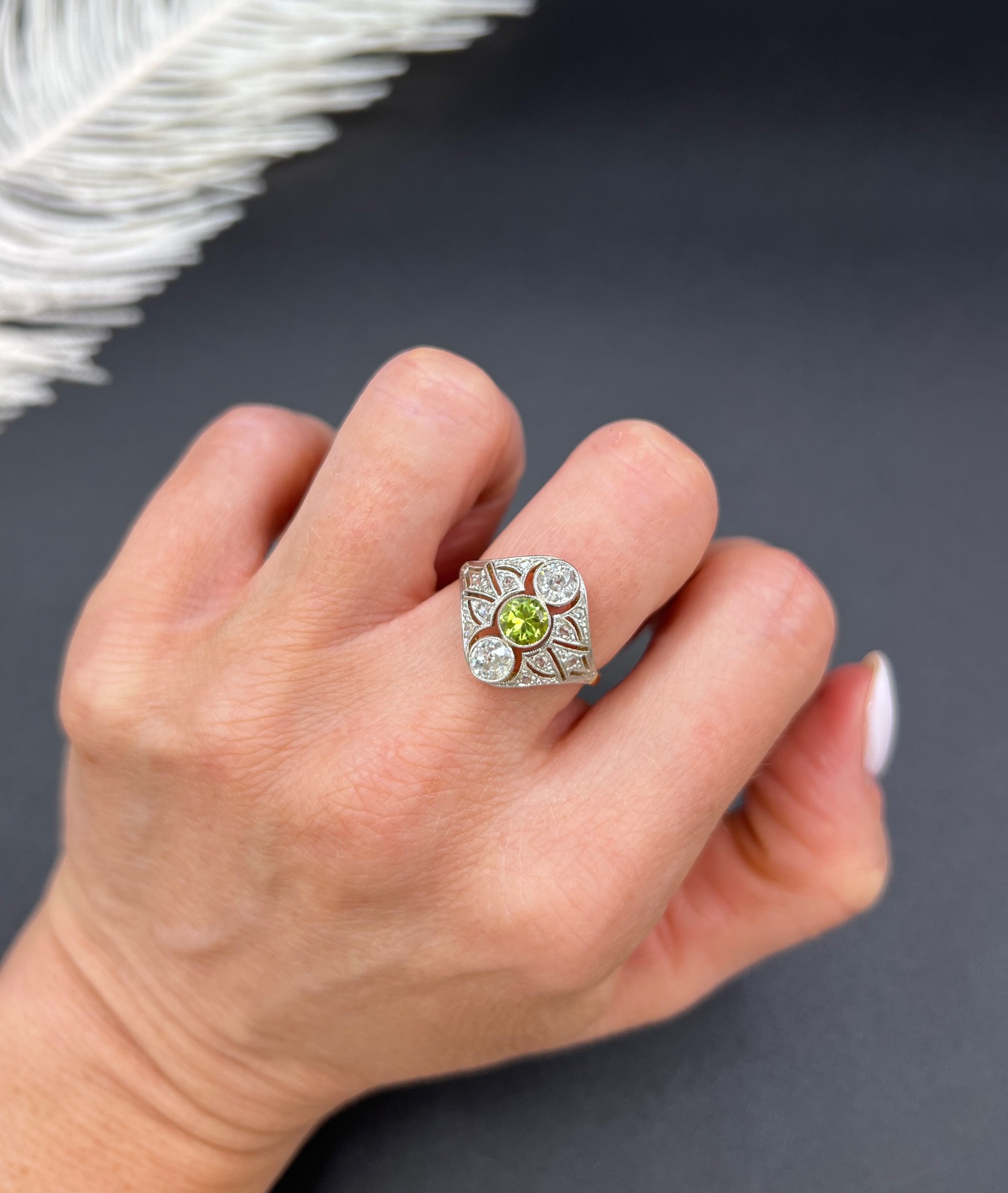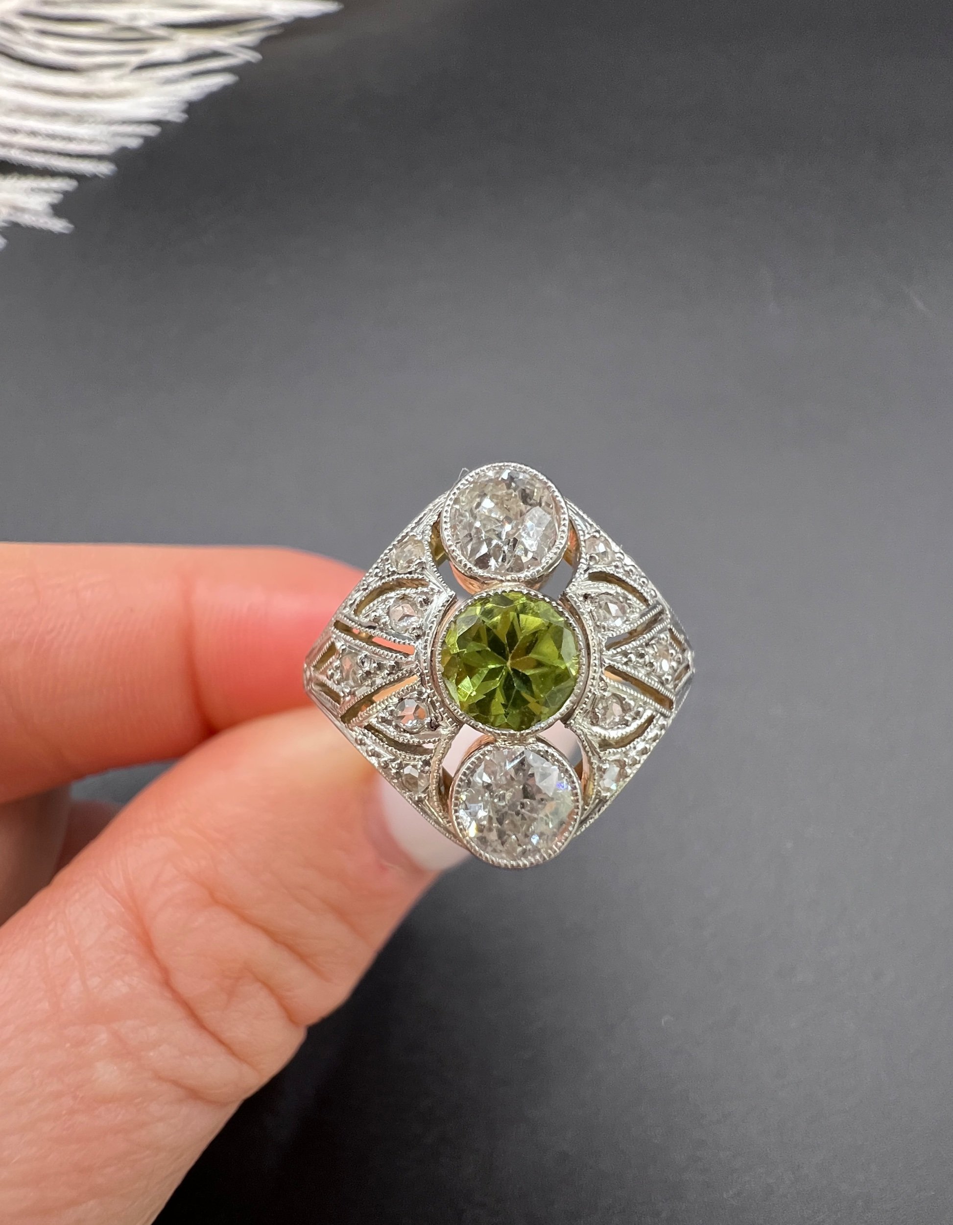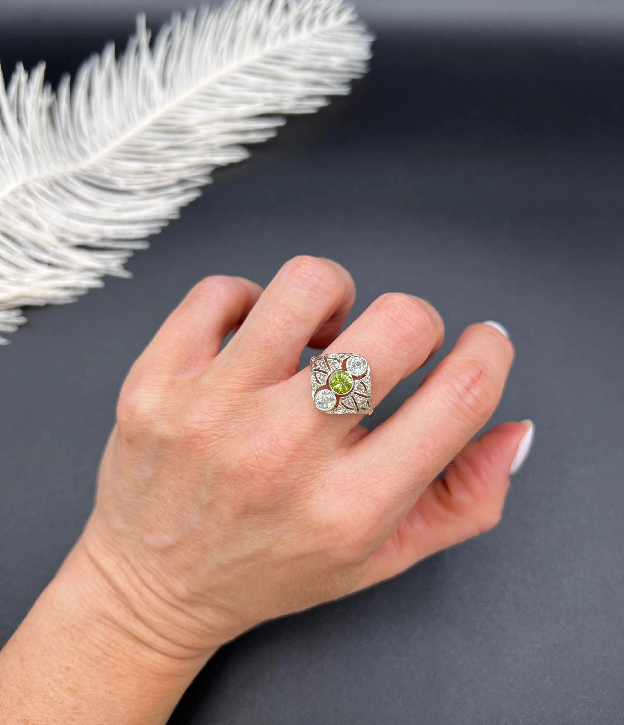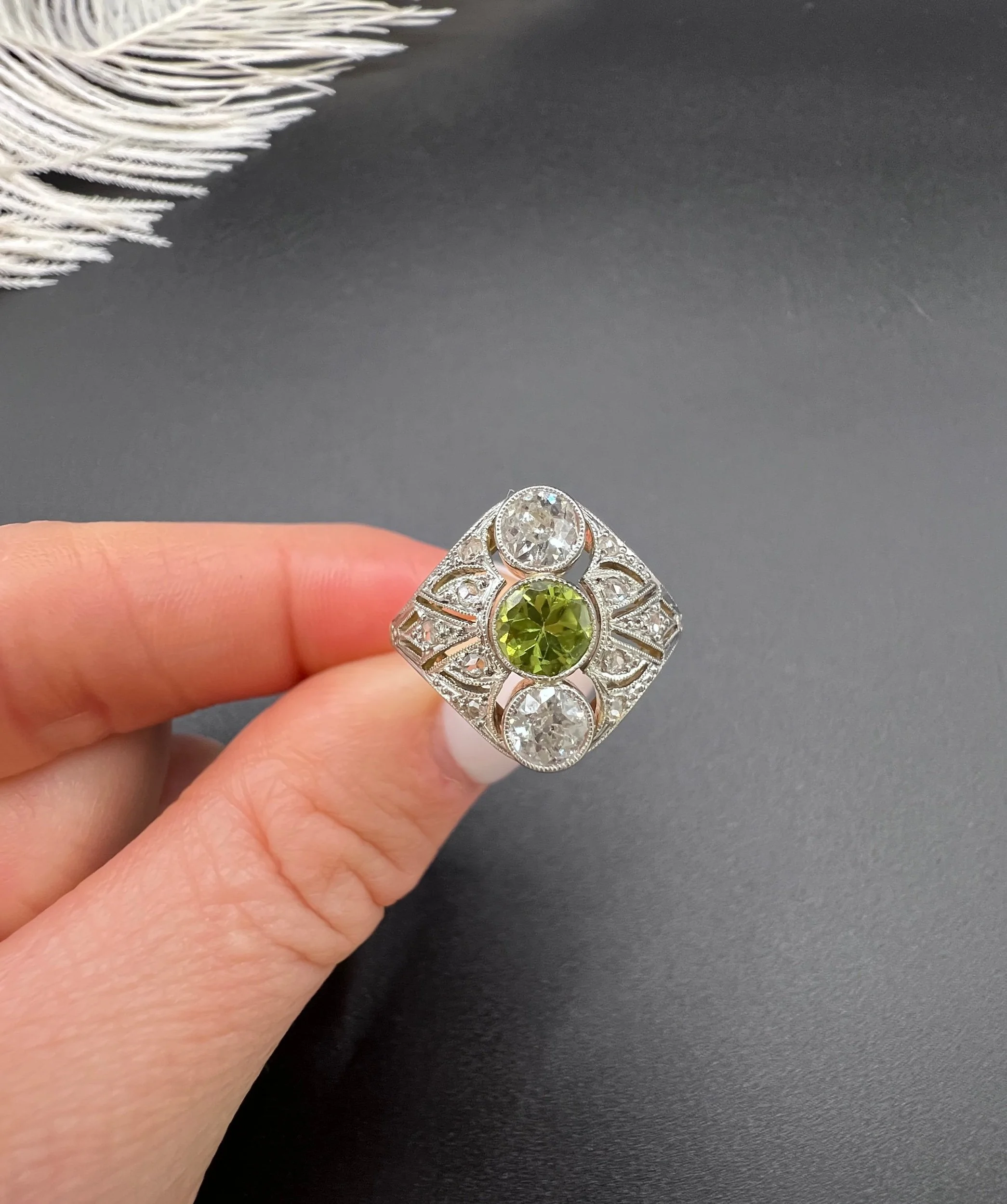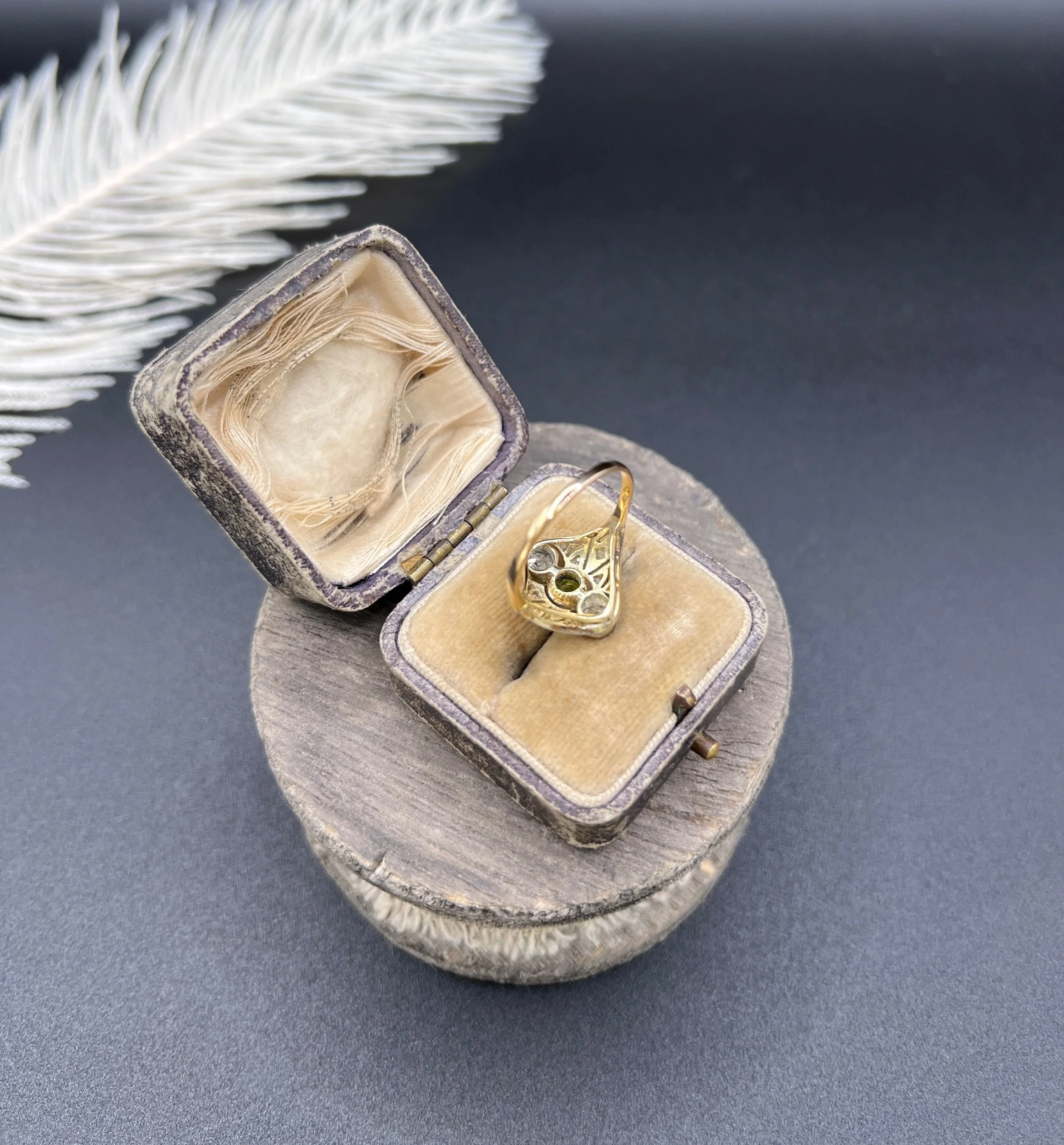 Antique 18ct Yellow Gold & Platinum, Edwardian Peridot and Diamond Ring