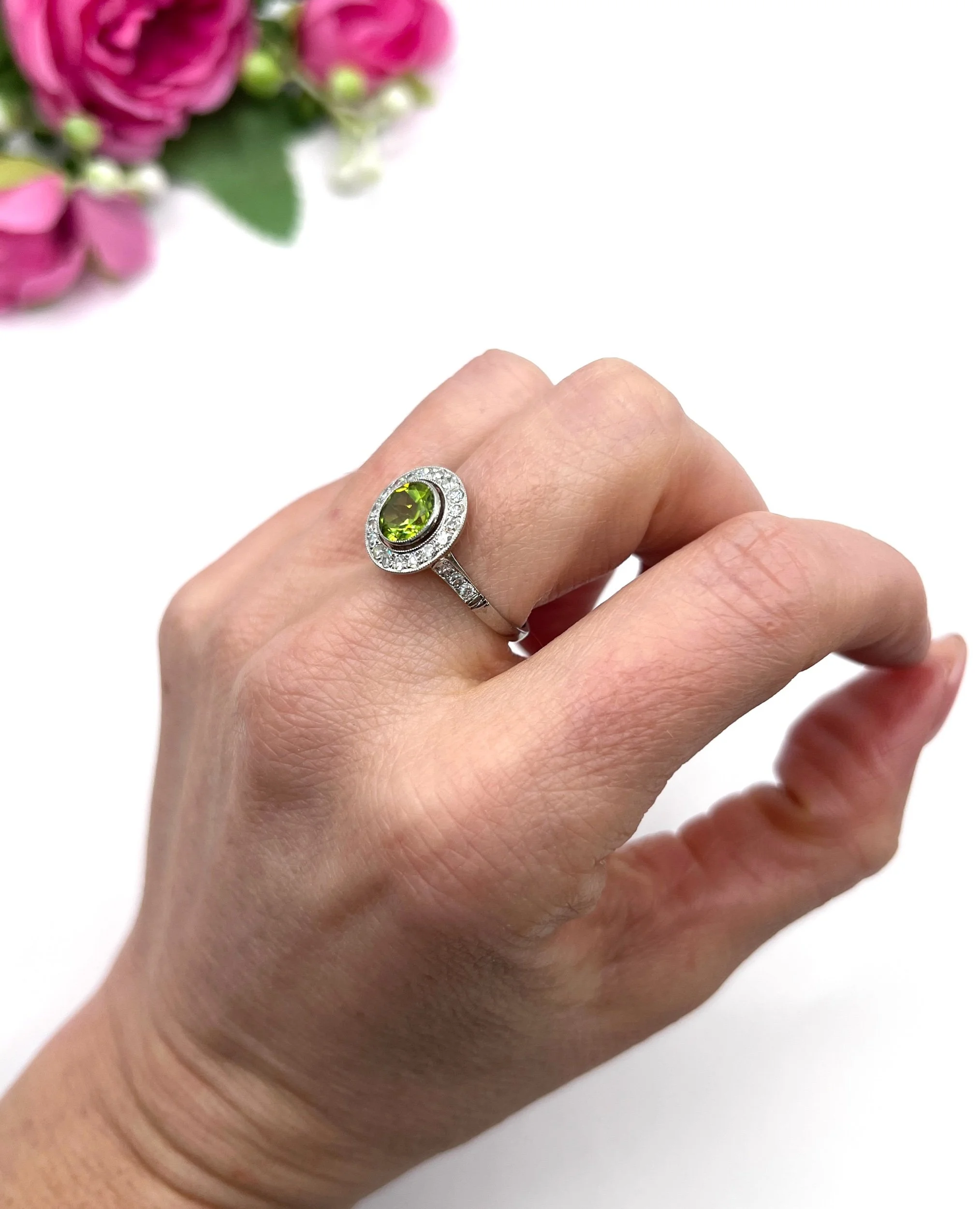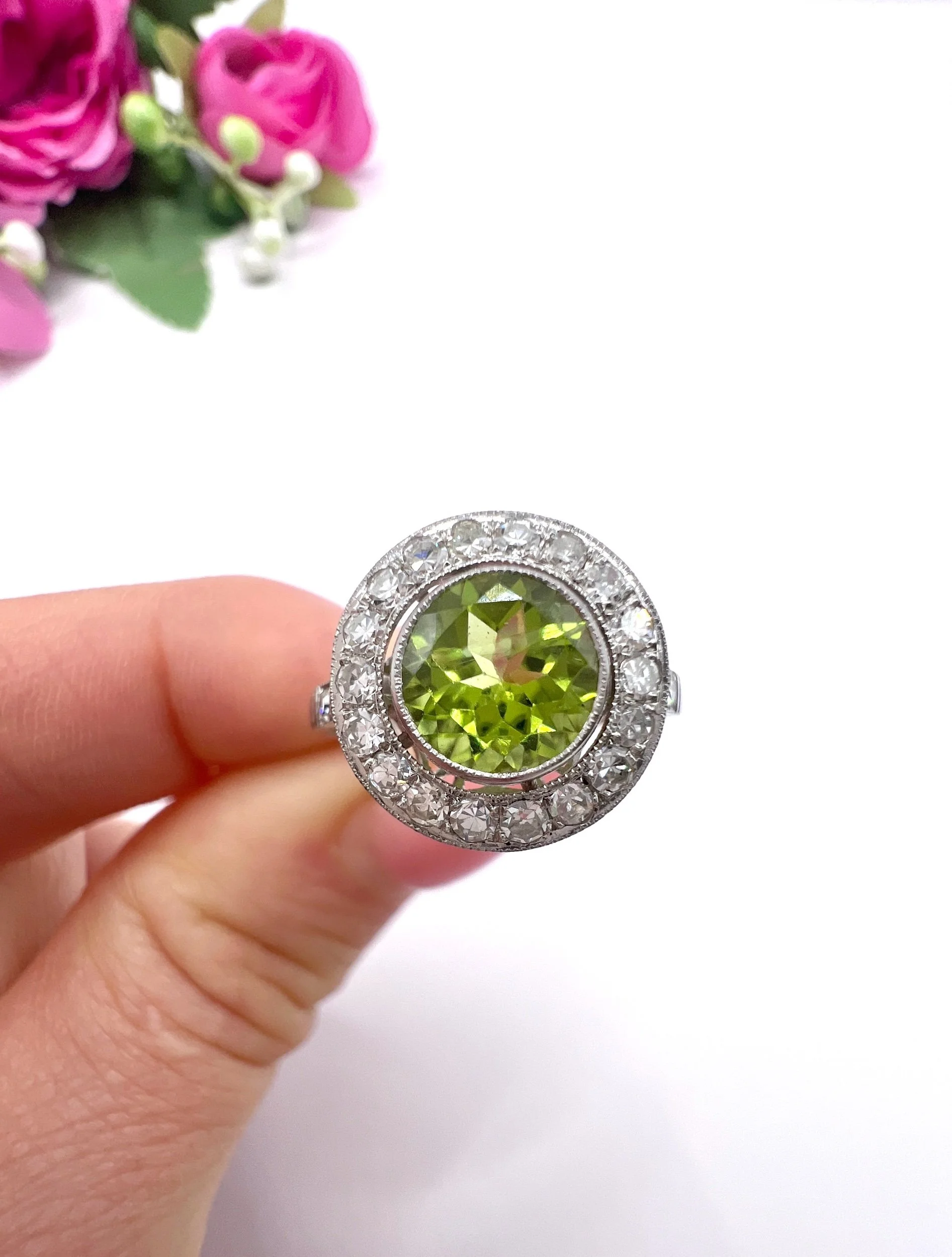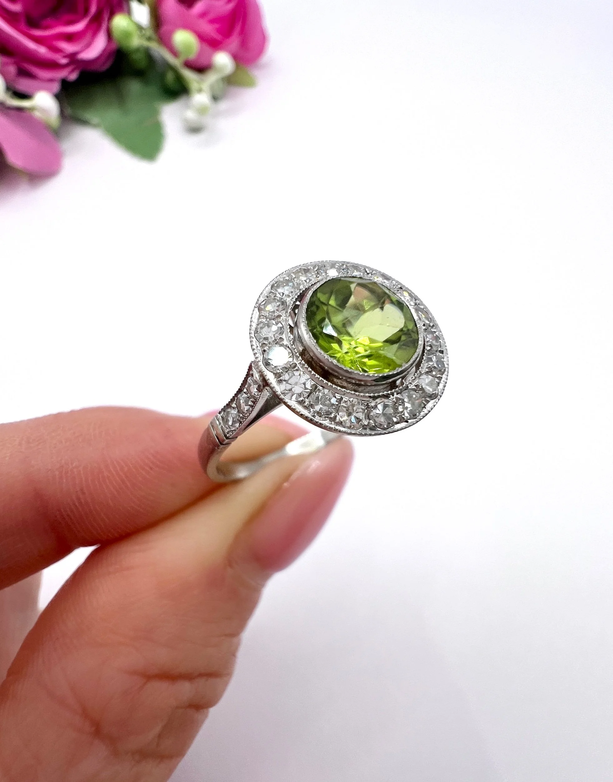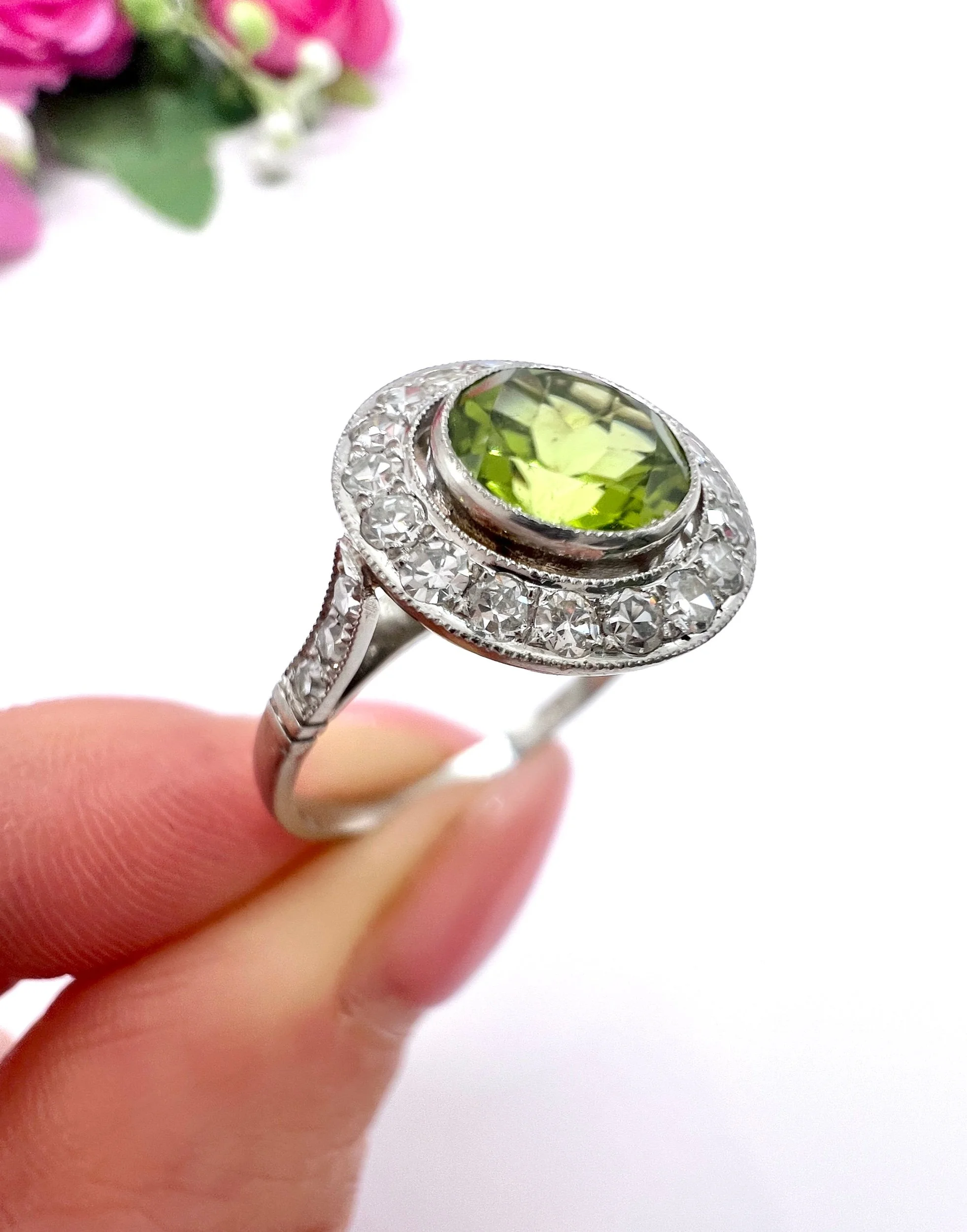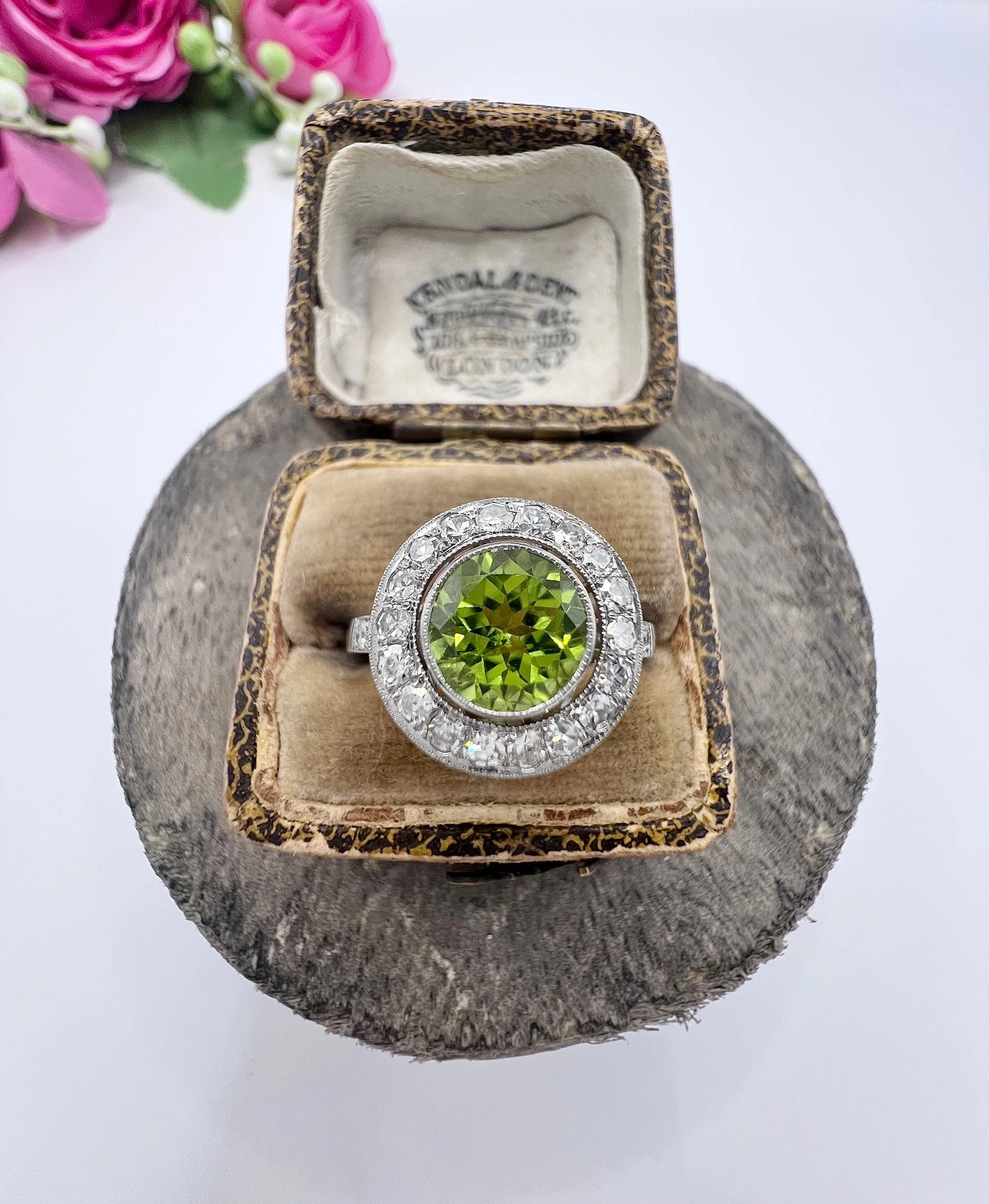 Experience the elegance of a bygone era with this stunning Art Nouveau statement ring. It features an exquisite three-stone design that beautifully captures the artistic flair of the period.