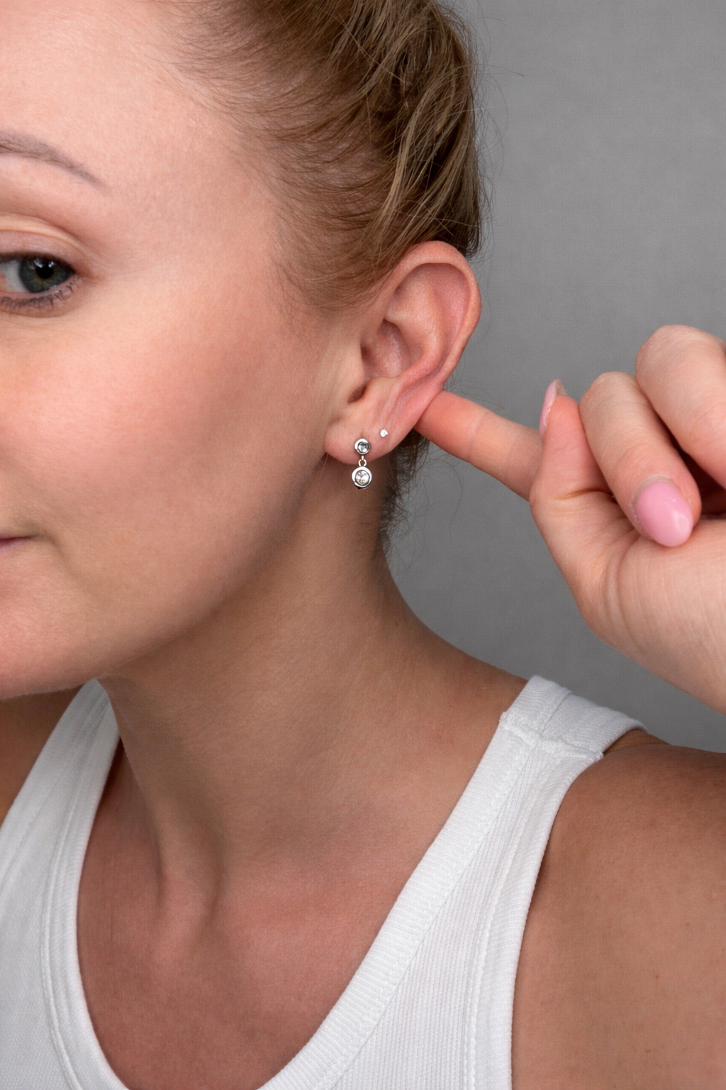 The earrings measure approximately 16.4mm in length and 6.8mm in width (bottom setting diameter)