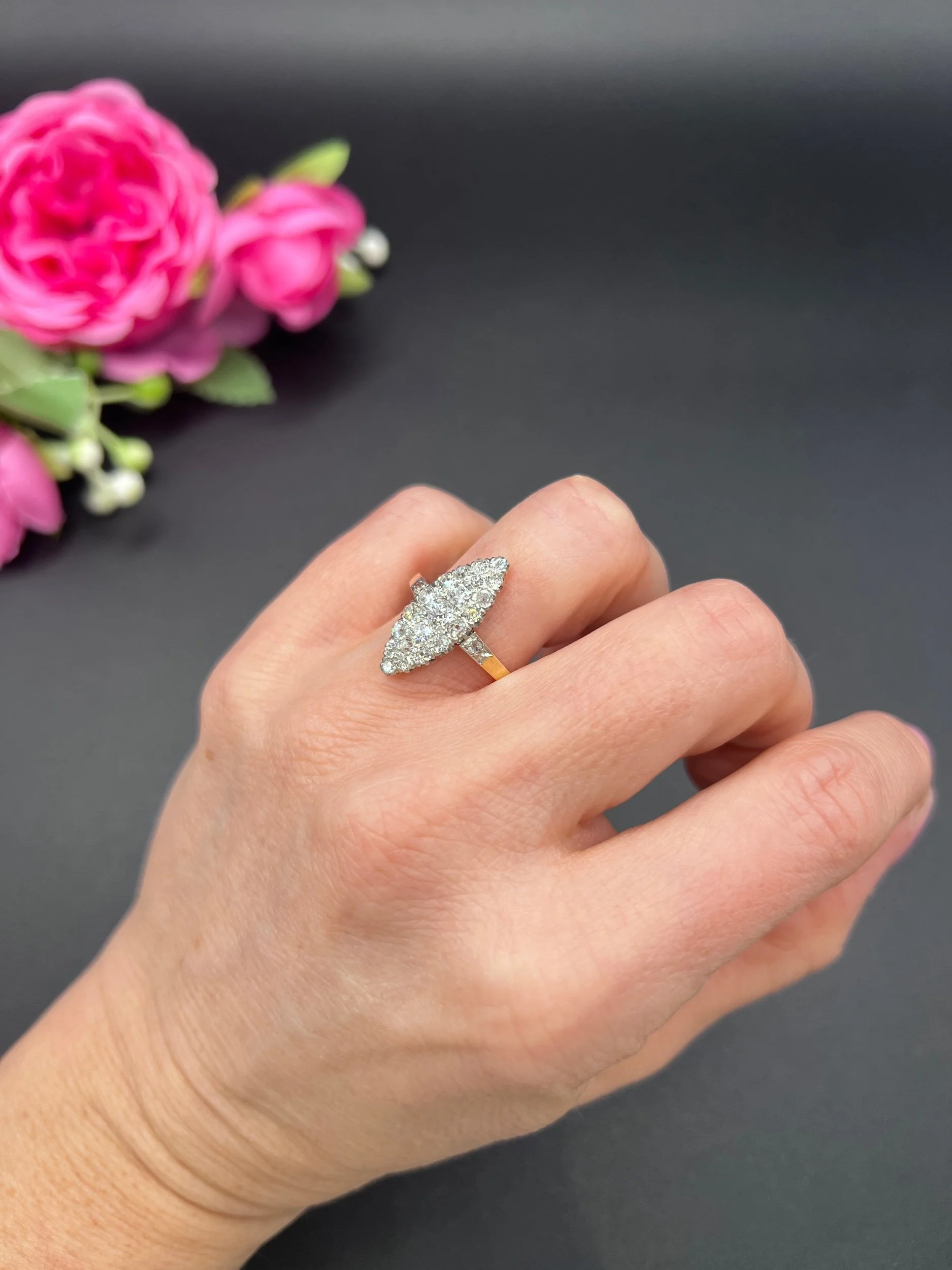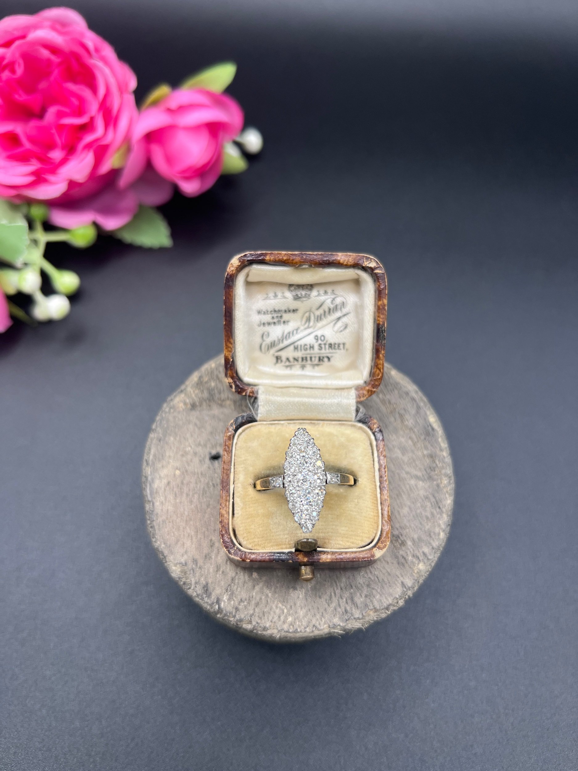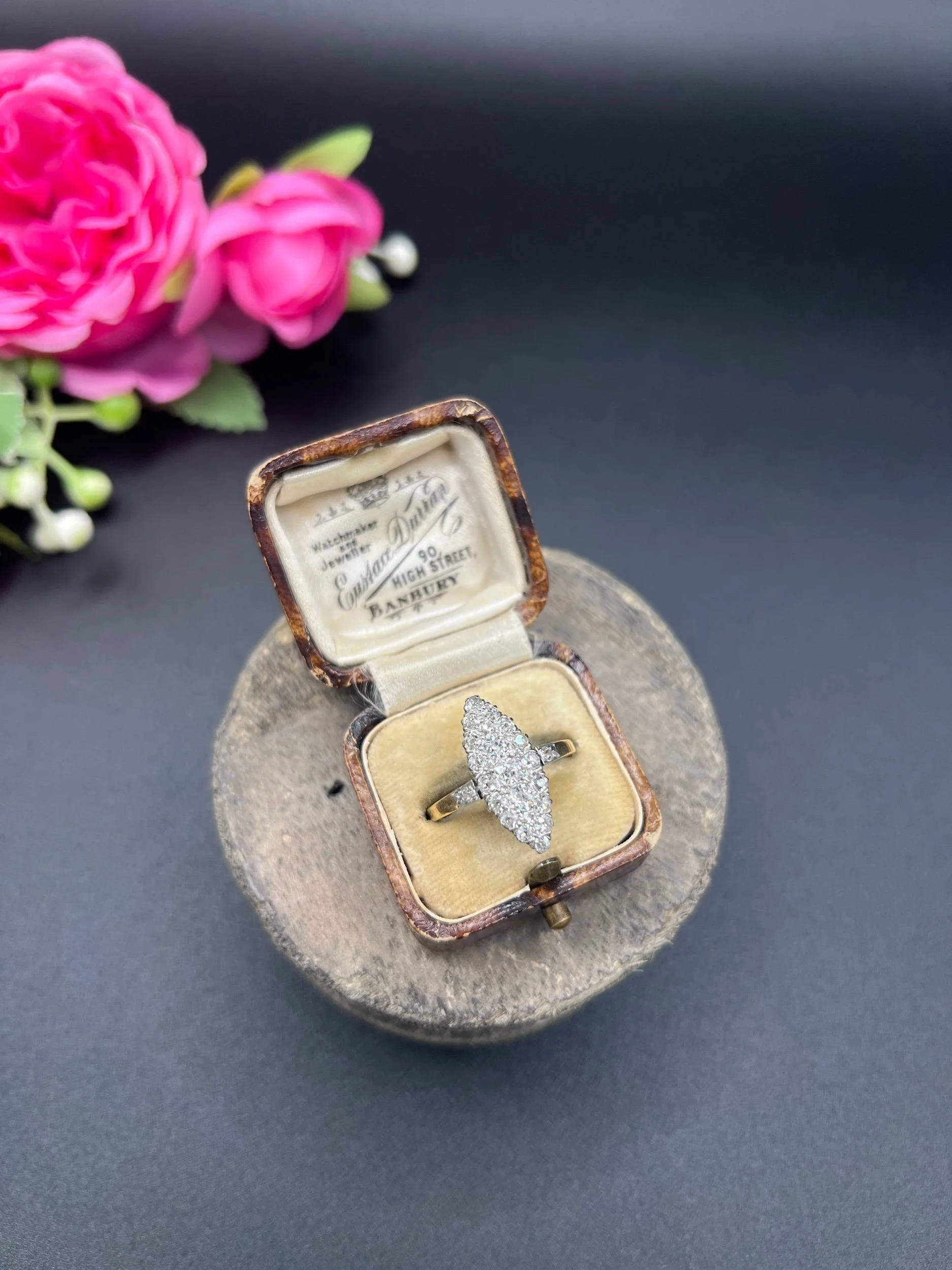 Antique 18ct Yellow Gold French Stamped, Edwardian Diamond Marquise Ring