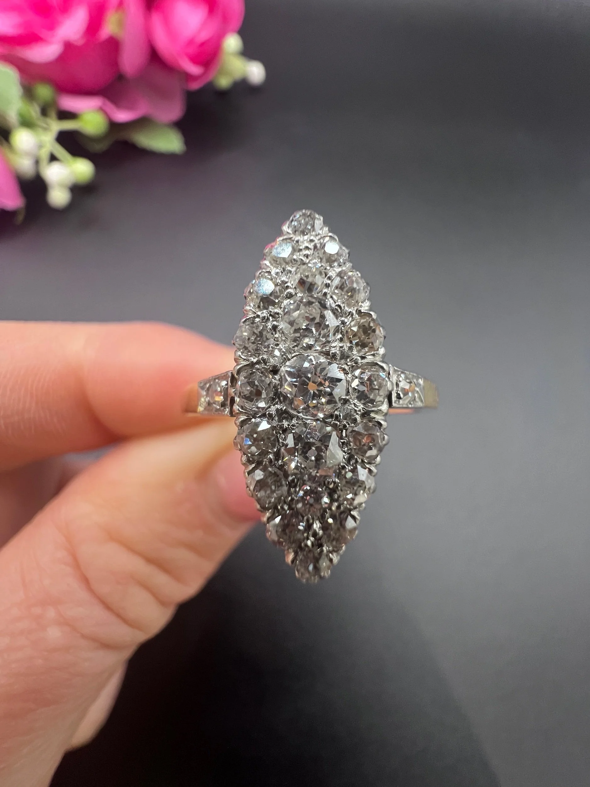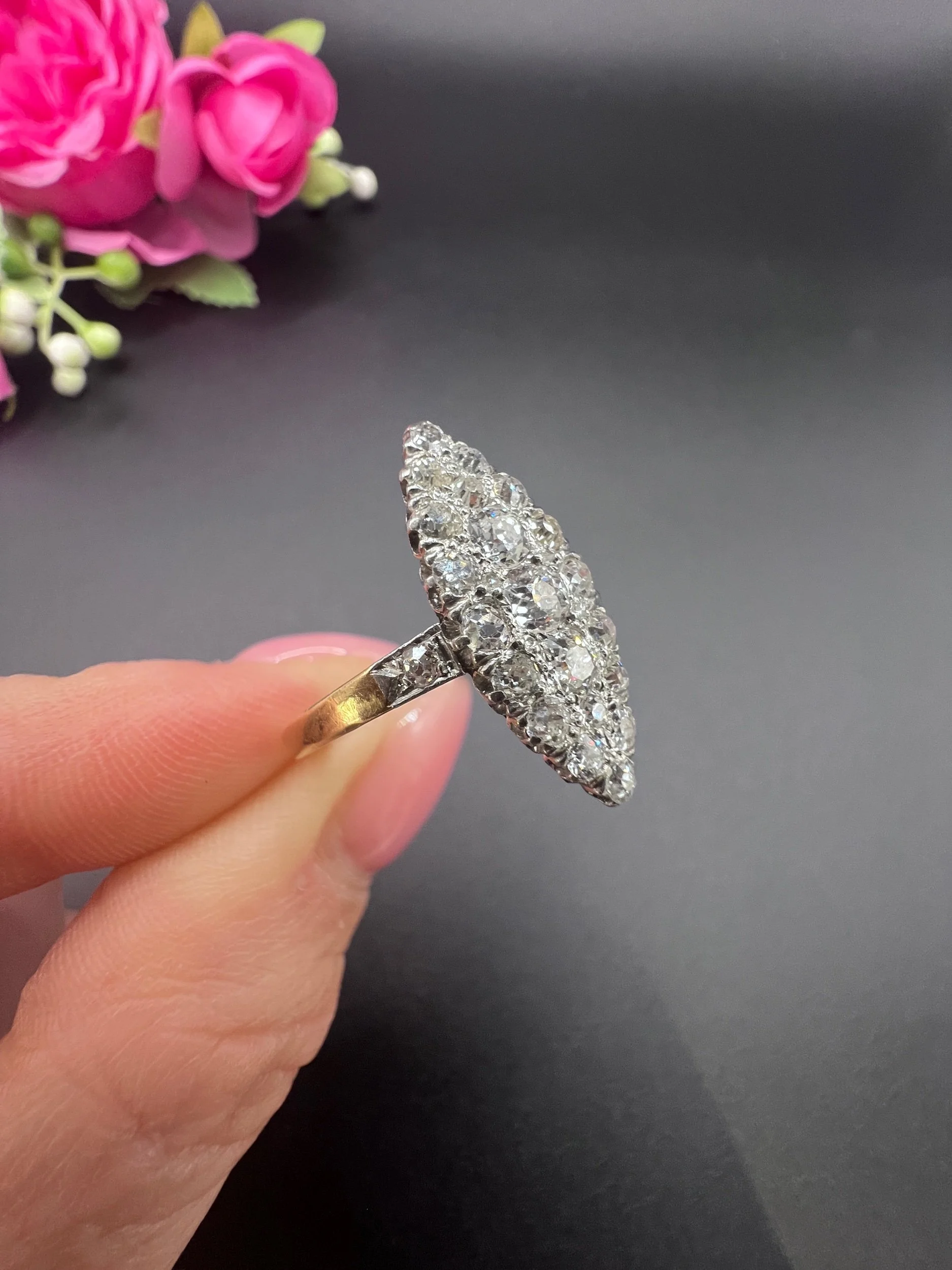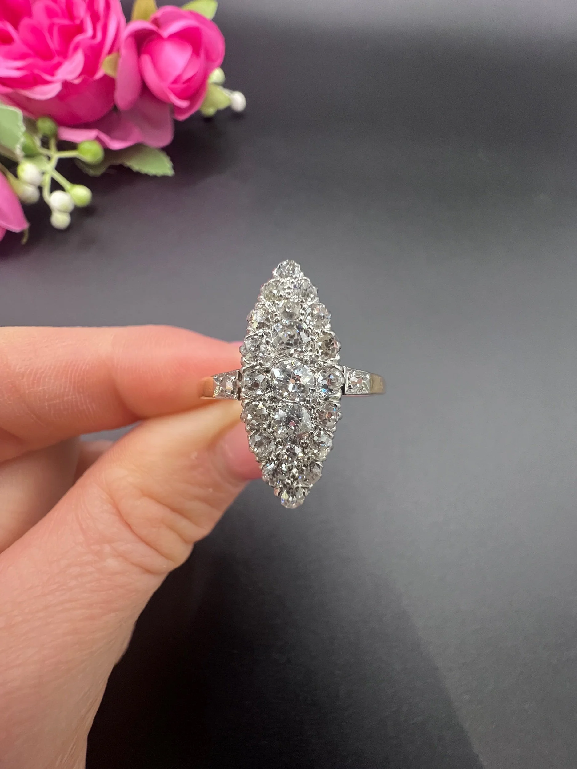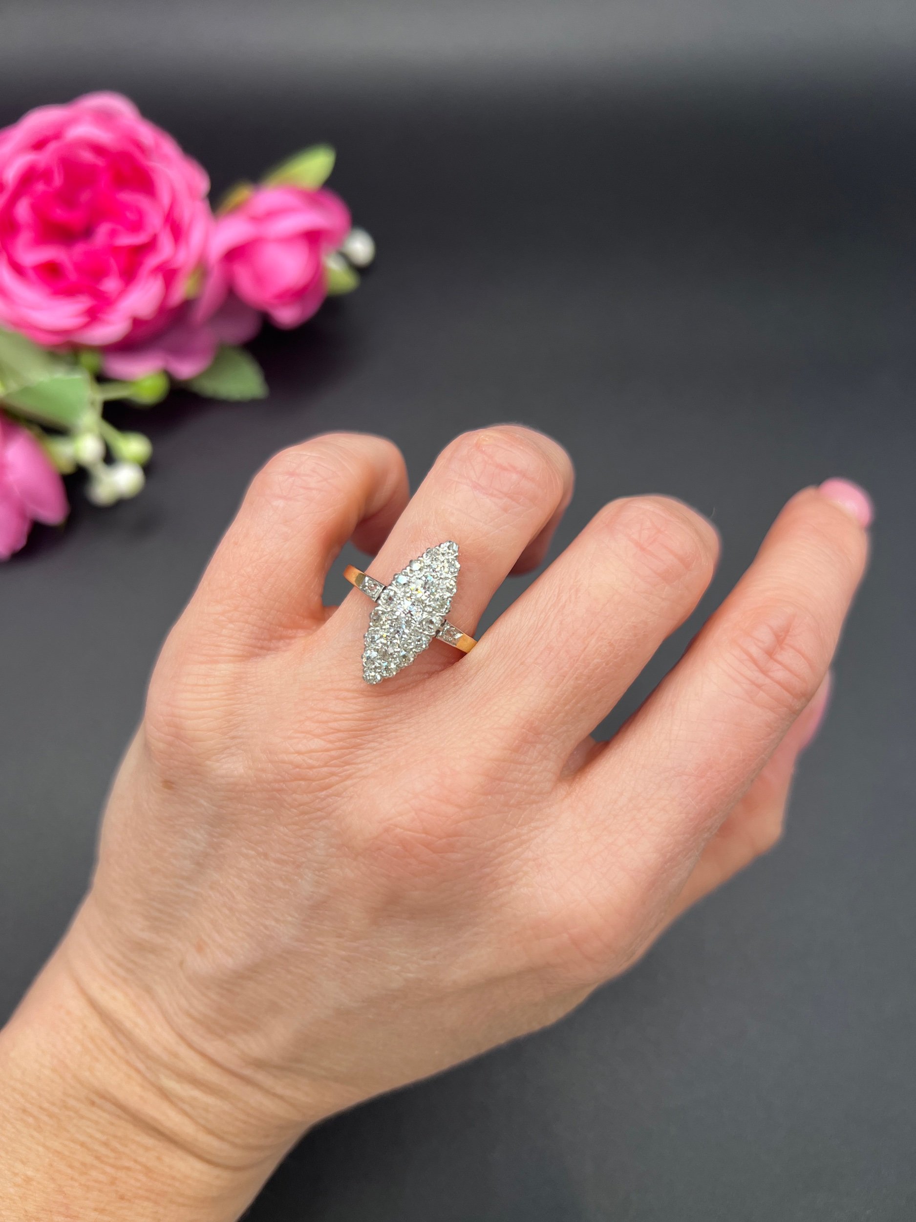 Antique 18ct Yellow Gold French Stamped, Edwardian Diamond Marquise Ring