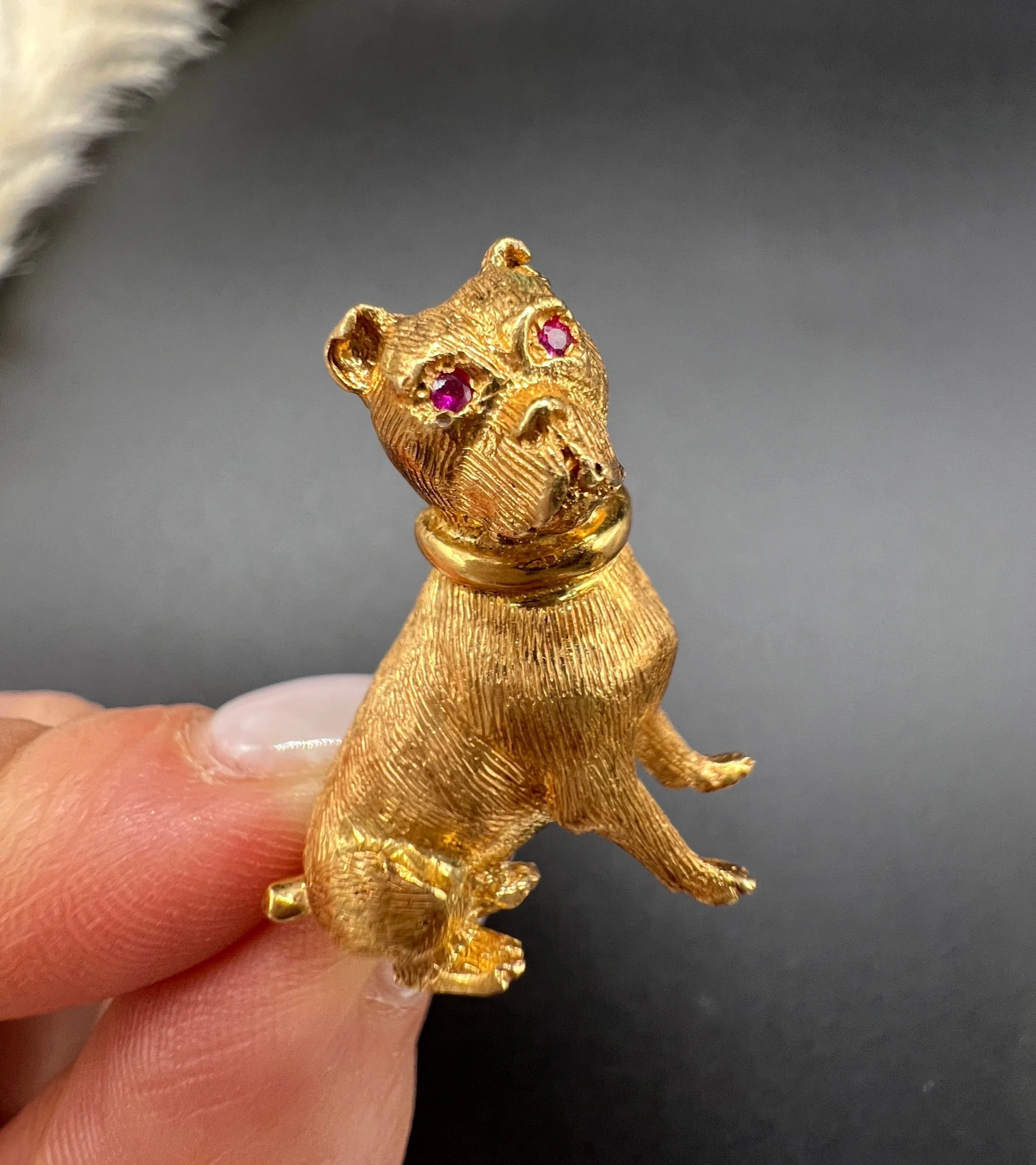Elevate your accessory collection with this exquisite 1980s cat brooch, meticulously crafted from 18ct yellow gold. This beautifully detailed piece showcases a playful feline design, complete with intricate features that exude character and elegance.