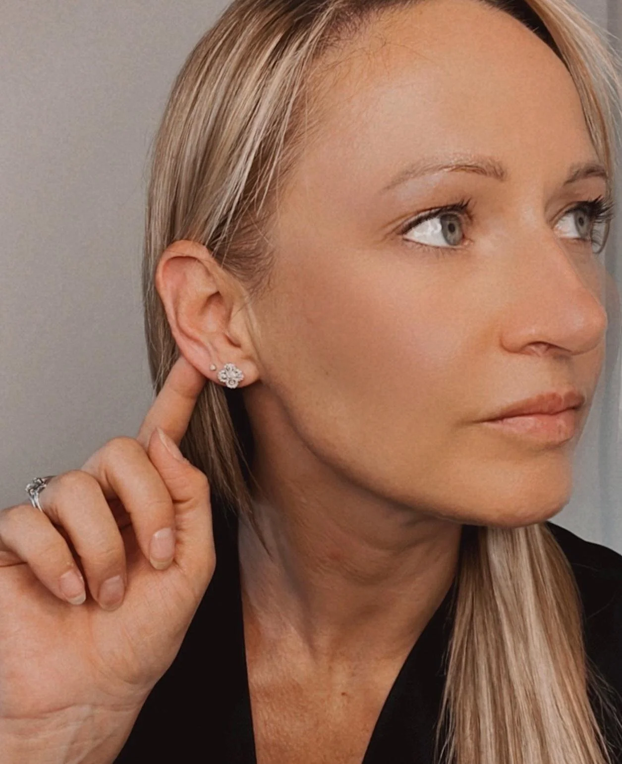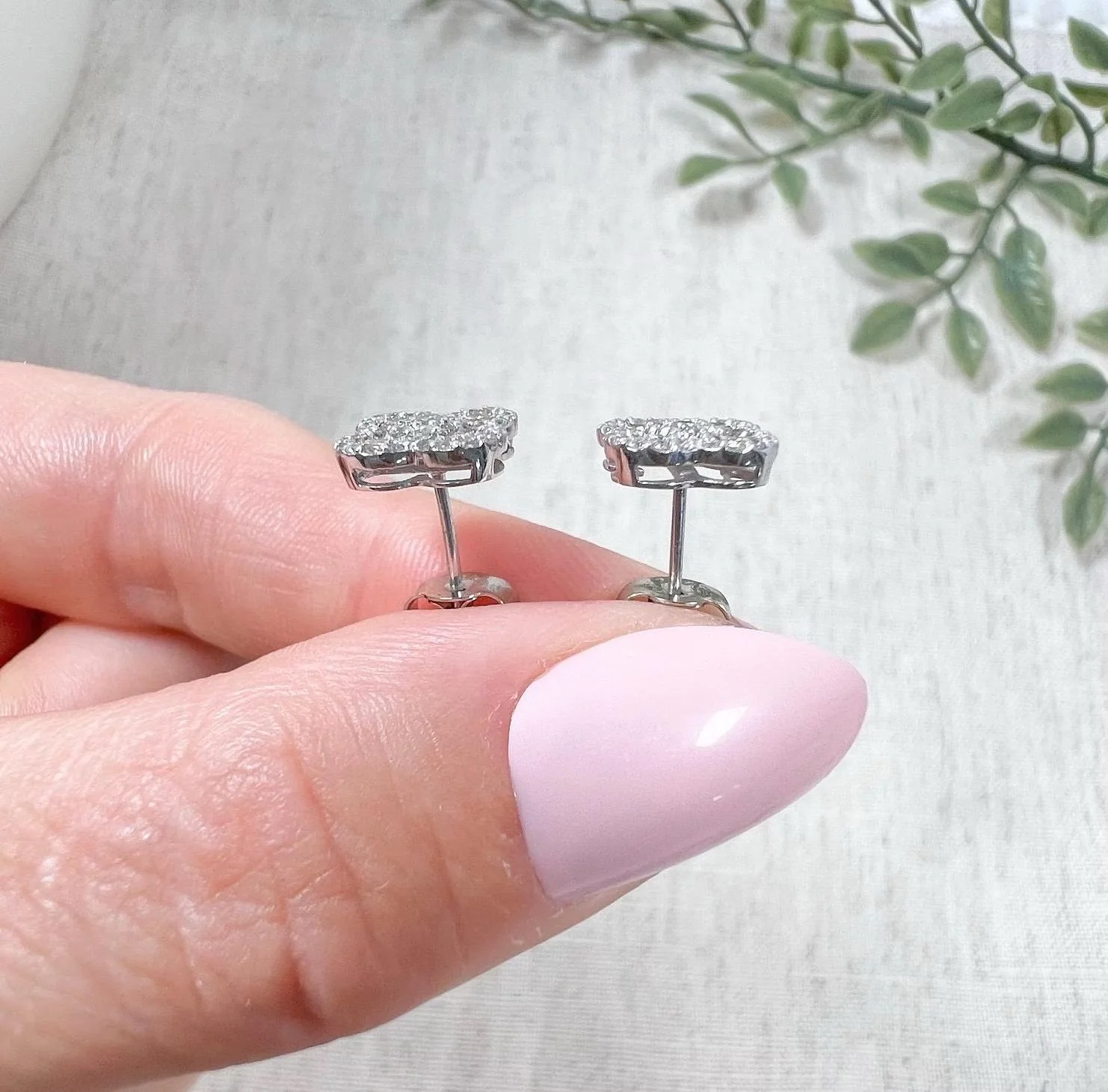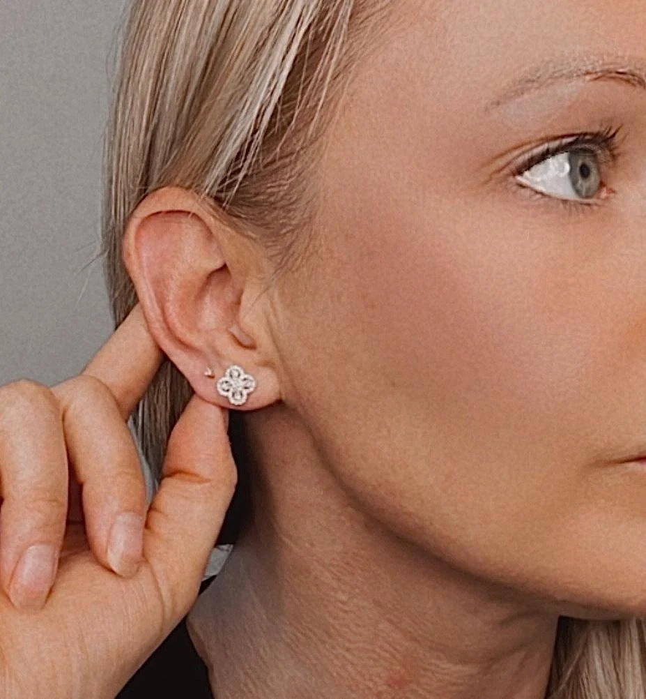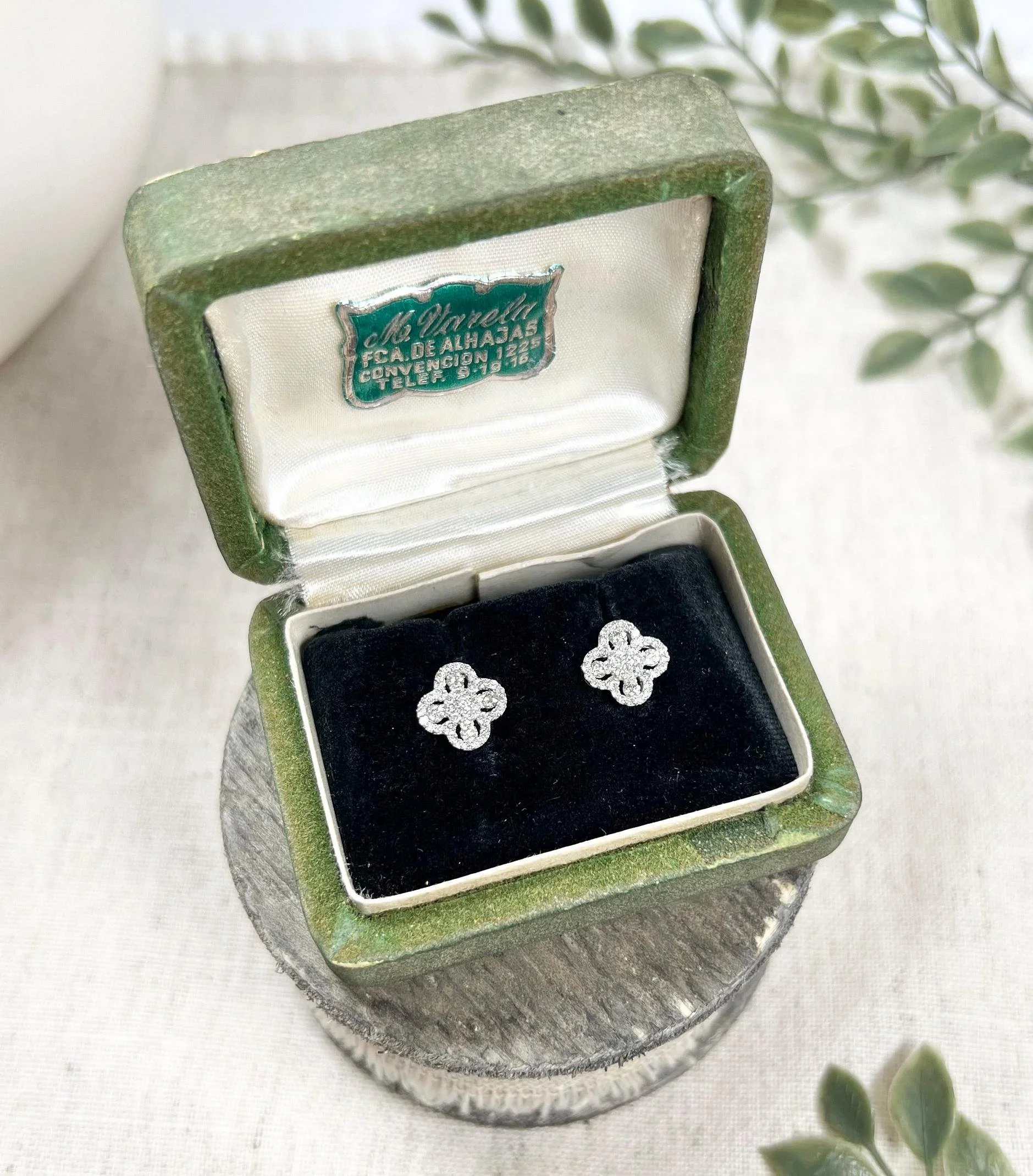 Pretty, preloved diamond stud earrings. Set with natural, diamonds in a pretty clover shaped, white gold settings.