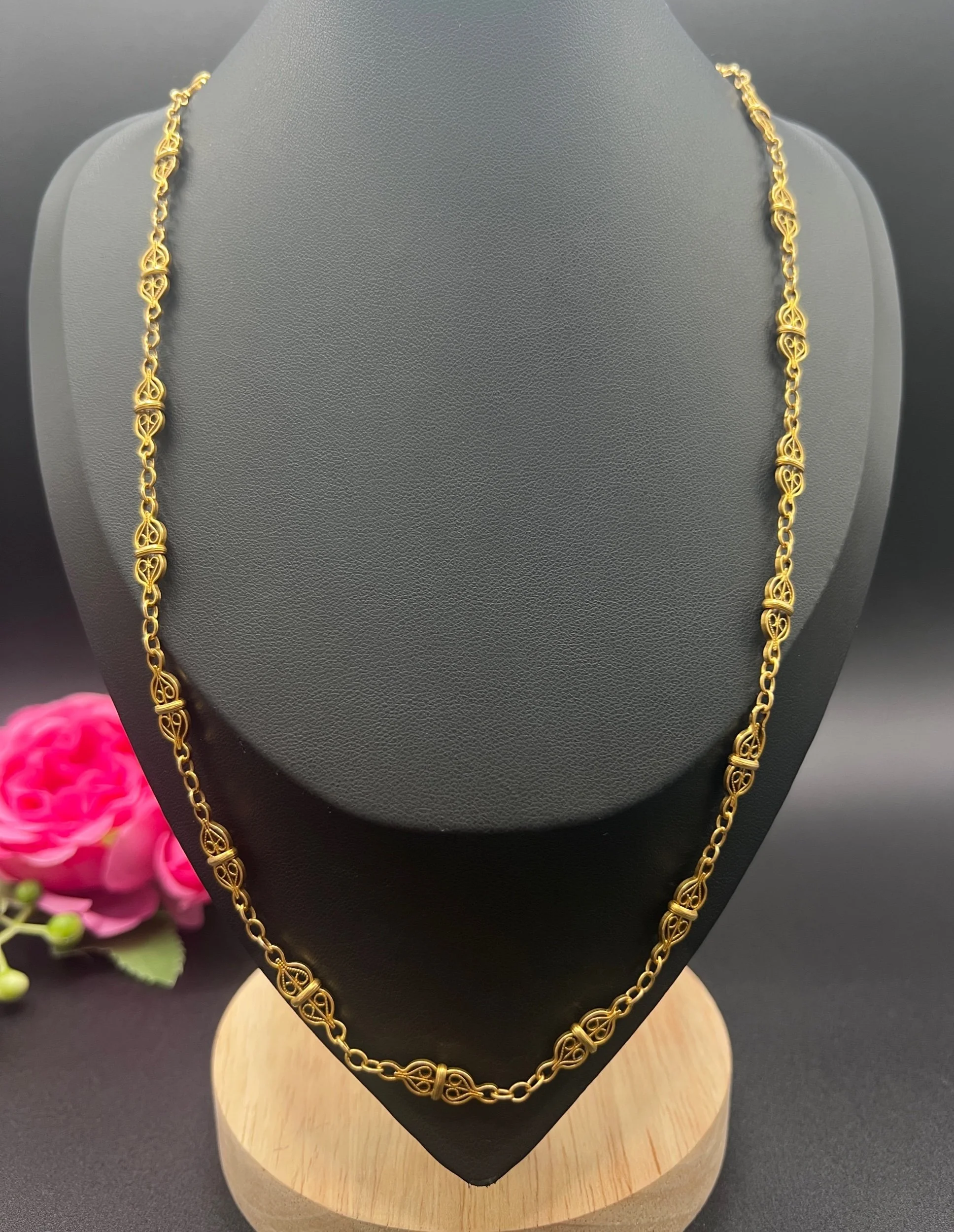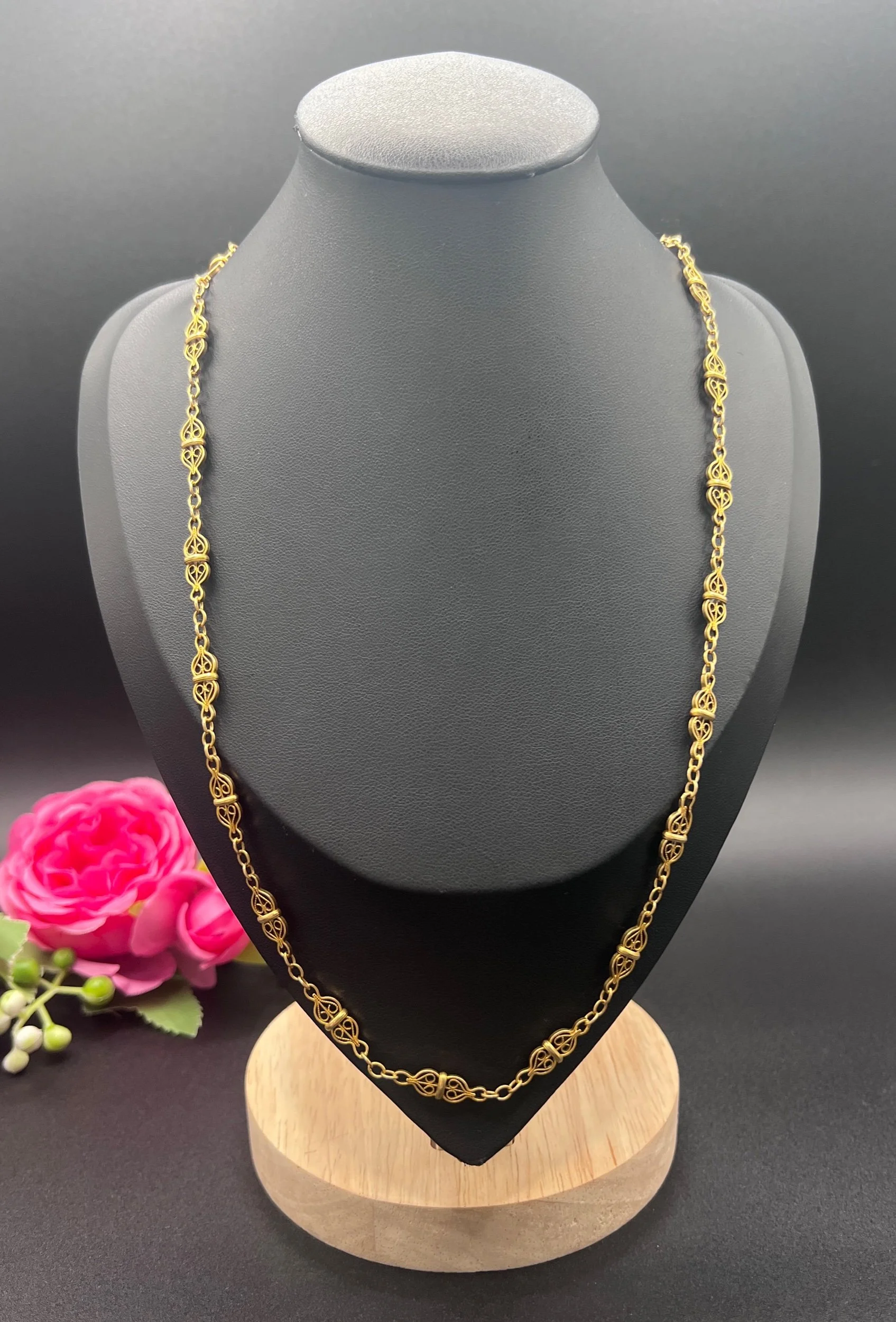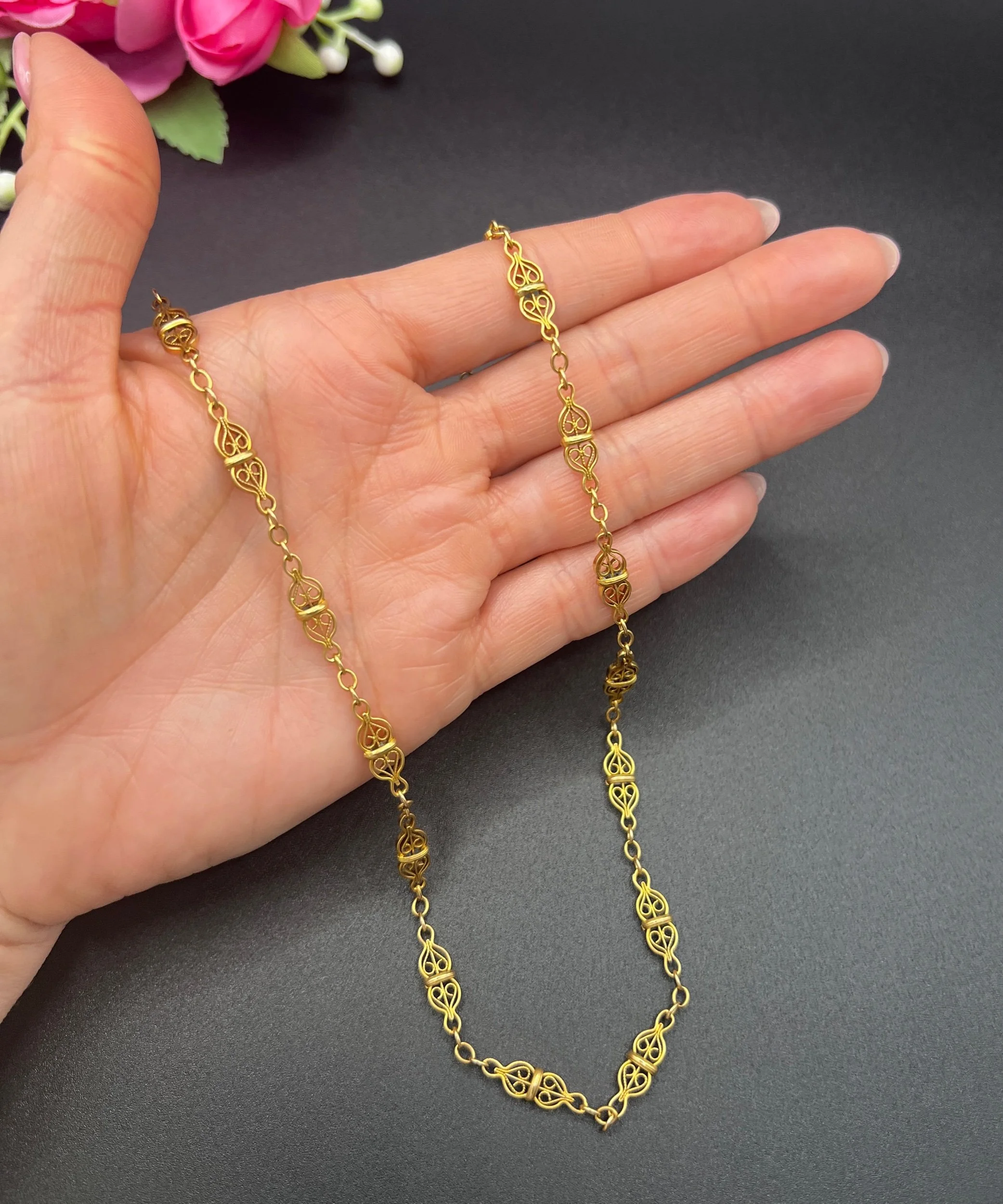 Step back in time with this exquisite 18ct yellow gold chain from the 1920s, a true testament to vintage elegance and craftsmanship. This eye-catching piece features beautifully crafted, fancy links, each adorned with intricate filigree gold work that showcases the artistry of the era.