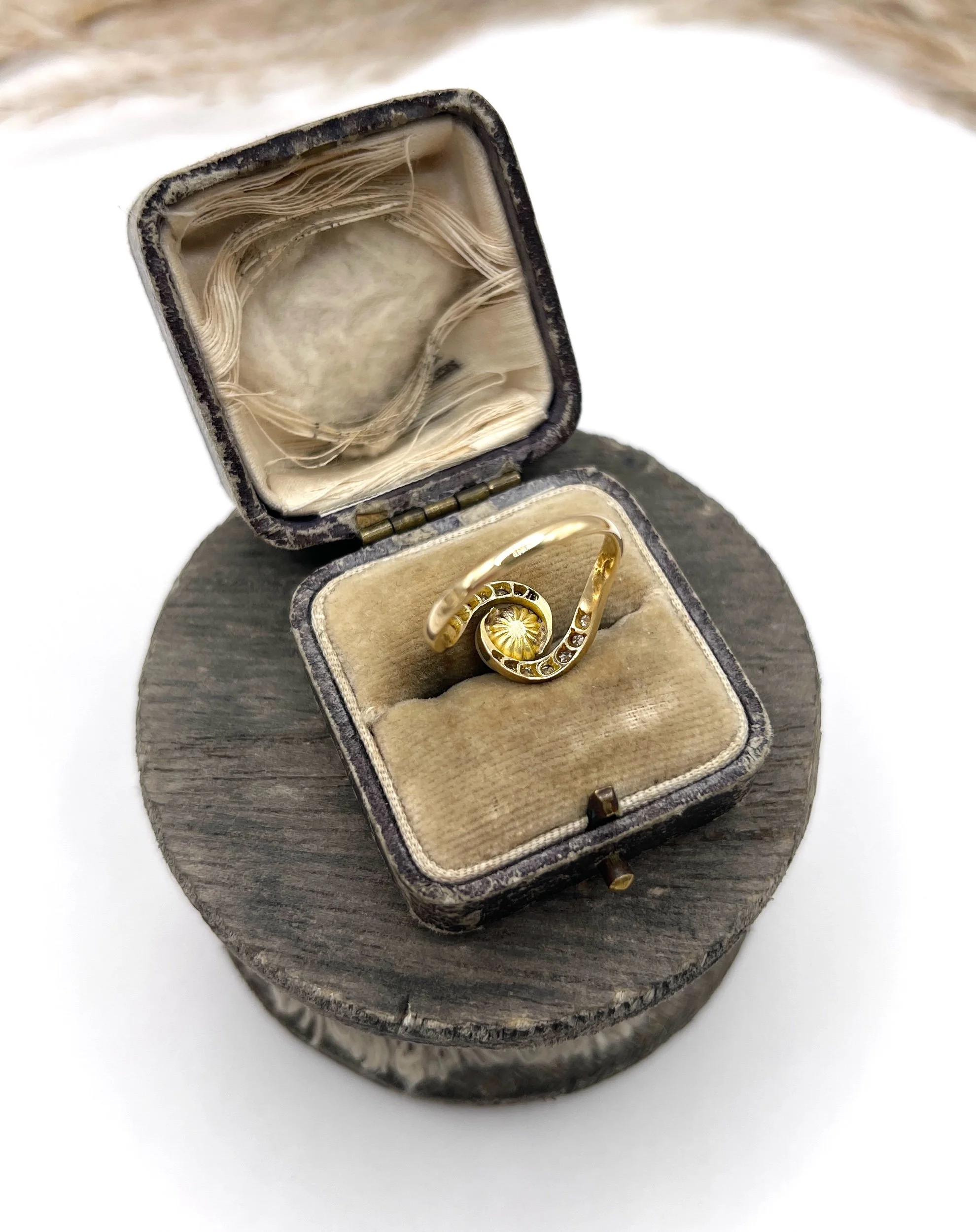 This ring is a timeless treasure, showcasing the intricate craftsmanship and attention to detail typical of the Edwardian period. Made from 18ct gold, it exudes warmth and sophistication, making it a perfect addition to any jewellery collection, stamped with both the French owl and bearded man marks. Its unique design ensures that it stands out, whether worn for a special occasion or as an everyday statement piece.