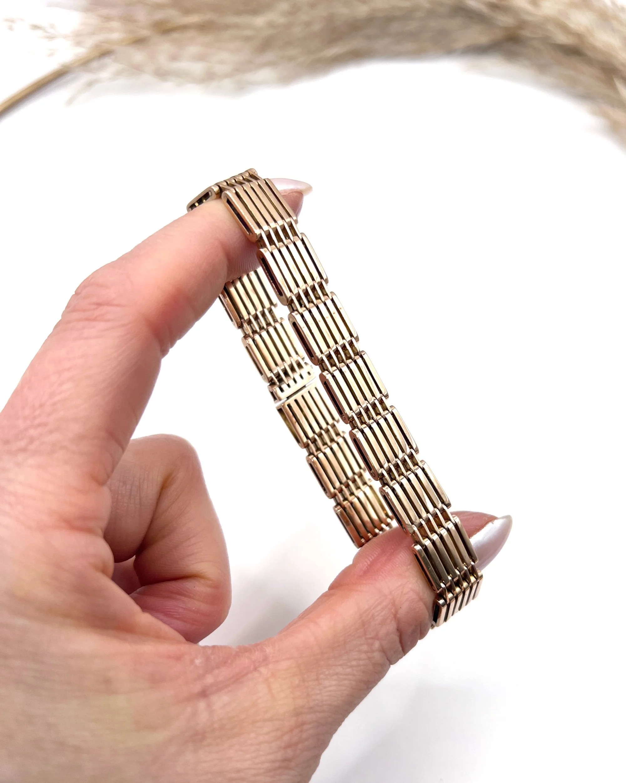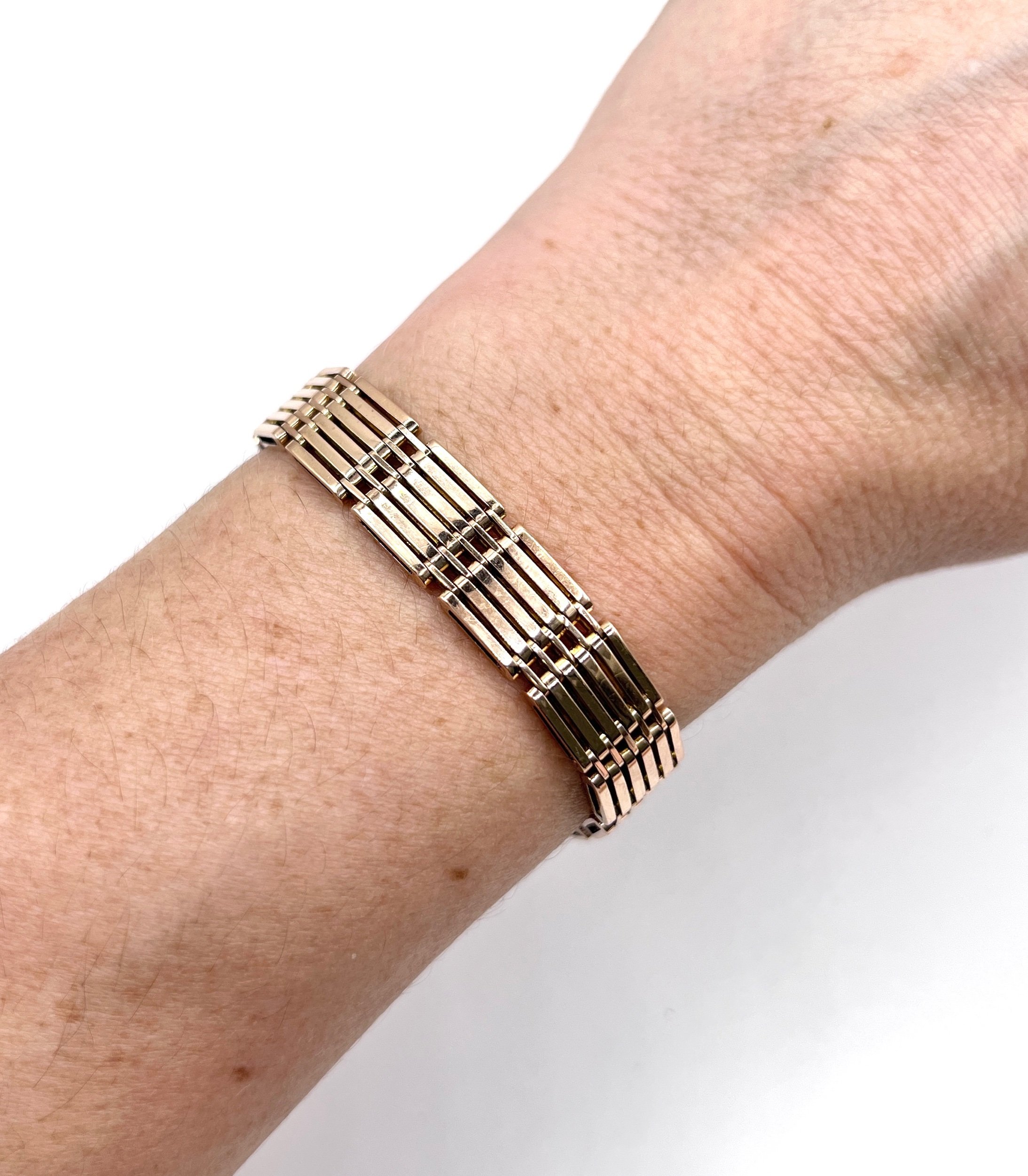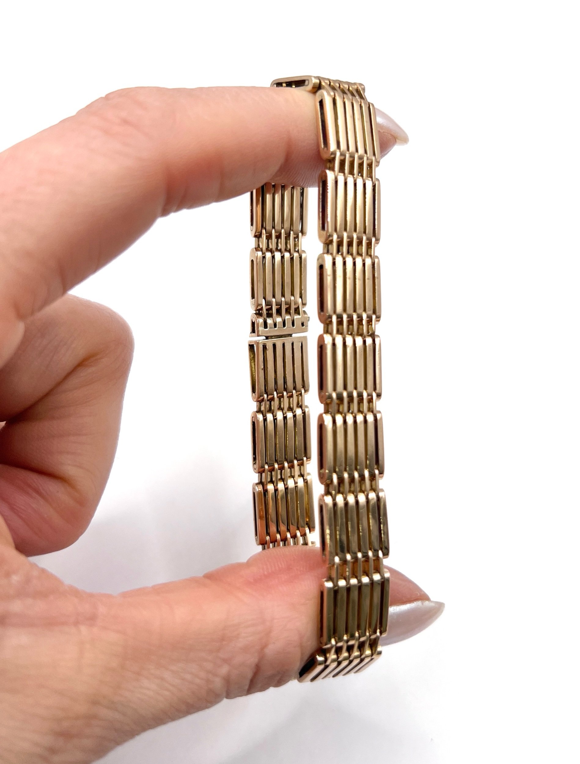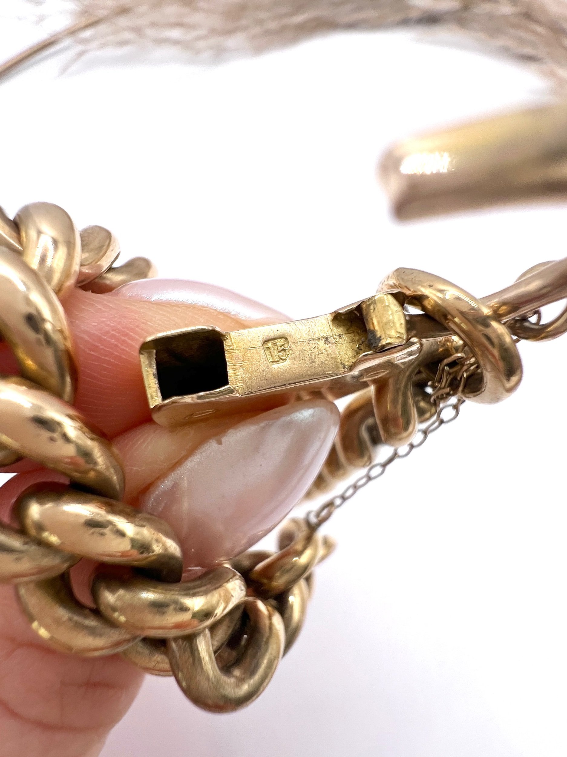 The bracelet fastens securely with its original integral clasp, complemented by a figure-8 safety catch for additional peace of mind when worn.