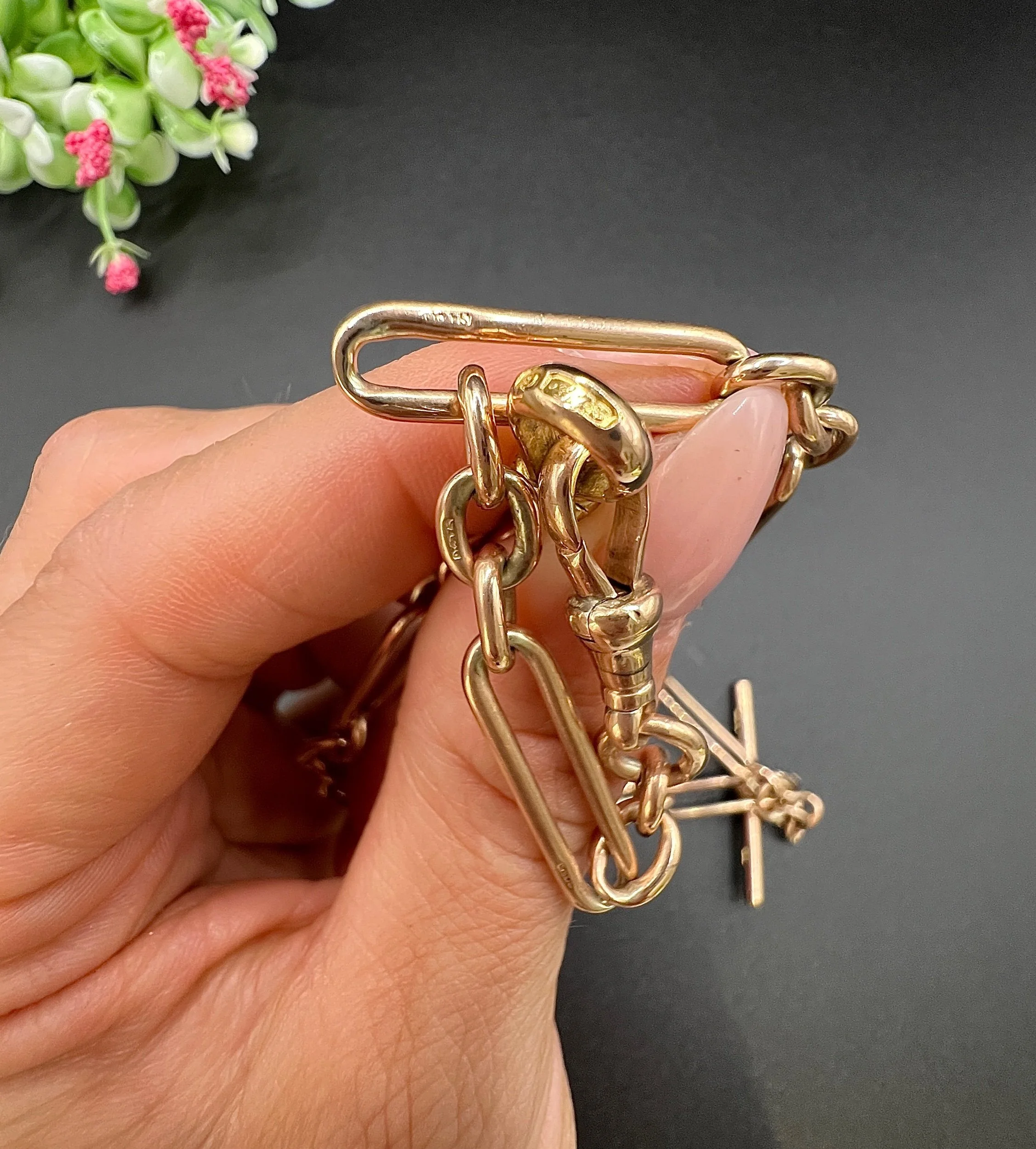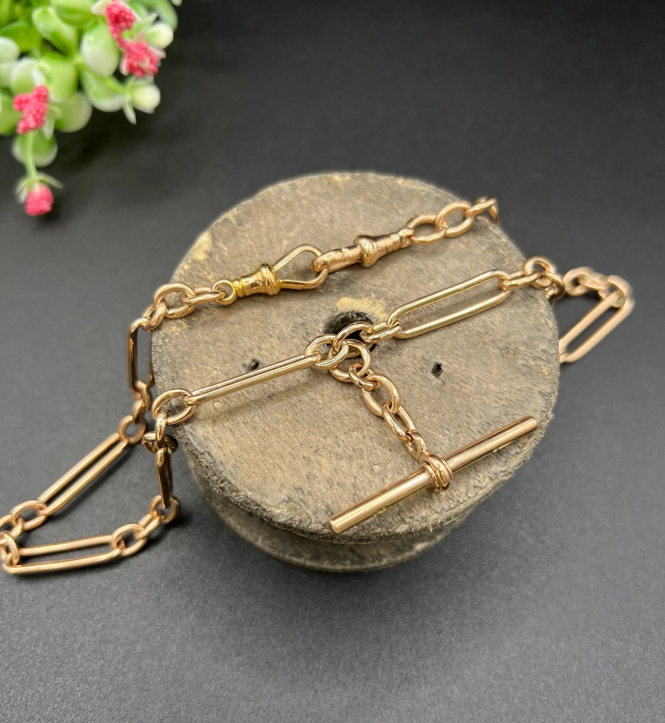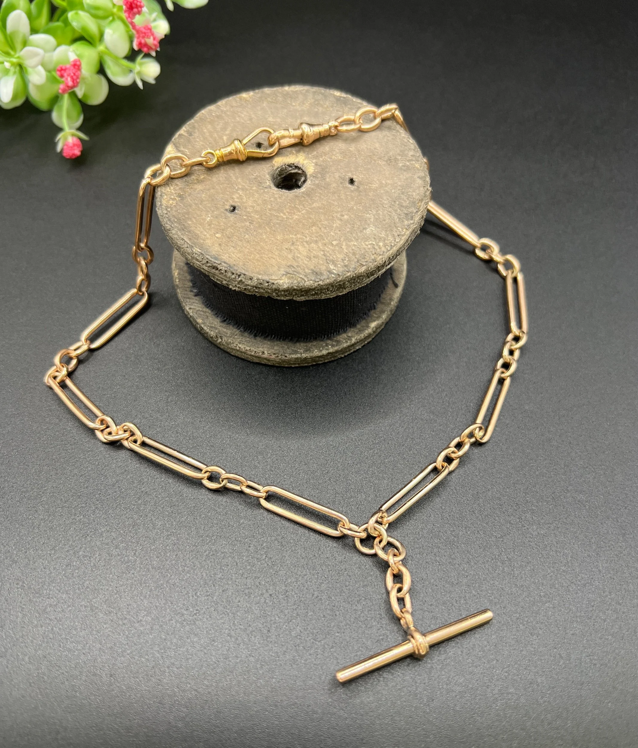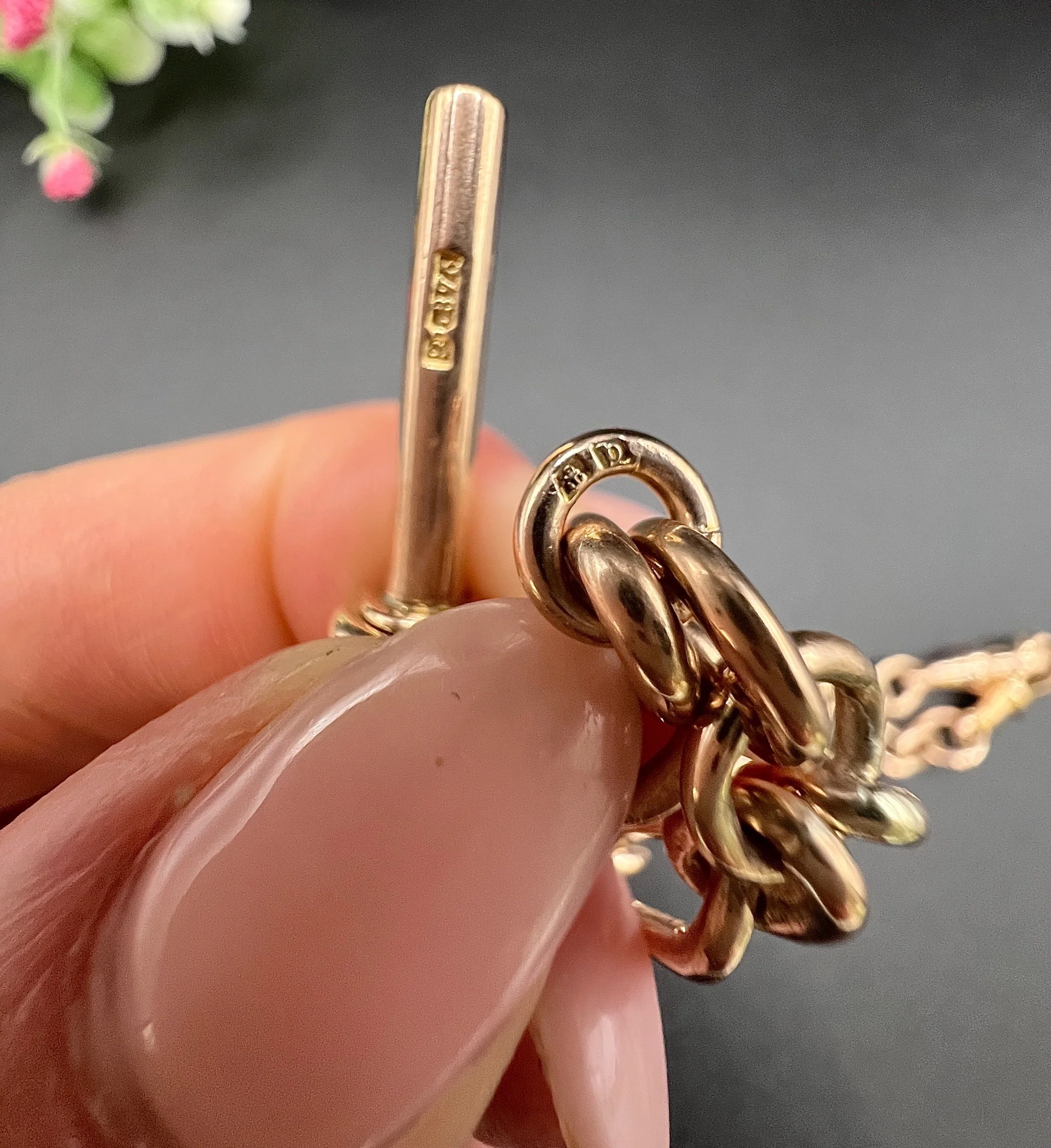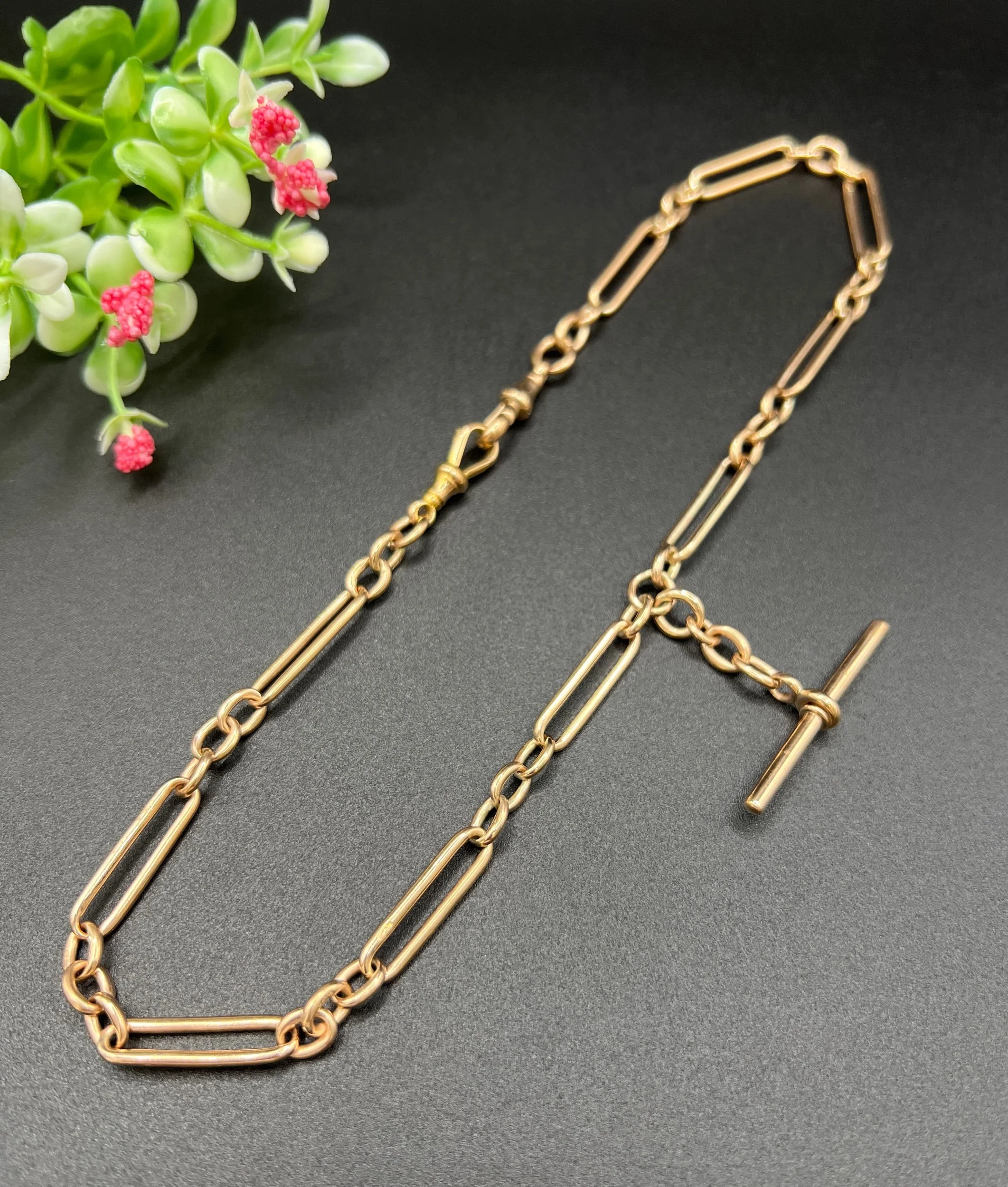 Antique 9ct Rose Gold, Edwardian era 17 1/2 Inch Trombone/Fetter Link, Albert Watch Chain, Hallmarked Birmingham 1901