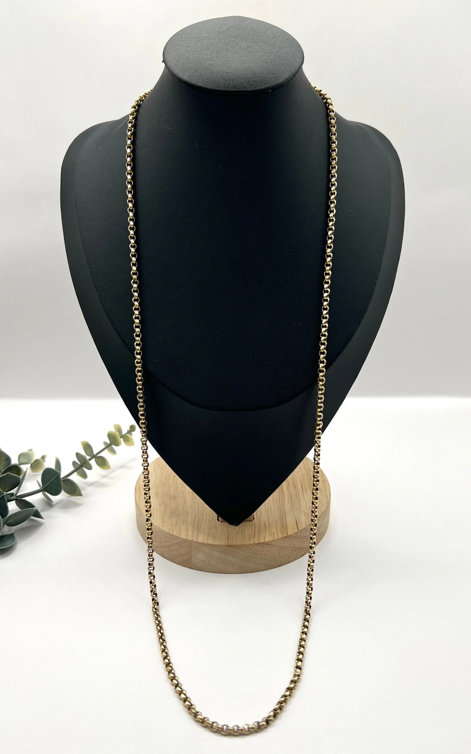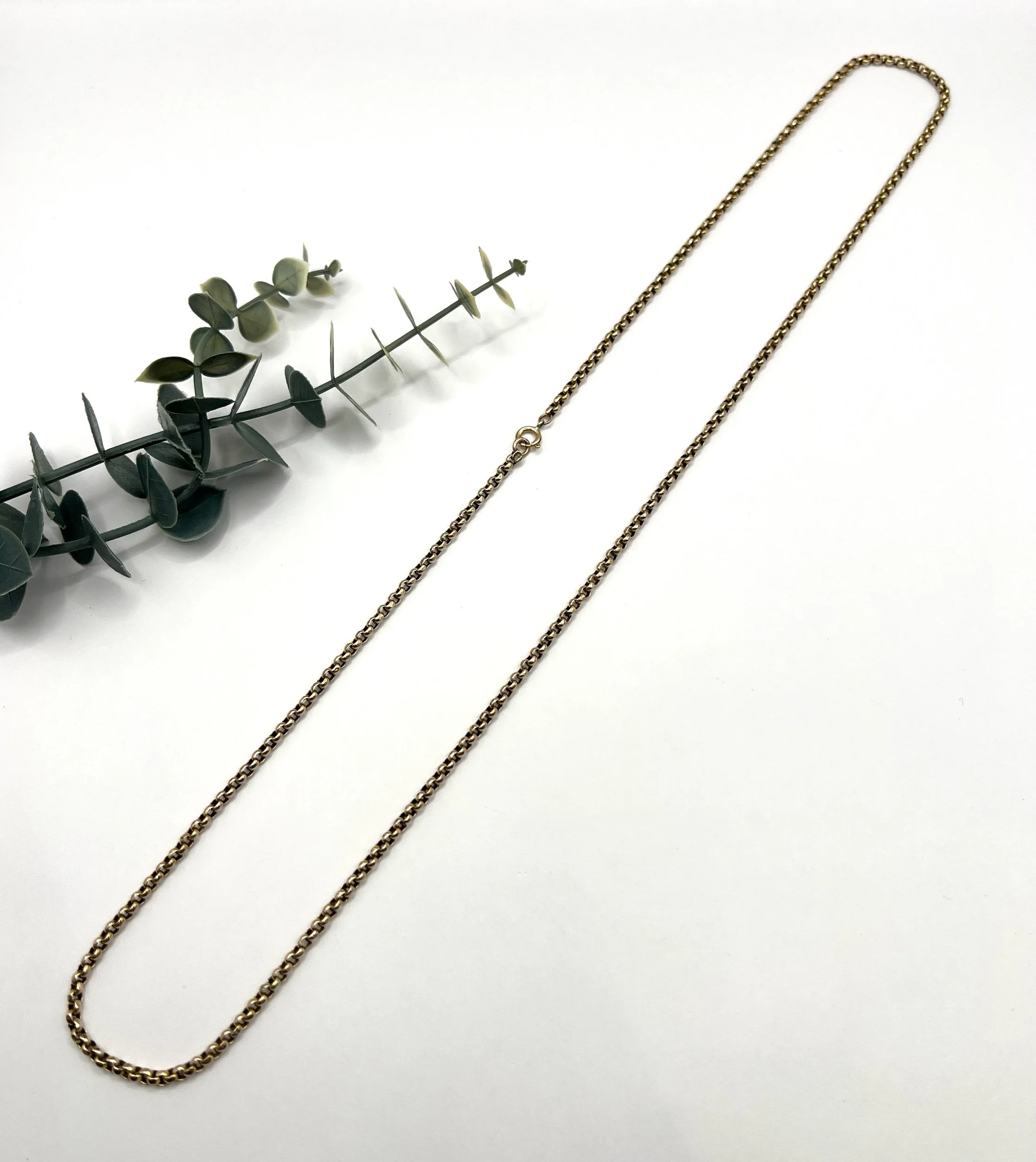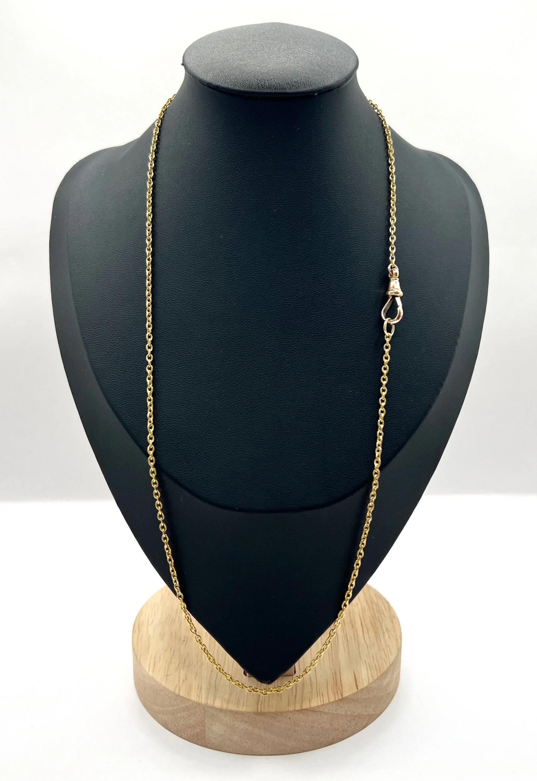 Measuring approximately 22 1/4 inches in length, this chain is both substantial and delicate, making it perfect for layering or wearing on its own as a statement piece. Weighing in at 29.2 grams, it carries a luxurious feel while remaining comfortable to wear.