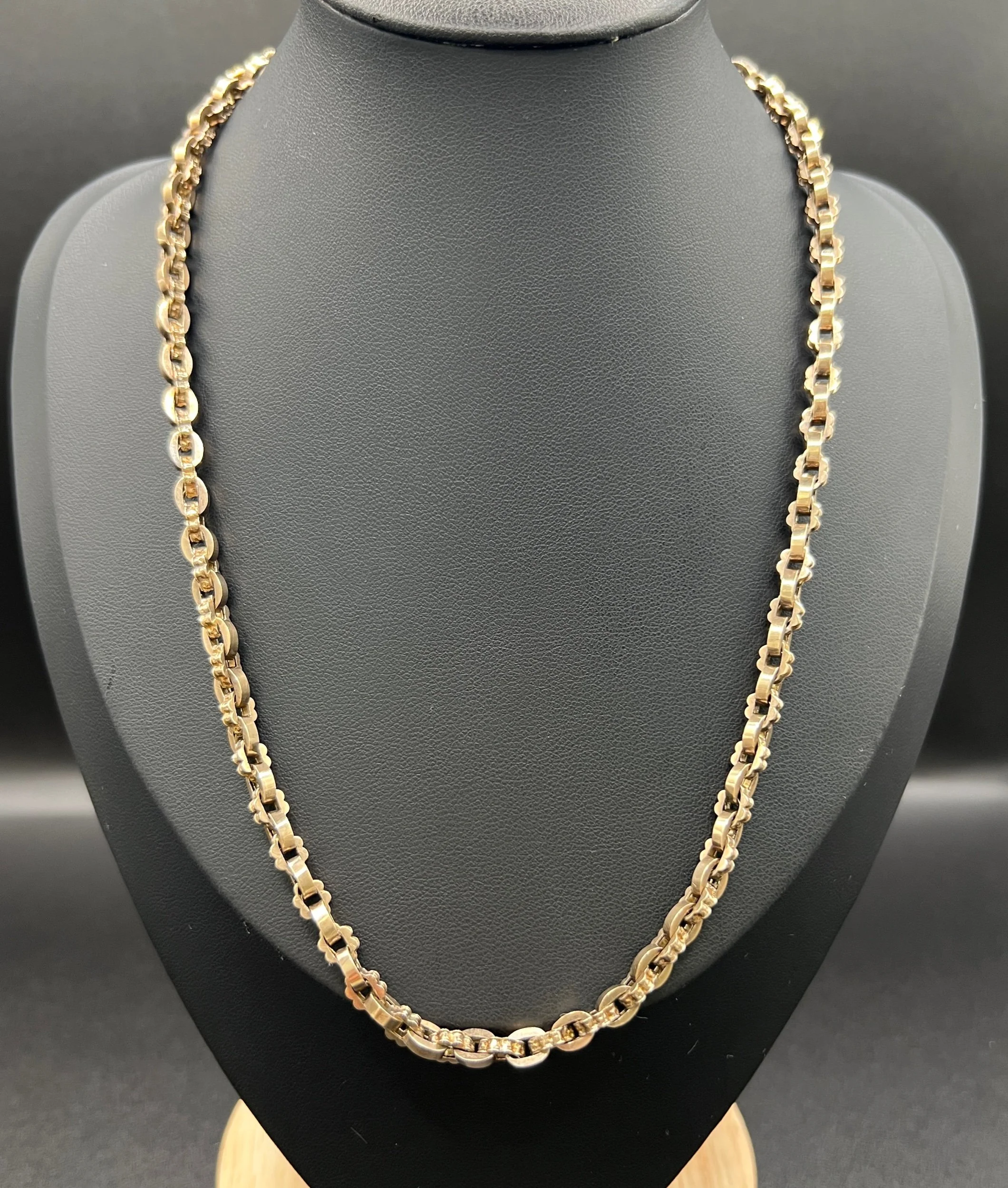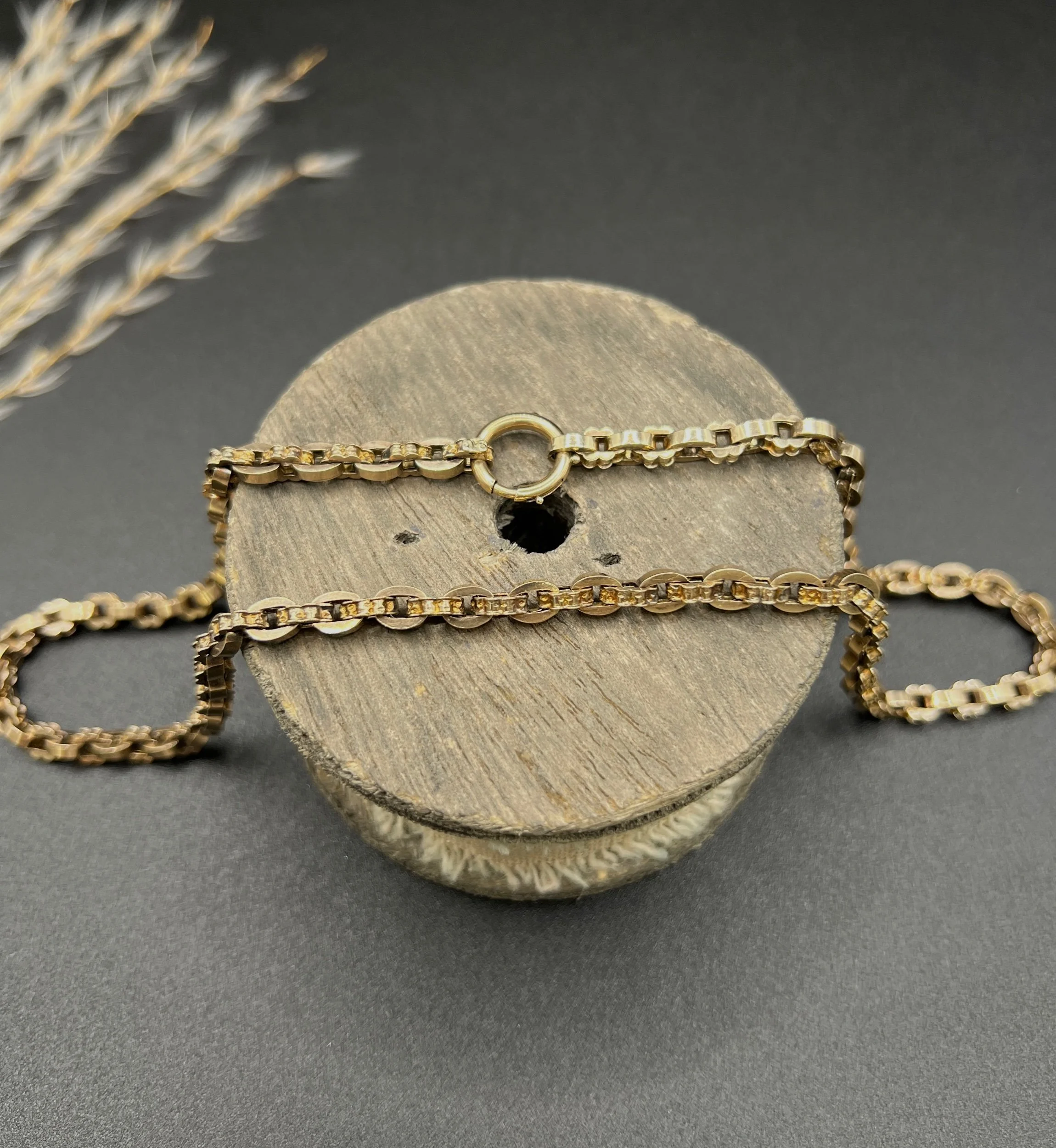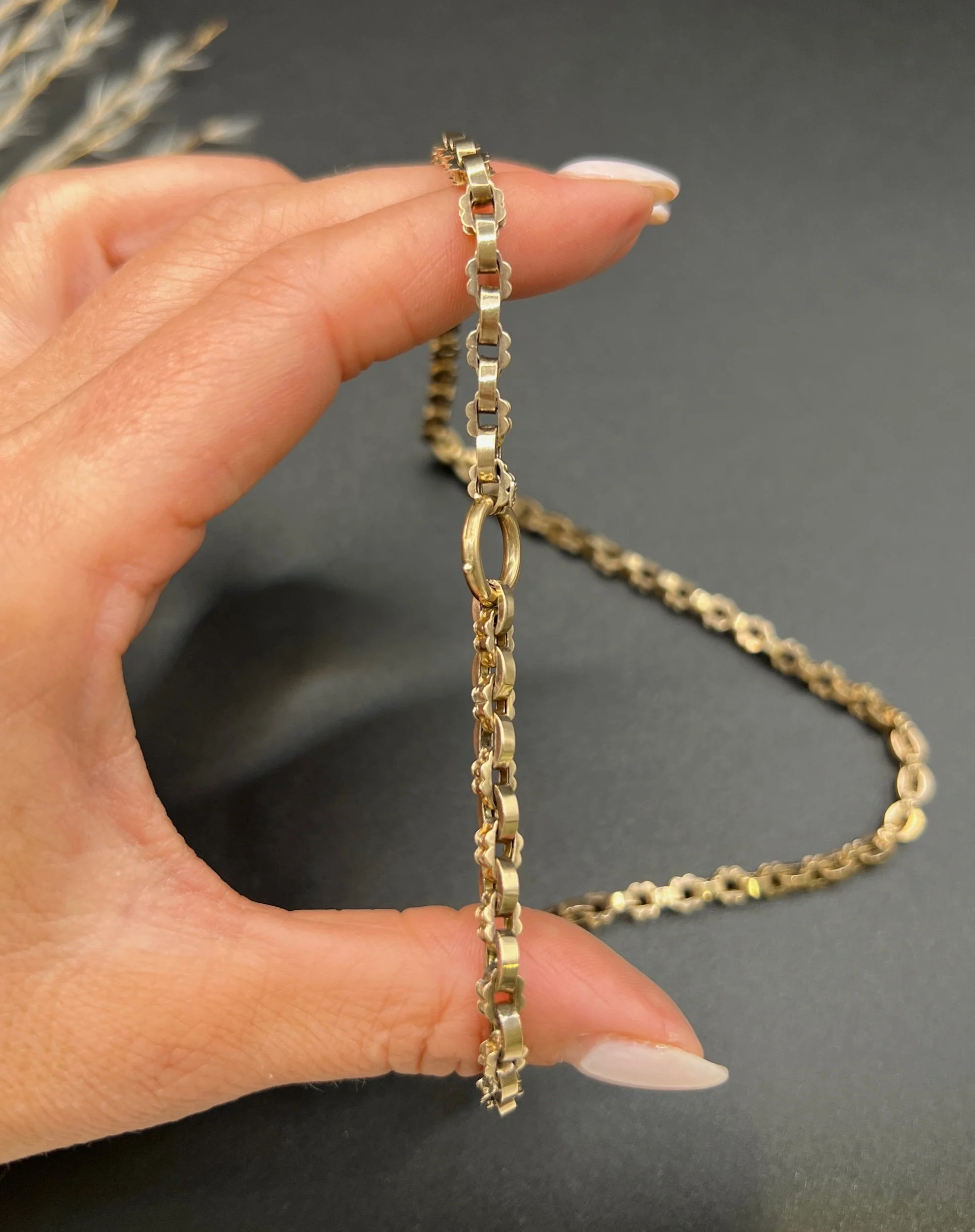 Step into elegance with this exquisite Victorian fancy link necklace, crafted from 9ct rose gold. The necklace showcases a beautiful alternating pattern of rolo and fancy links that creates a mesmerising play of light and texture. Measuring elegantly to suit any occasion, this necklace combines both timeless beauty and contemporary flair, making it a standout addition to any jewellery collection.