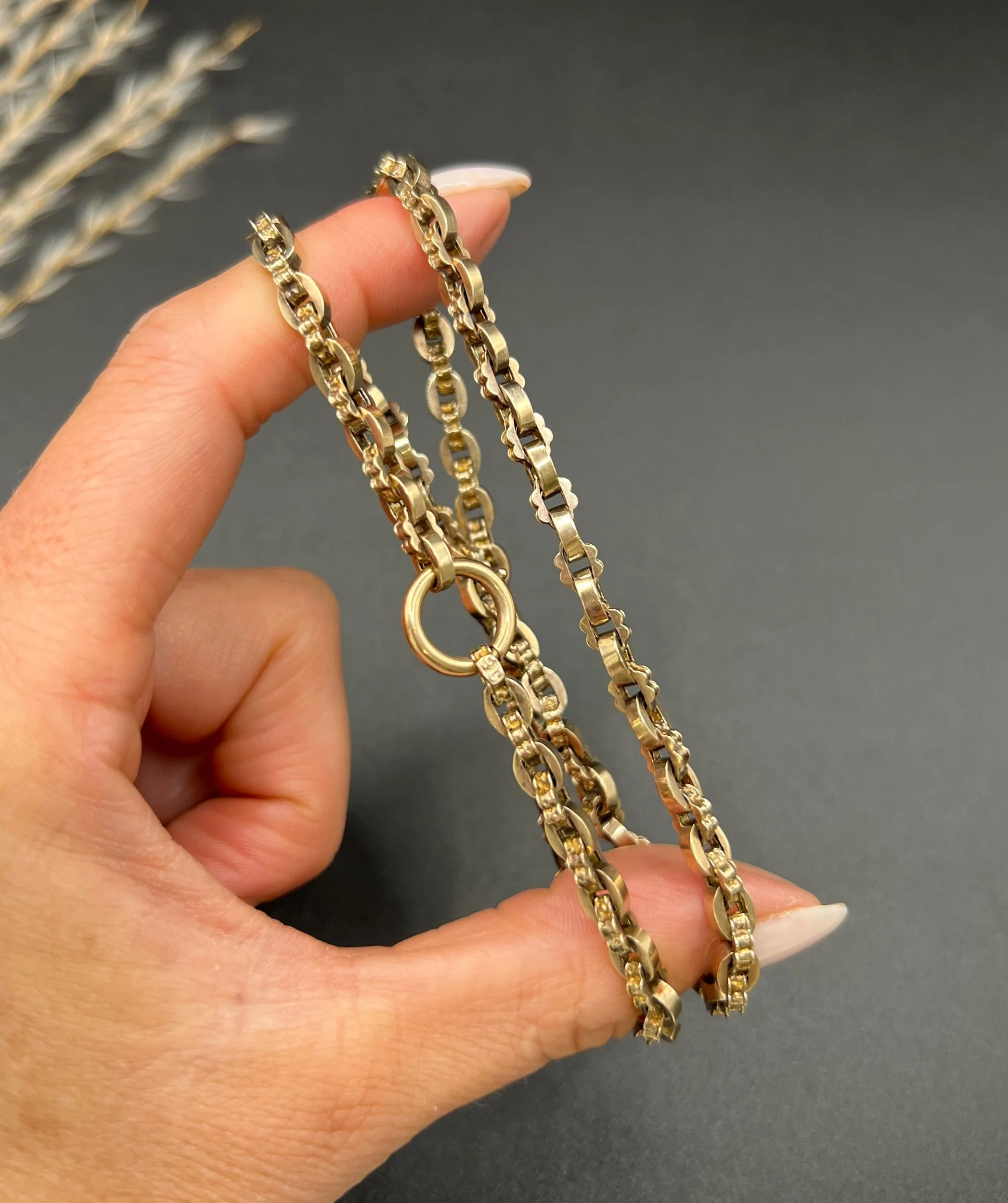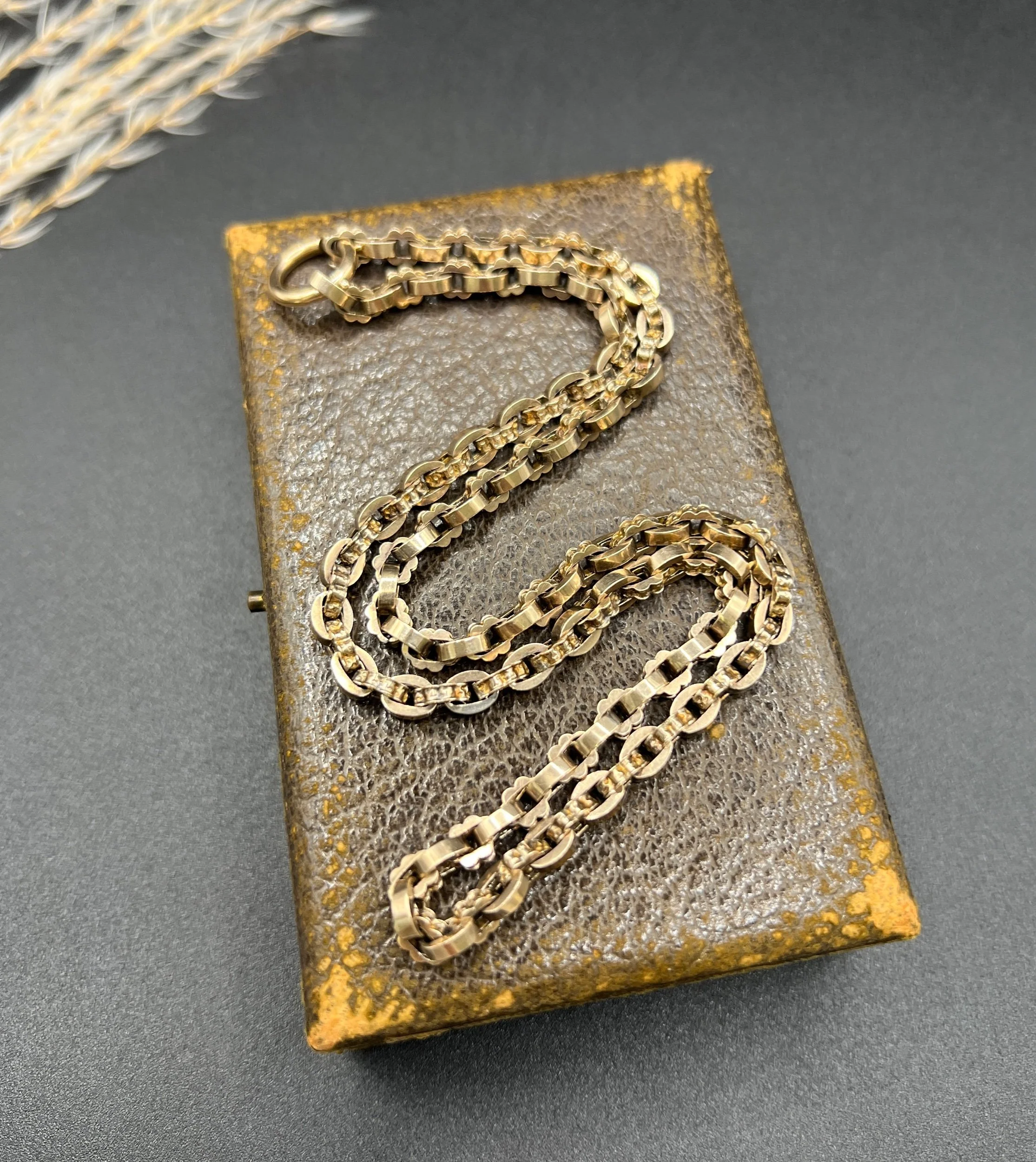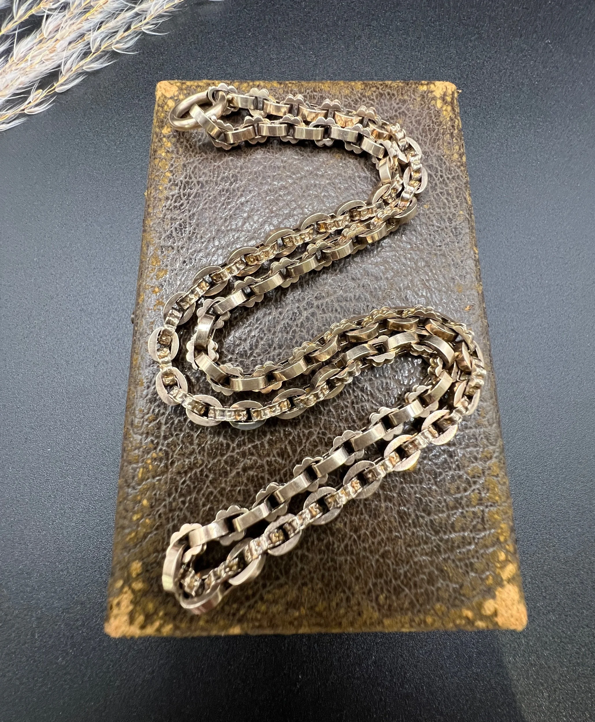 Victorian 9ct Rose Gold Fancy Rolo Link Chain Necklace - 17 3/4 Inch